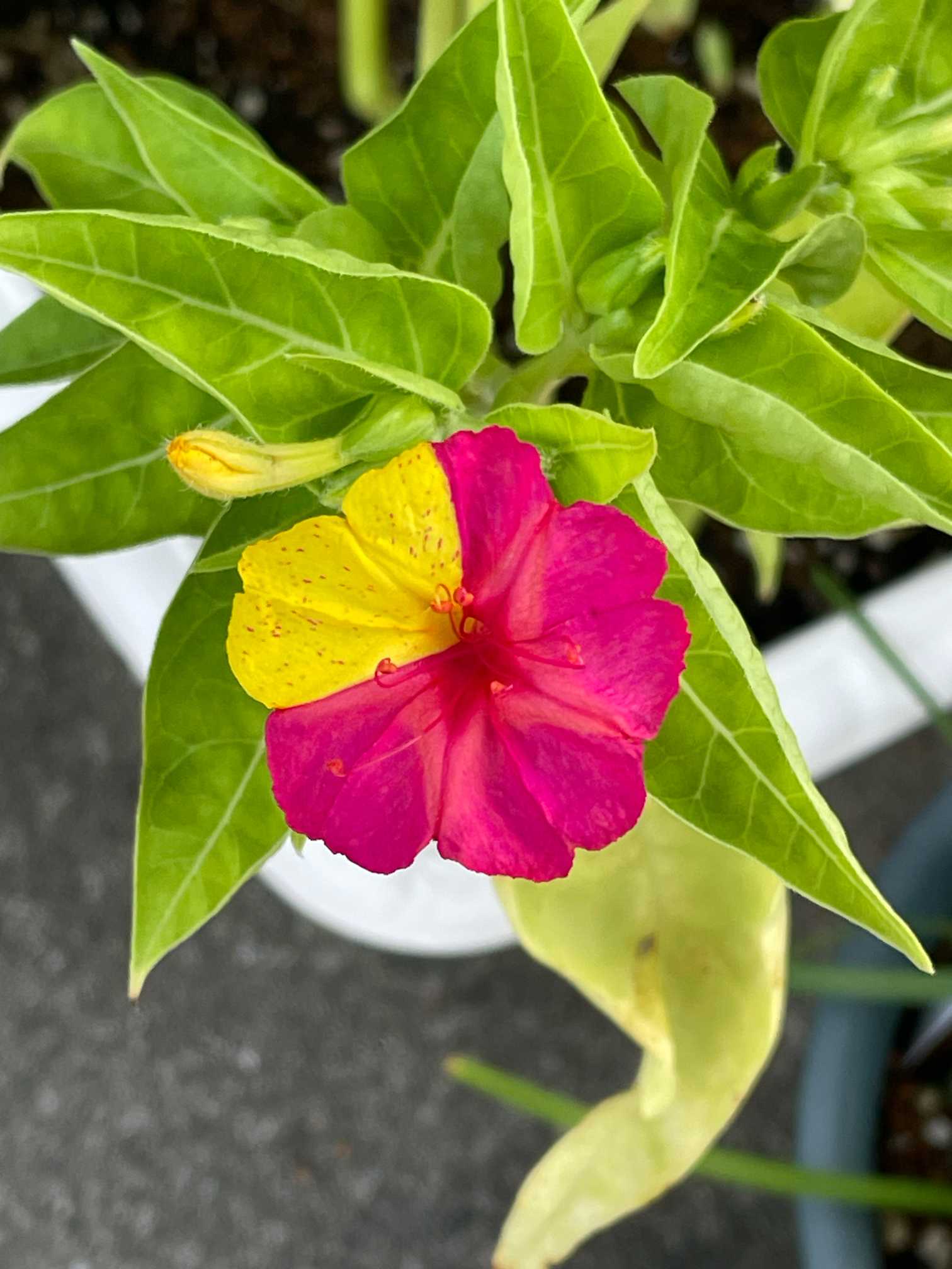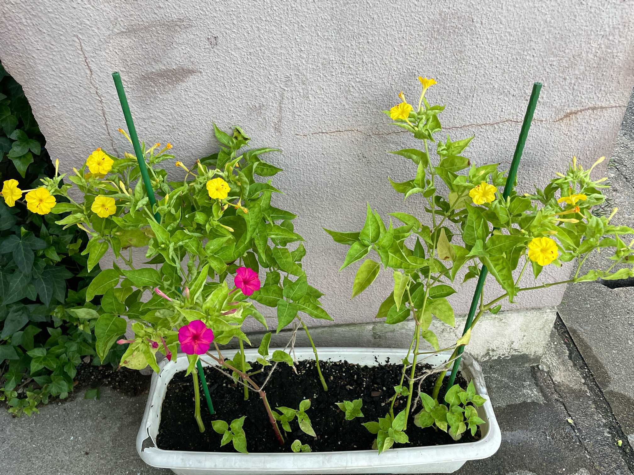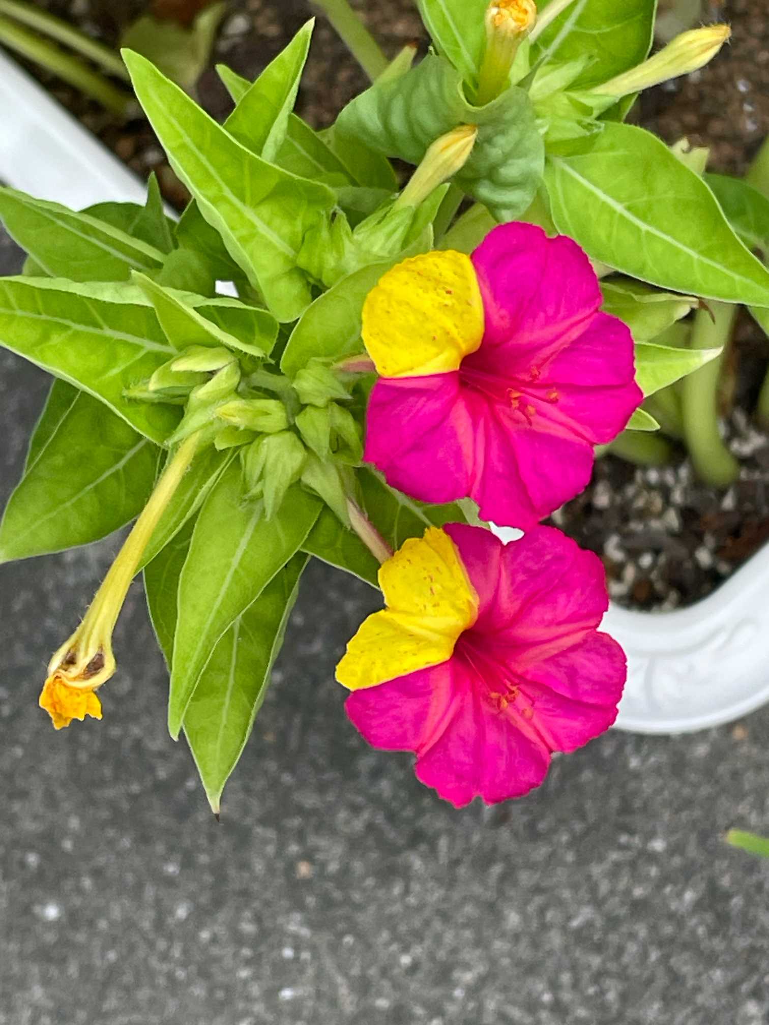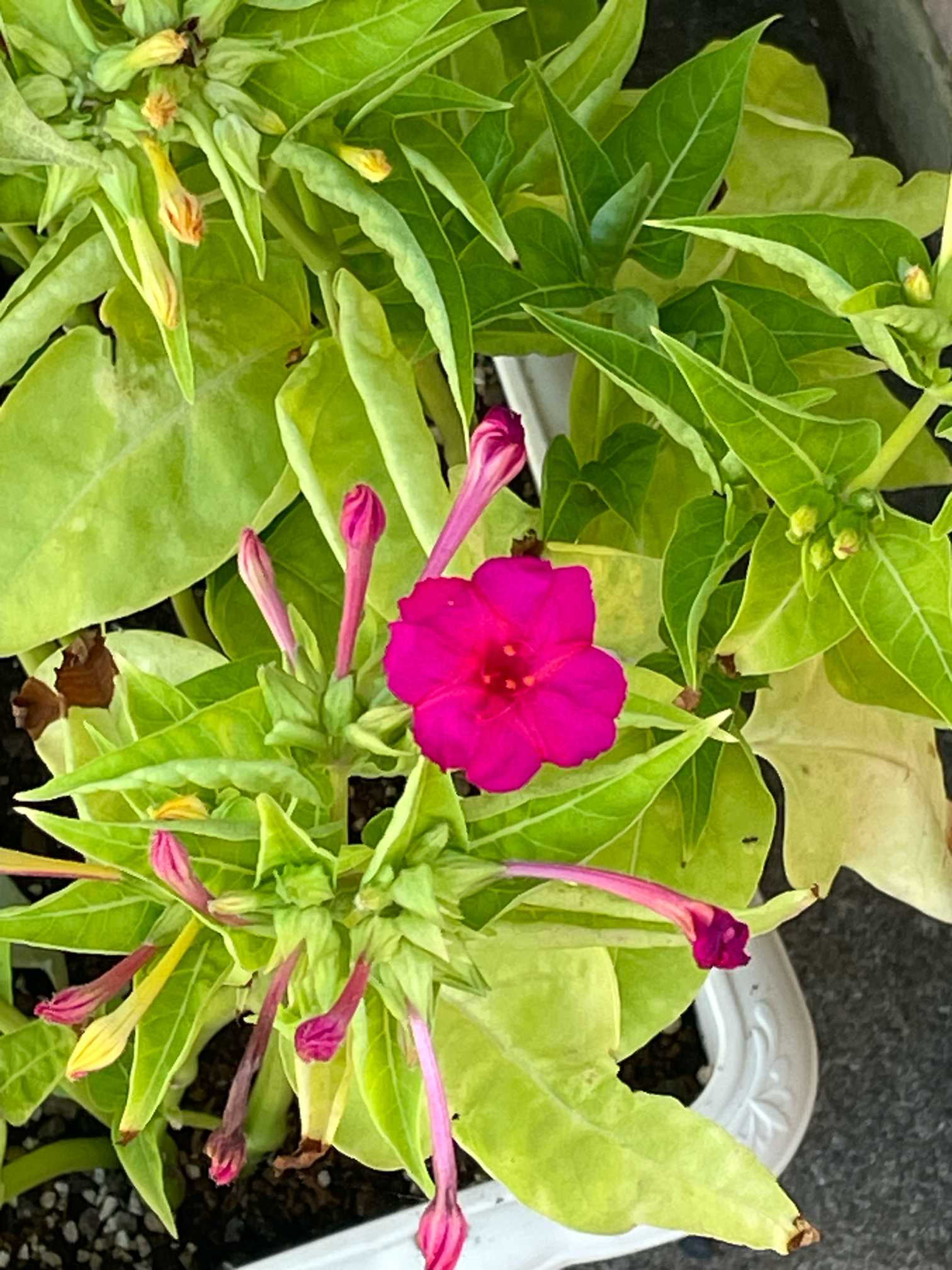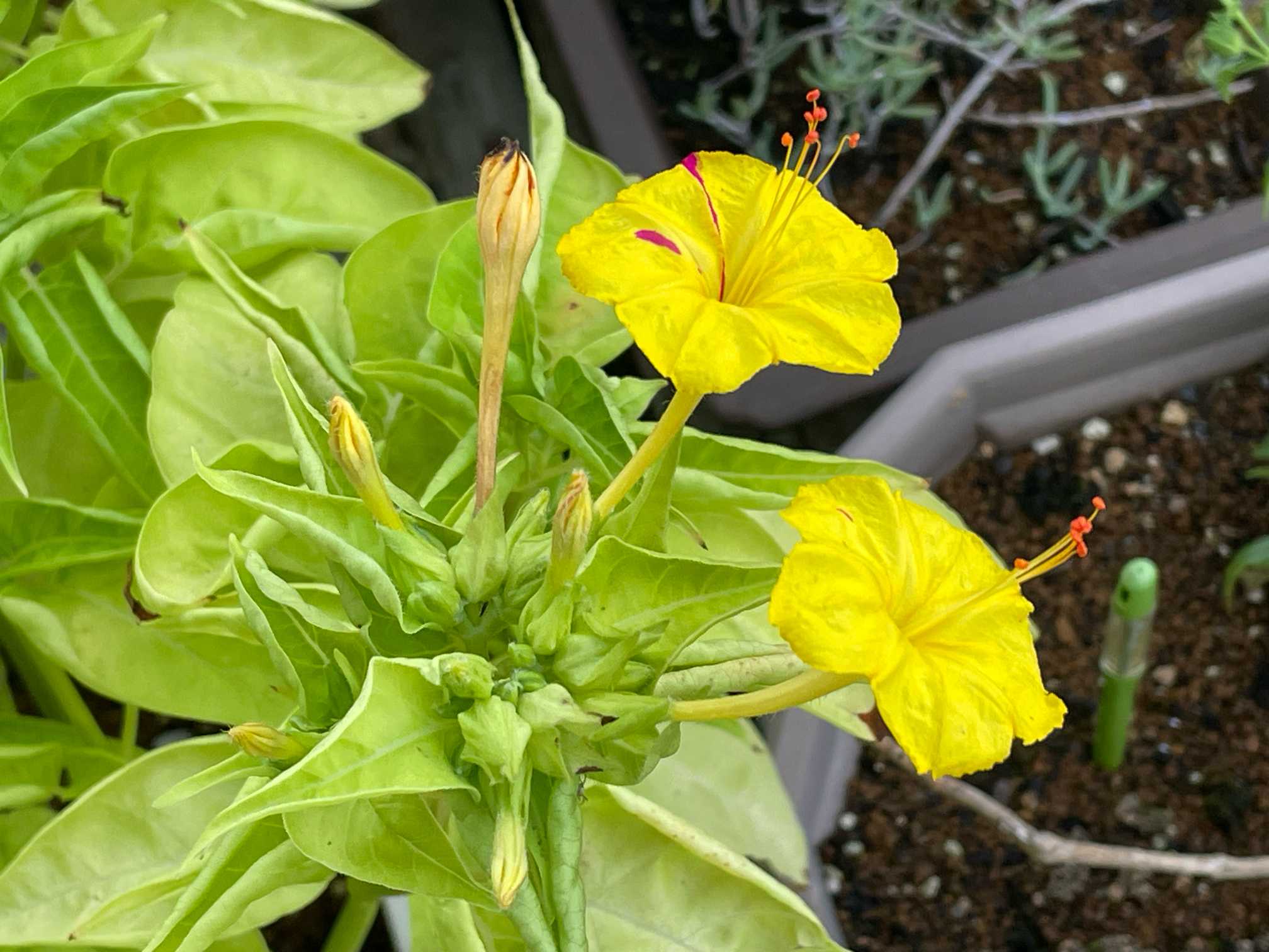見慣れた感じのピンク(オシロイバナちゃんといえば ピンクの印象)も、このプランターでは珍しいからね。
