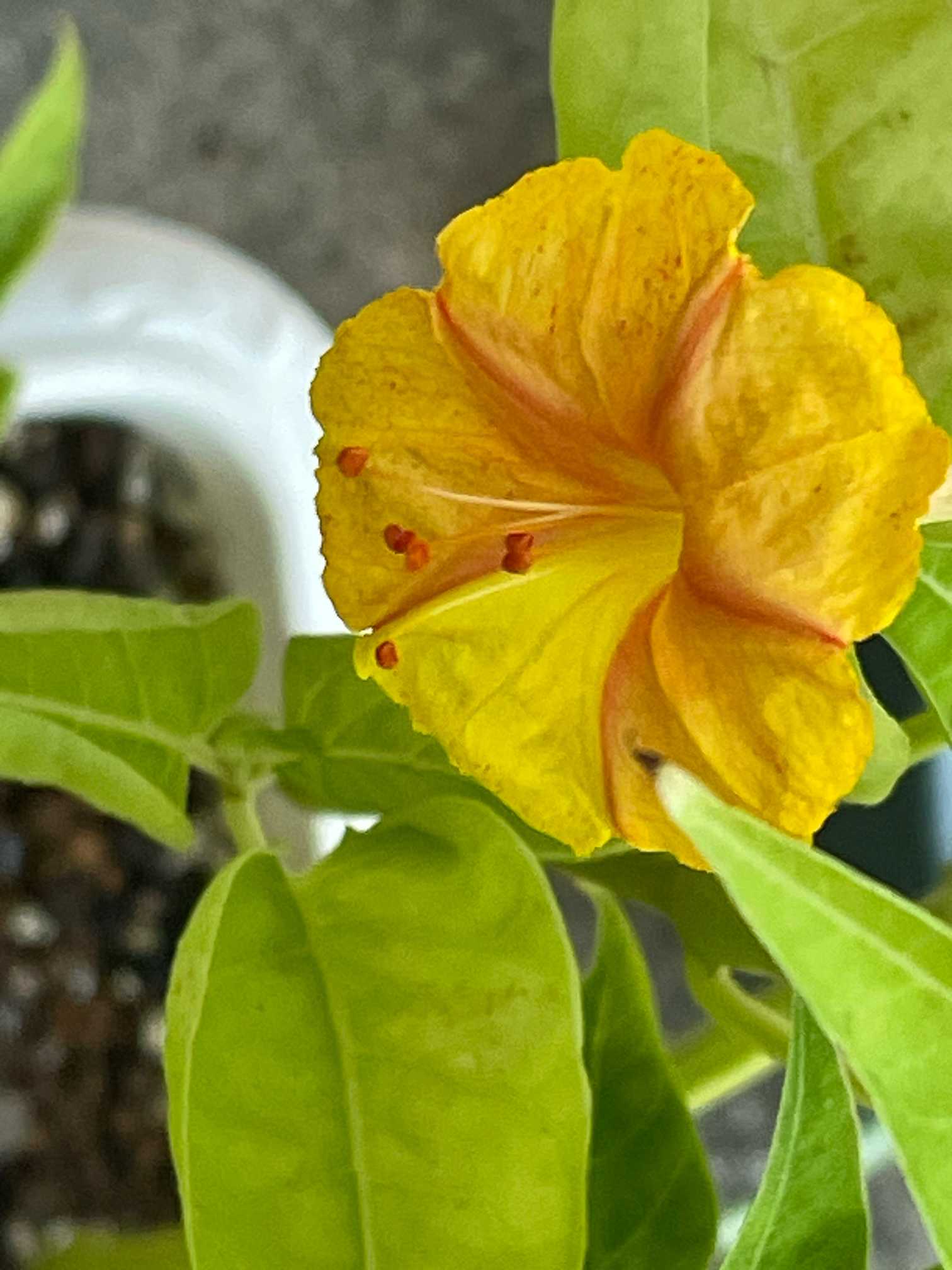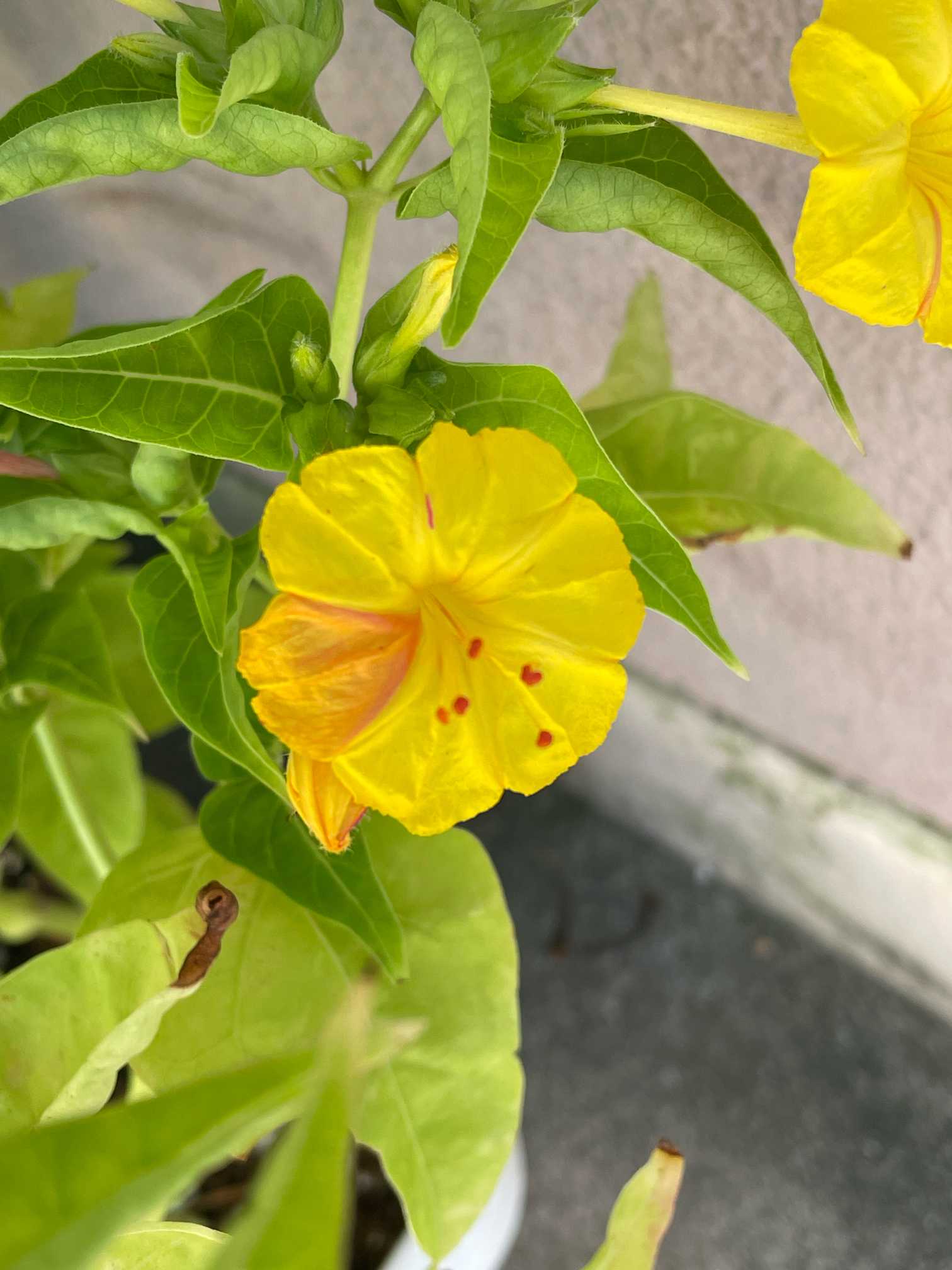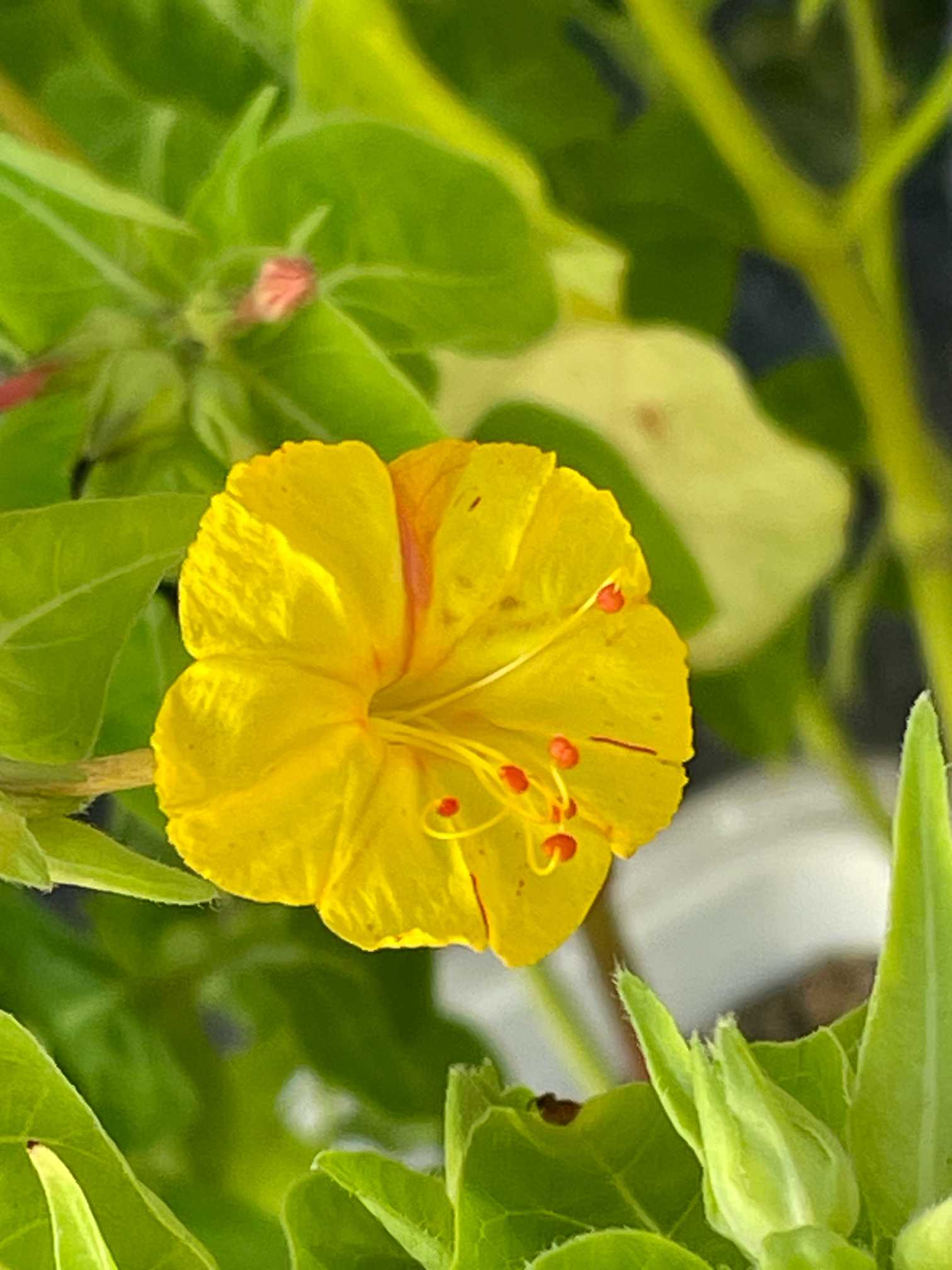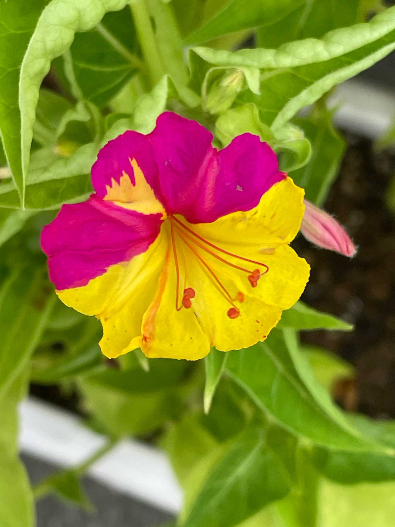 見慣れた感じのピンク(オシロイバナちゃんといえば ピンクの印象)も、このプランターでは珍しいからね。