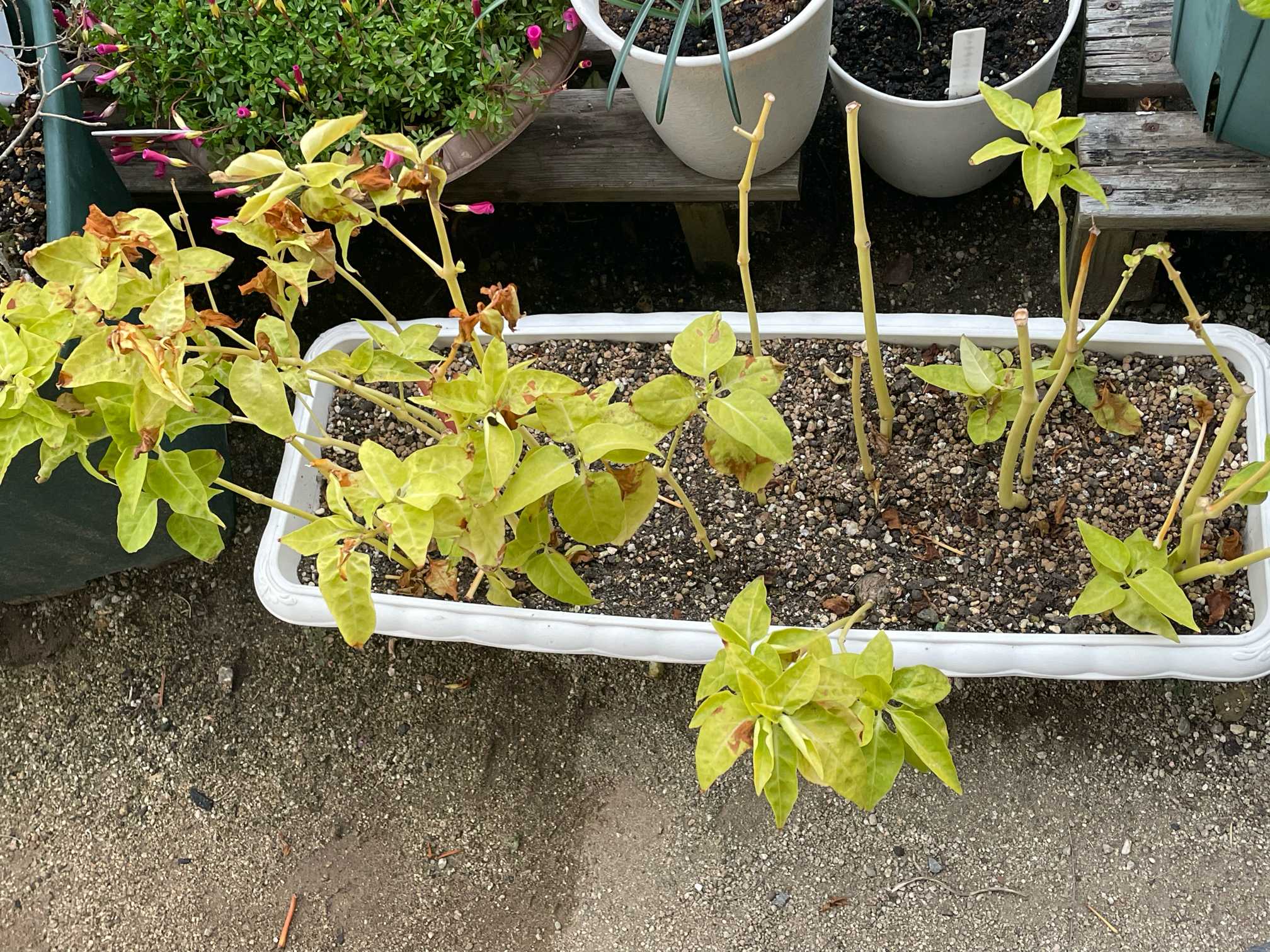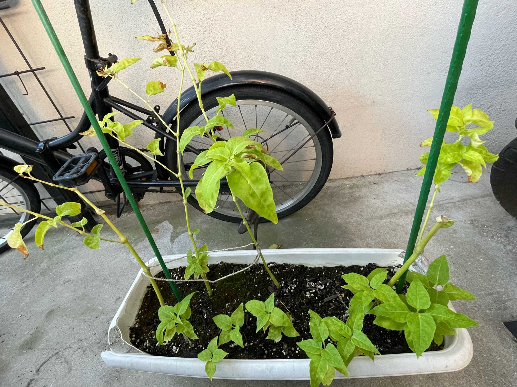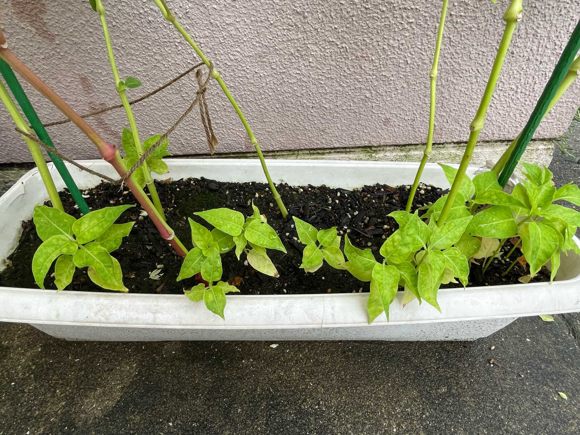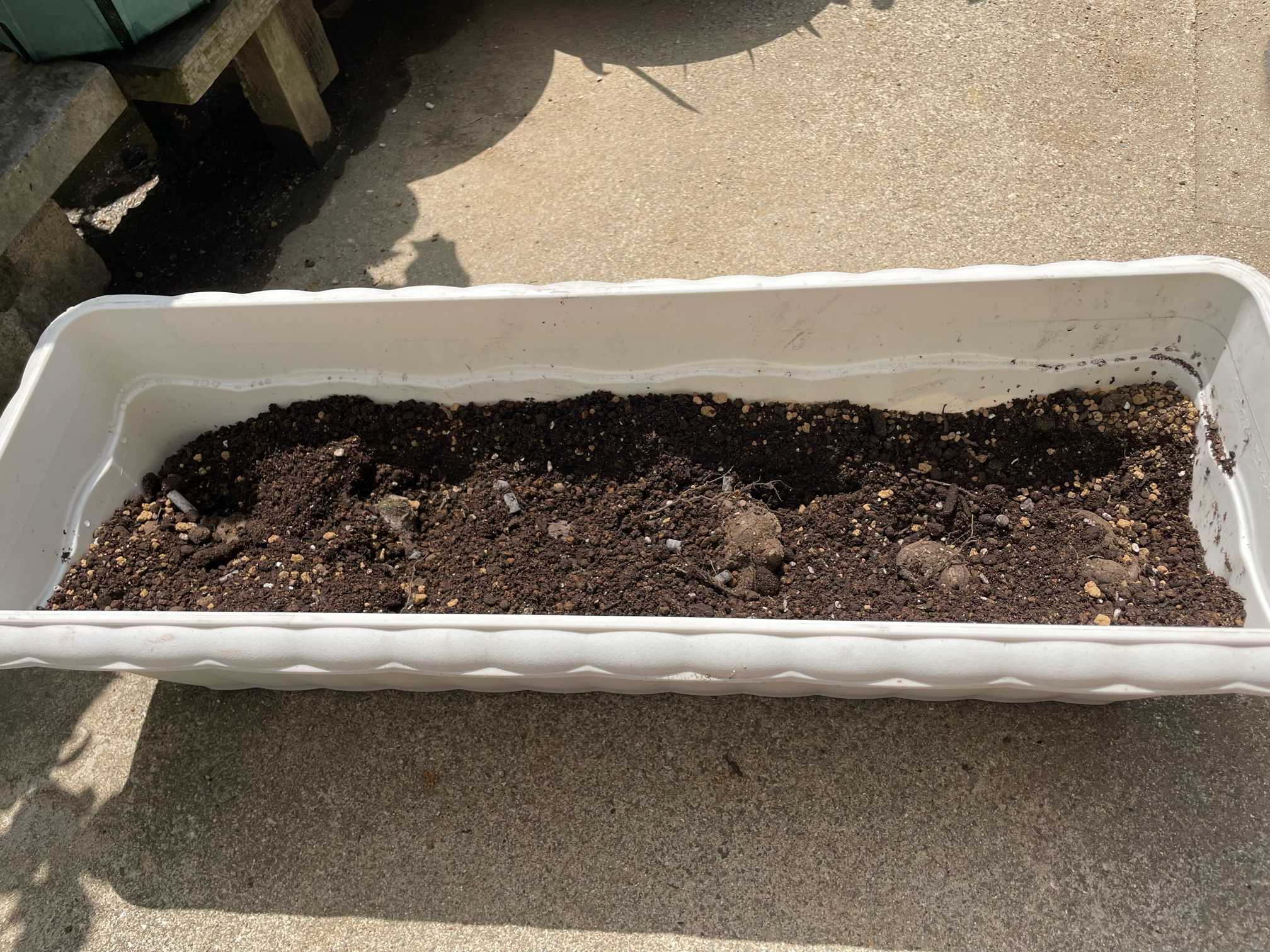 このプランター、端がひび割れてて テープで補修しながら使ってます😅