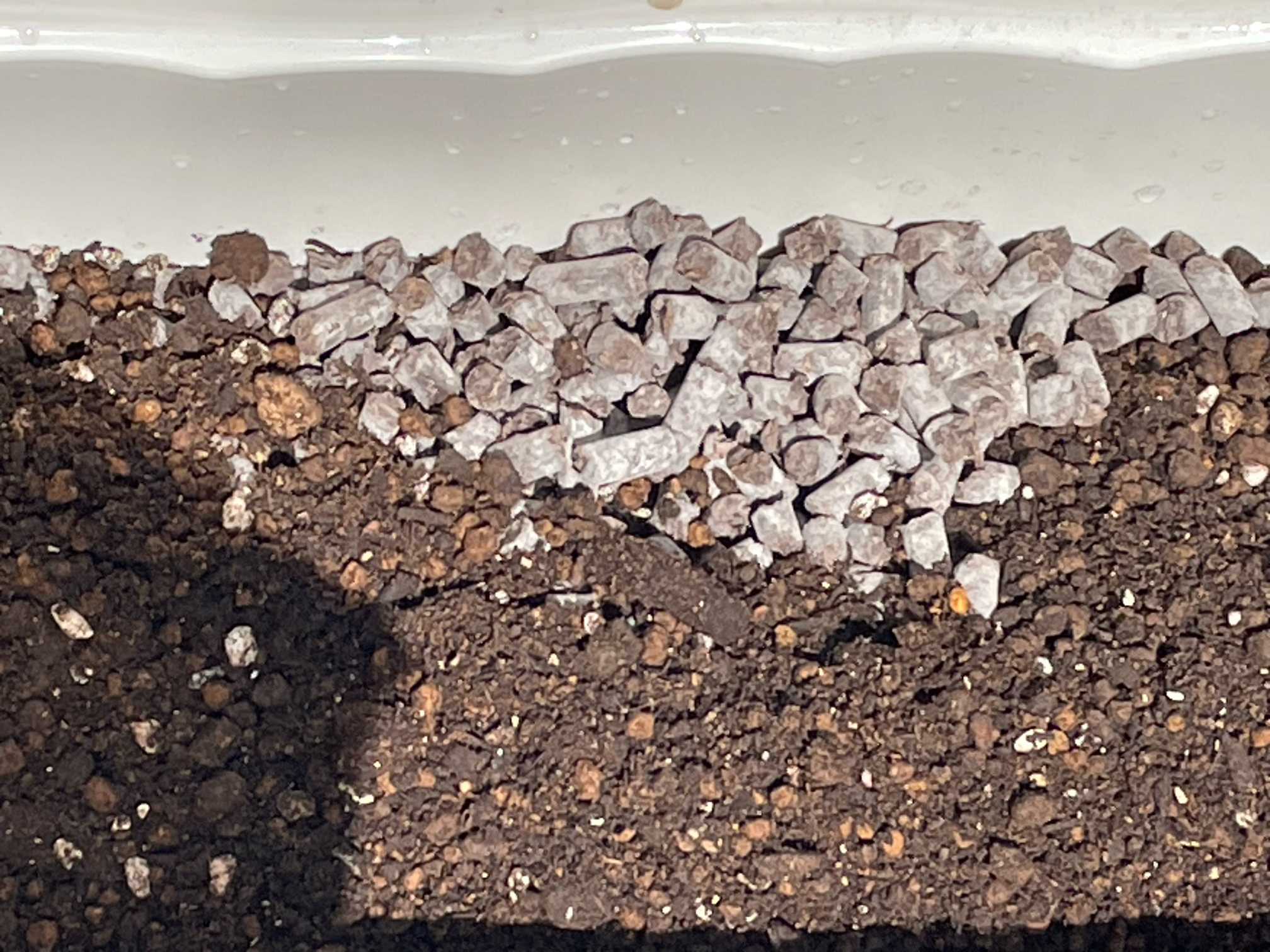 今回は種まきの土を使いました。水が吸い込みにくいので何回も水をかけてから種を蒔きました。