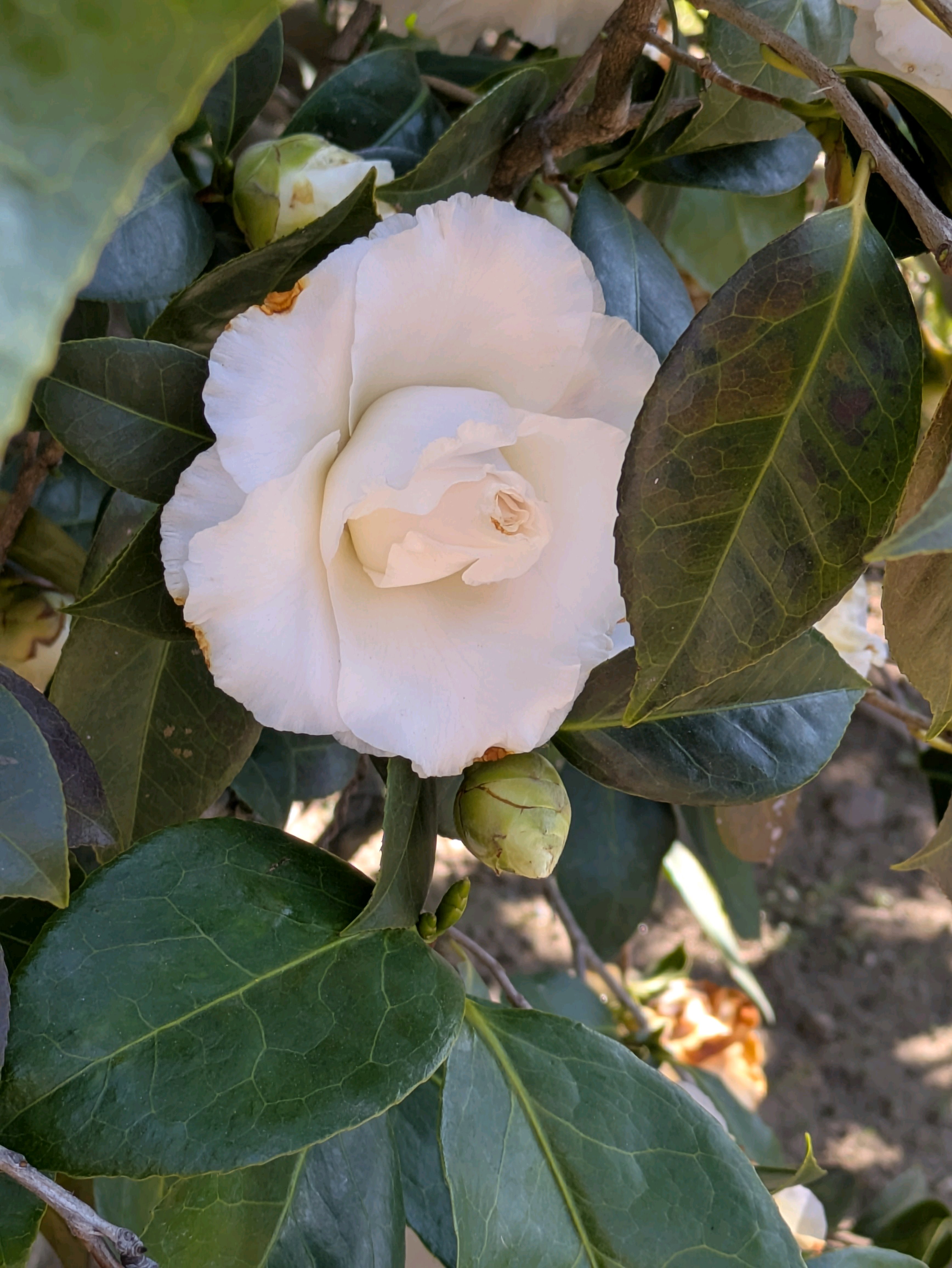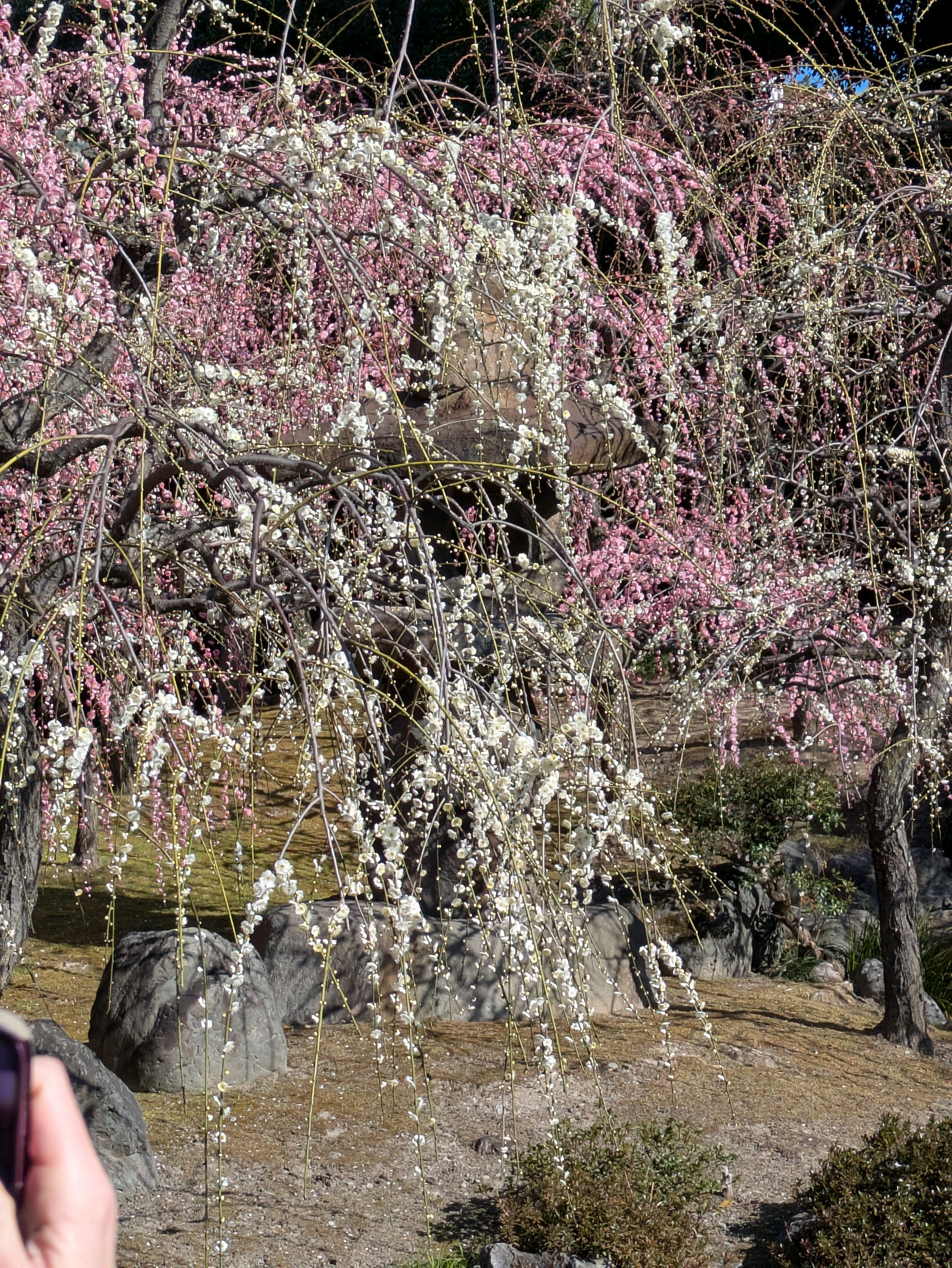 京都の方除、厄除の大社の城南宮では枝垂れ梅と椿の多品種が咲いています