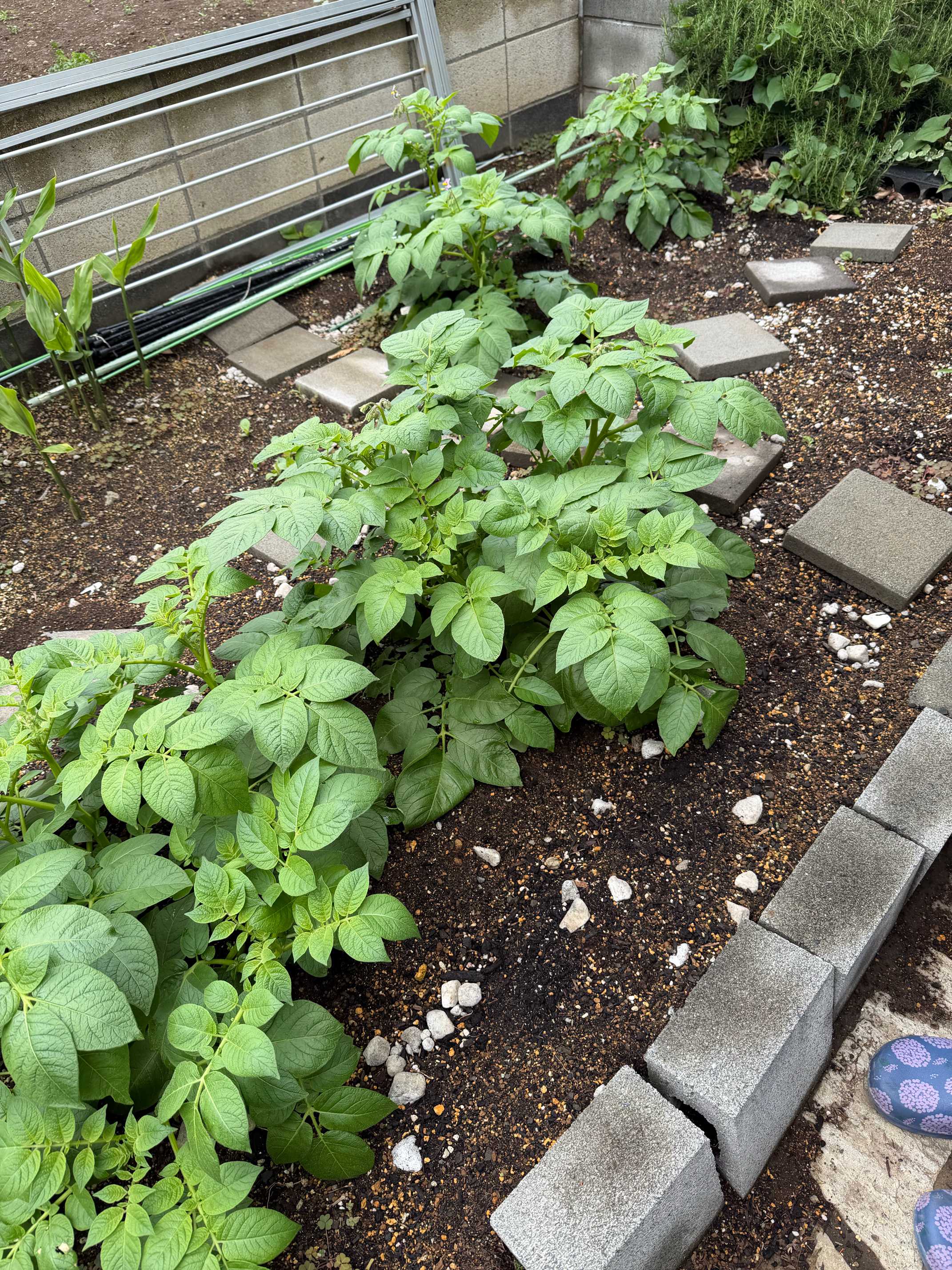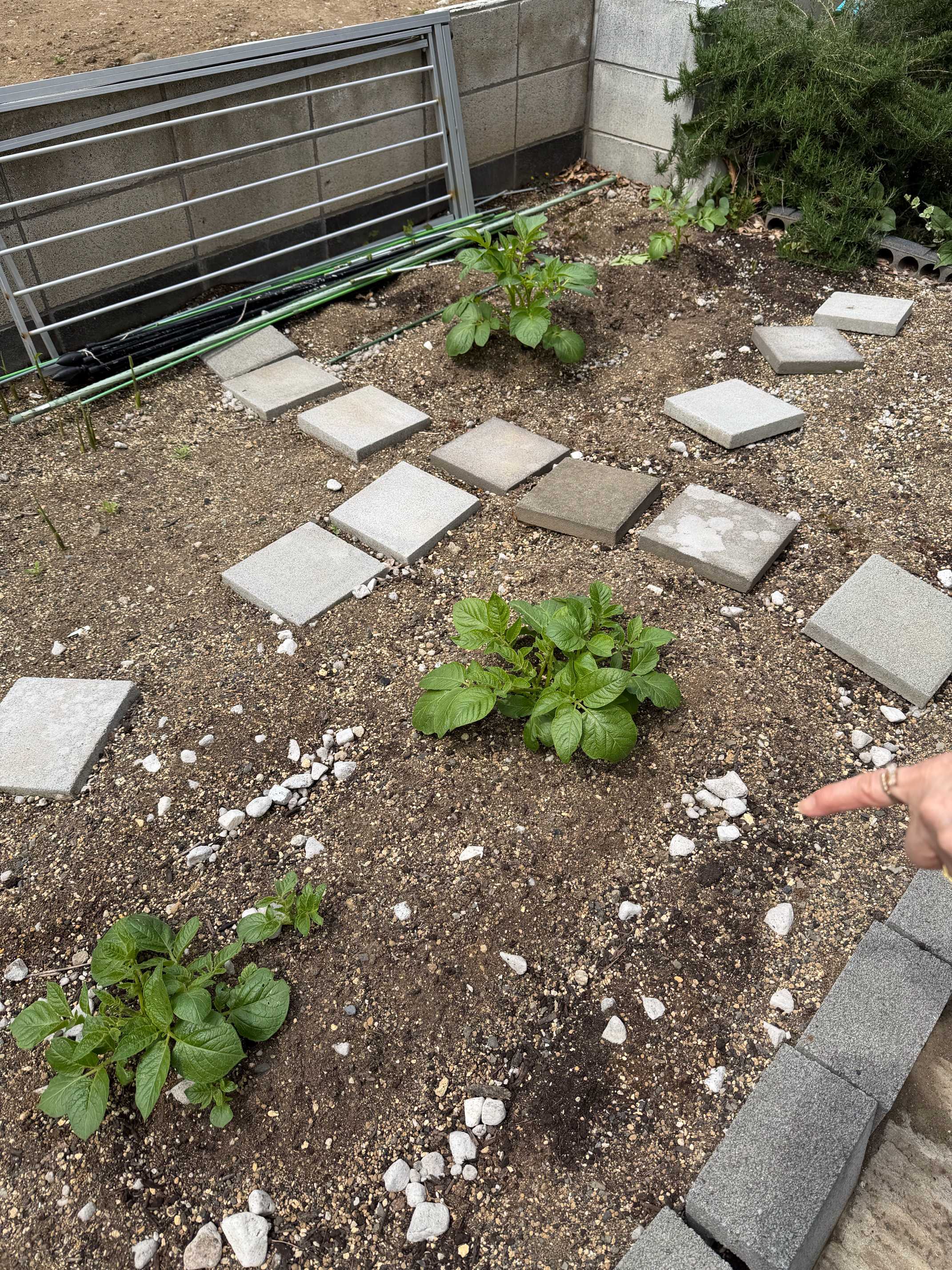 2月半ばに買ってきて、植えるのを忘れて3月に入ってからようやく植えたイモたち。芽が出ている状態で畑へin。同居人が鉢底石を気にせず畑に土を流していくため石ころがゴロゴロ状態で、イモにとってはすでにハードモード。