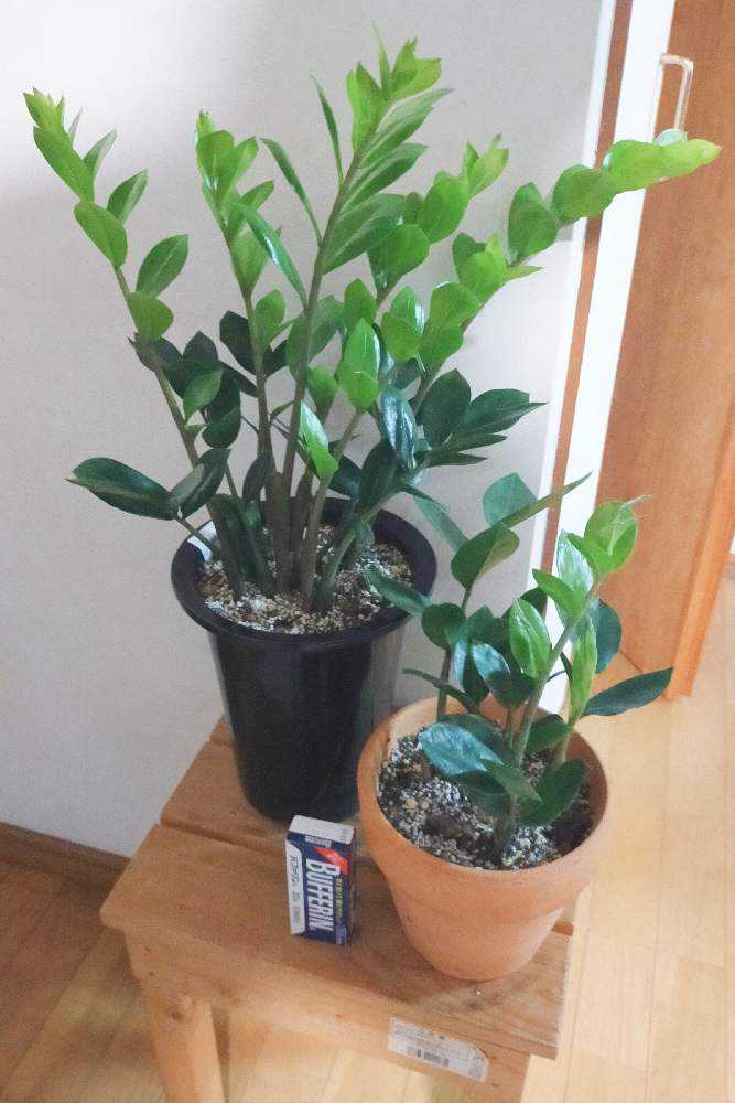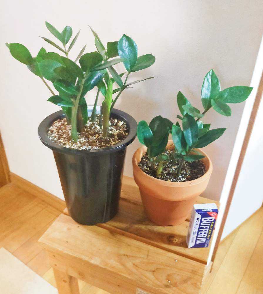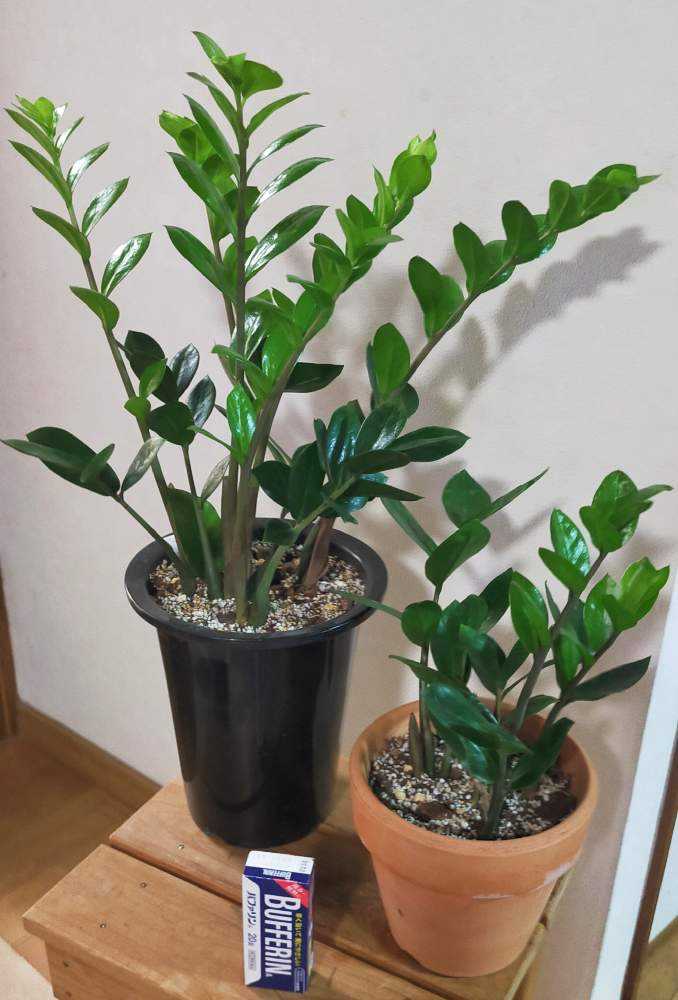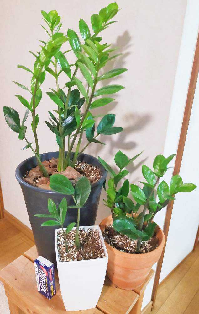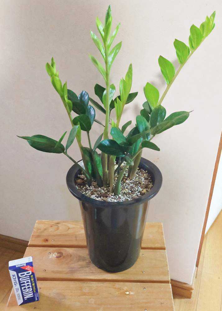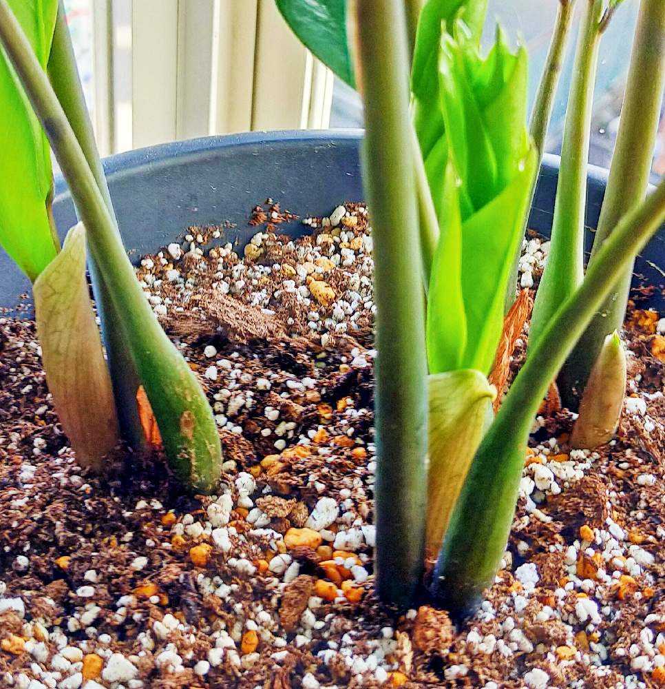 停滞気味だったザミオクルカスの親株から、一気に5つ新芽が出てきました。