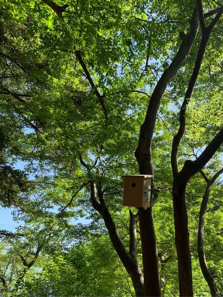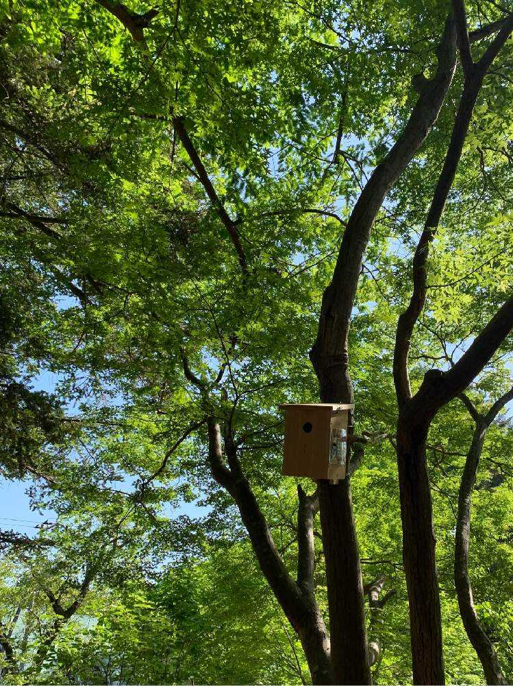 楓の散歩道の中に 観察用の巣箱がかけてありました^ - ^