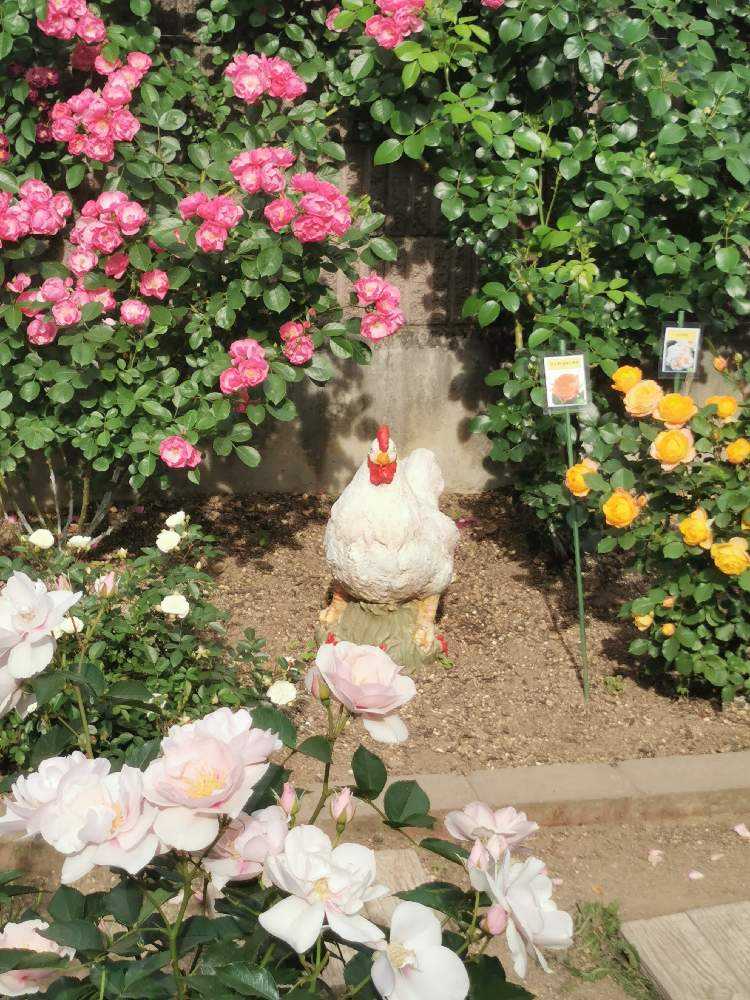 薔薇の小道に鶏