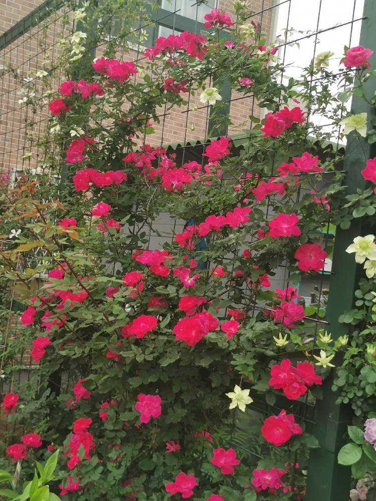 高いフェンスにも真っ赤な薔薇が咲き誇っています。