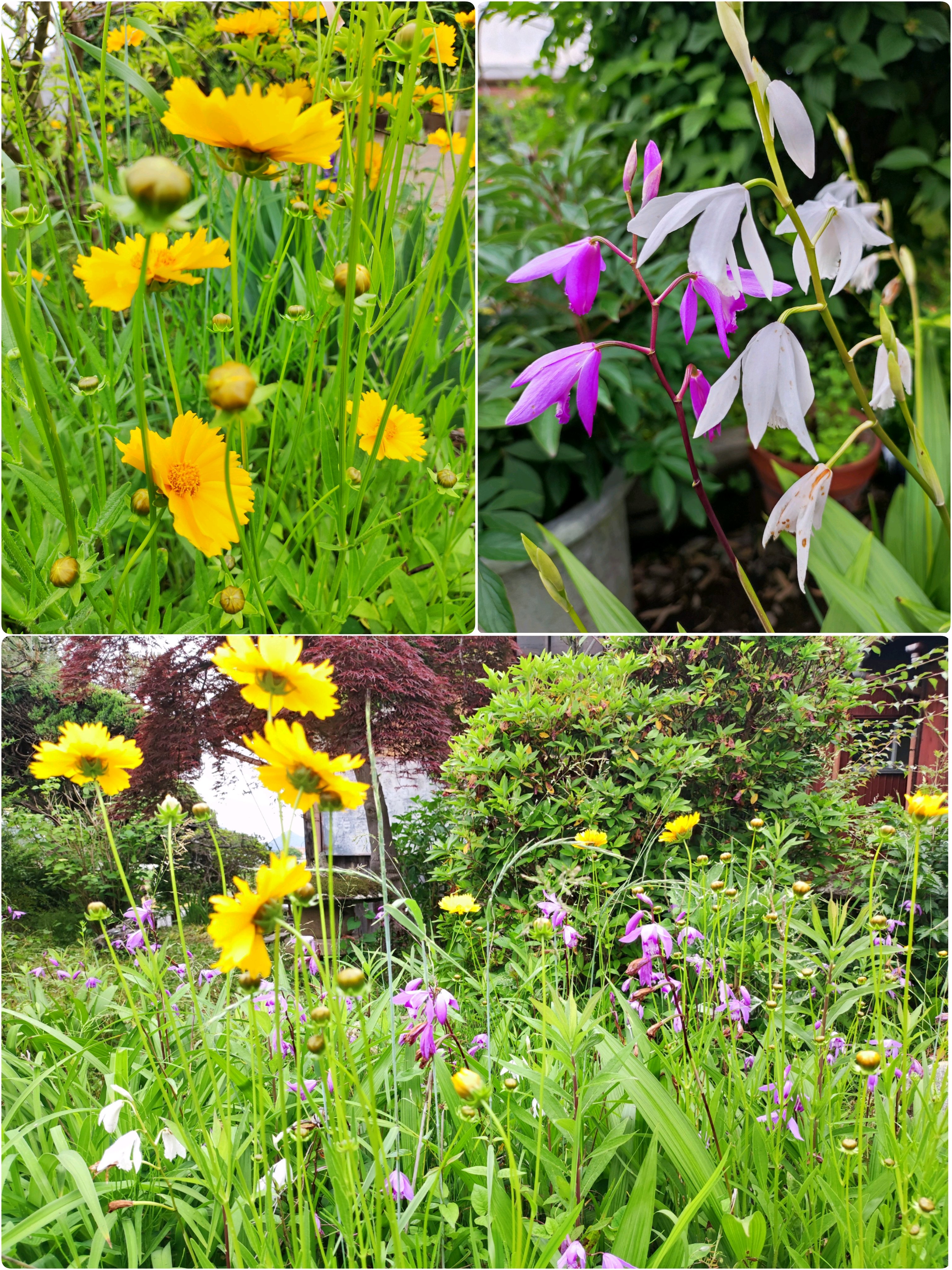 紫蘭と黄色い花、初夏のはじまりです