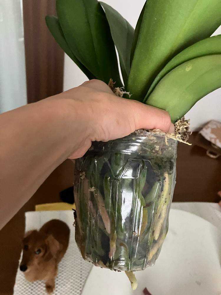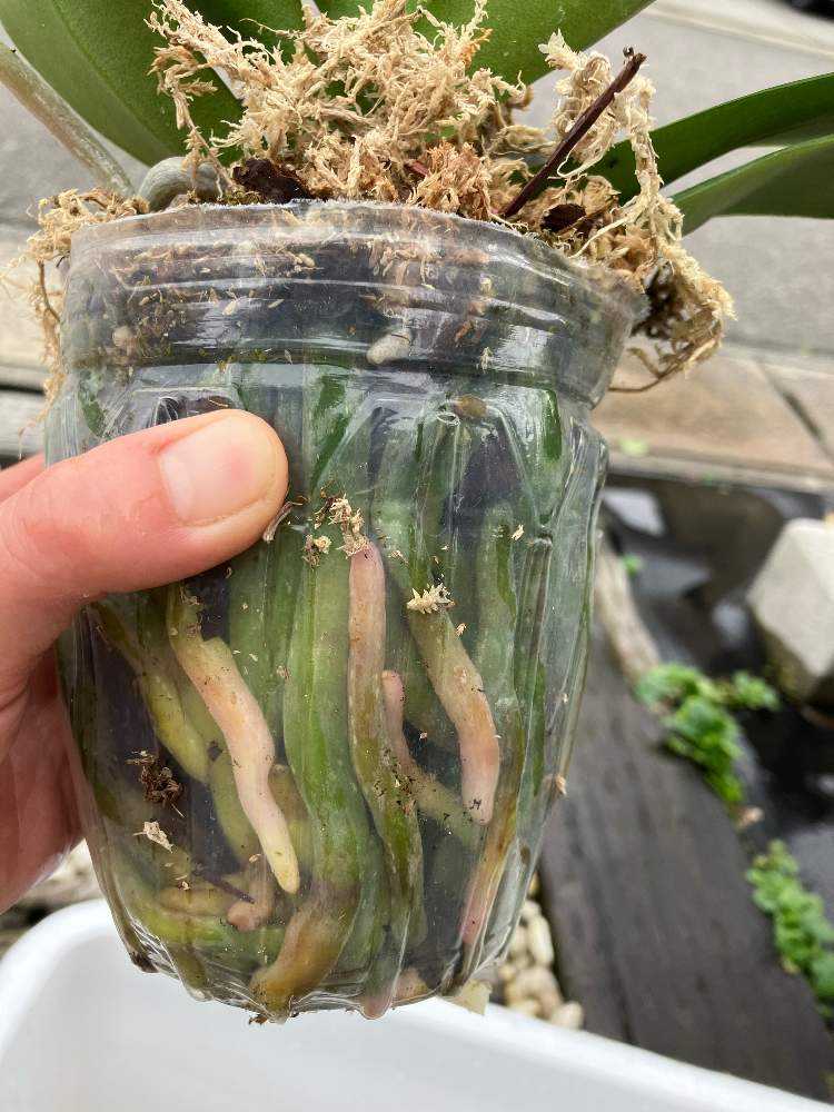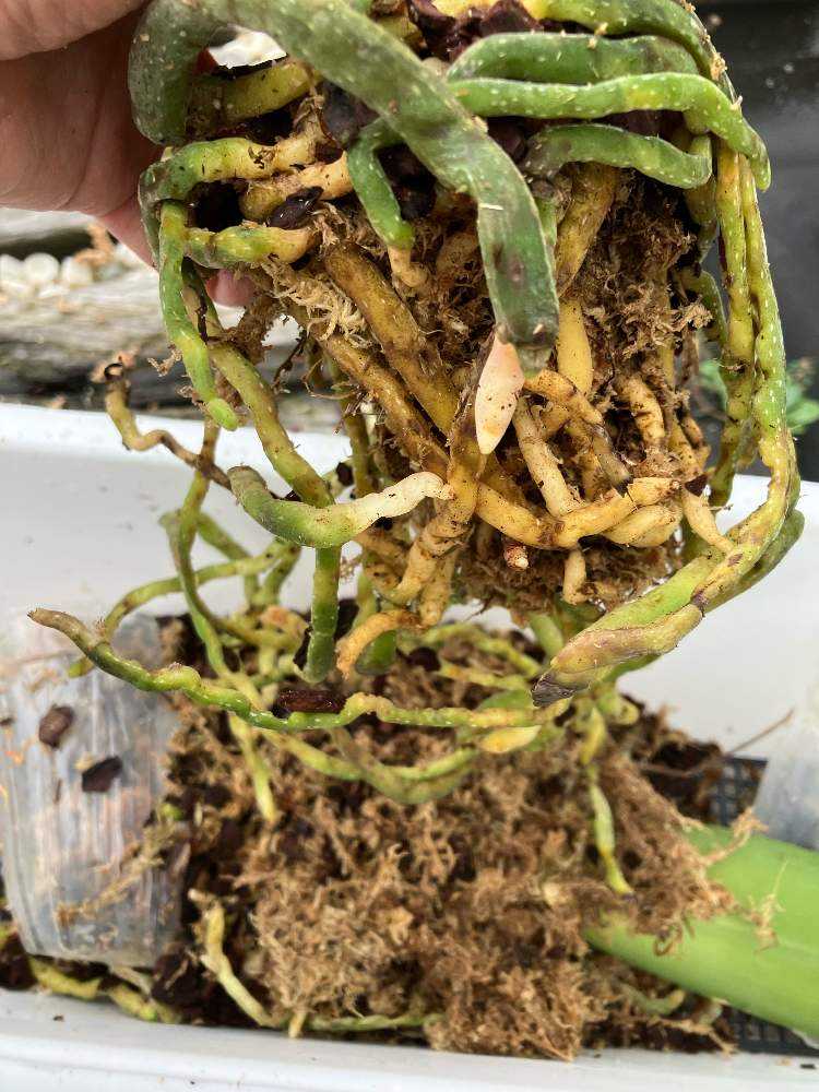 根っこを傷つけないようにハサミでポットを切り、取り出しました✂️中はムレムレ💦根っこもだいぶ傷んでいました。