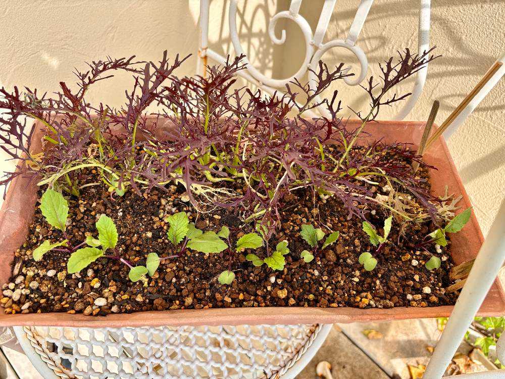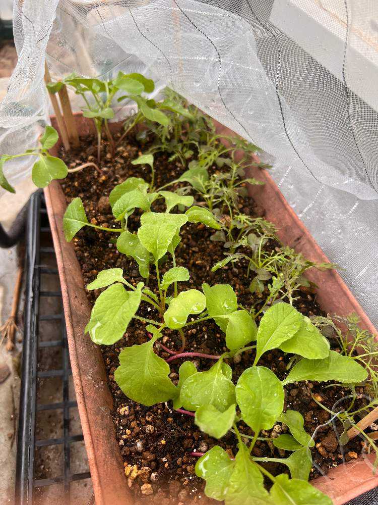 ラディッシュの後に日野菜カブの間引き菜を定稙