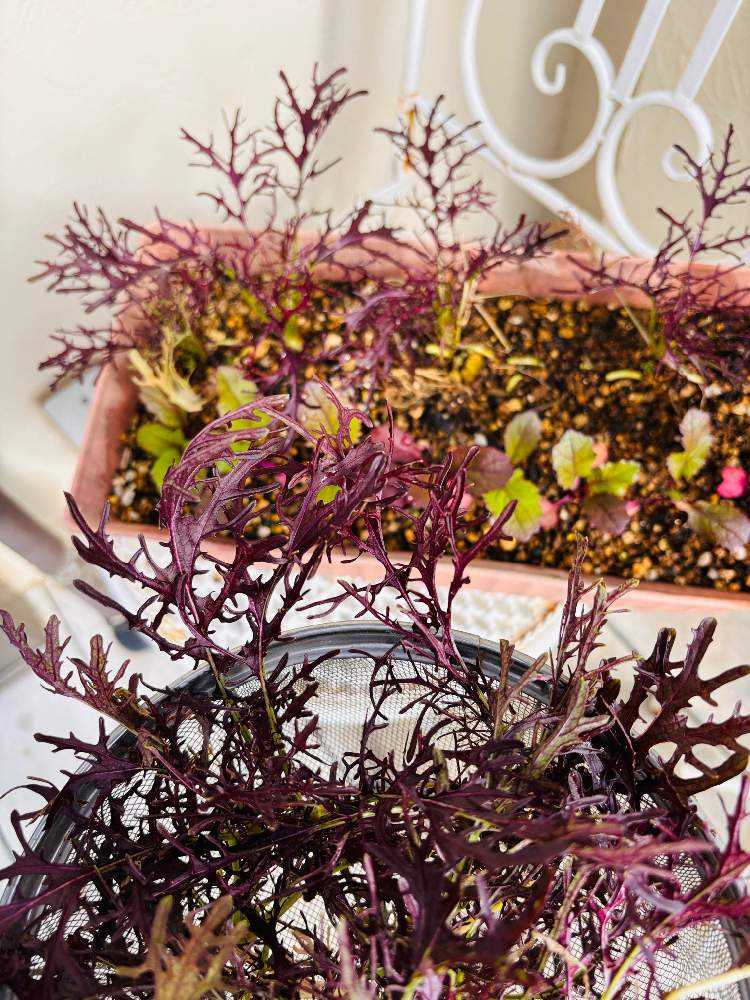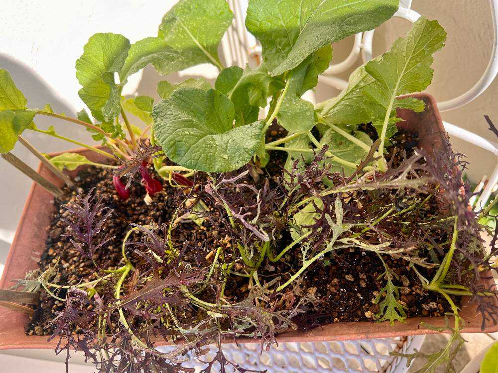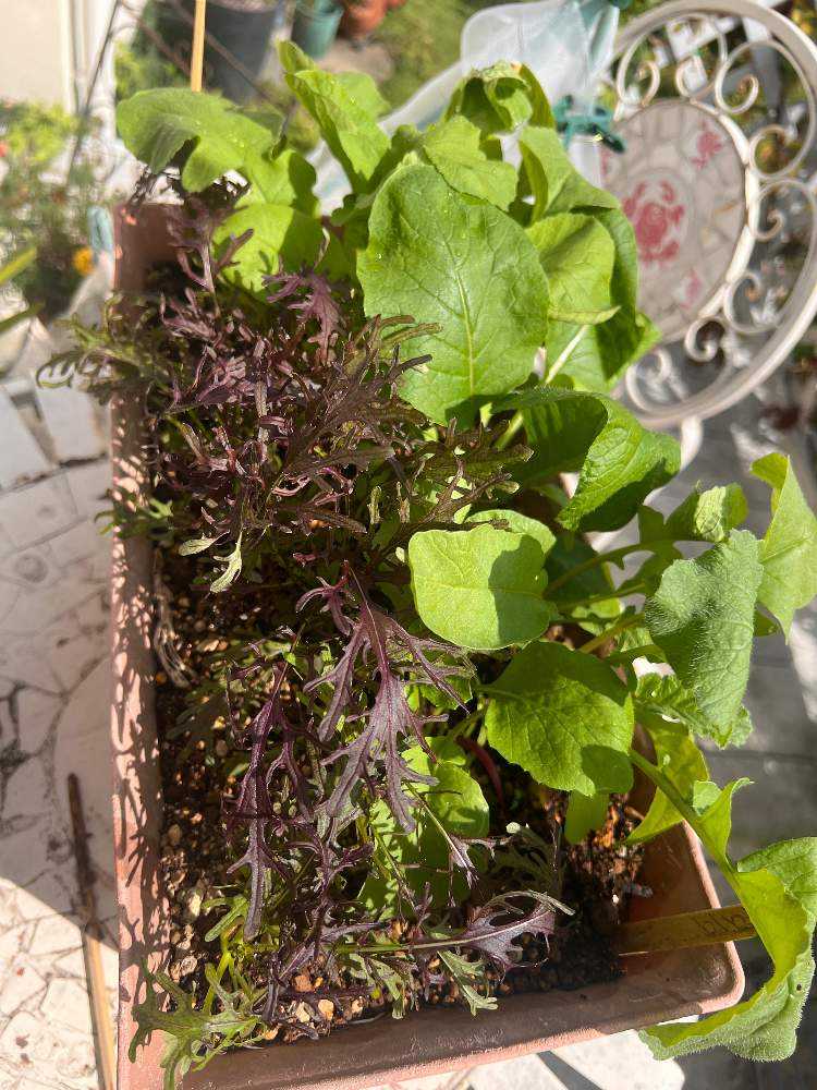 からし菜が混み合ったので収穫 サラダに入れたらピリッとして美味しかったです