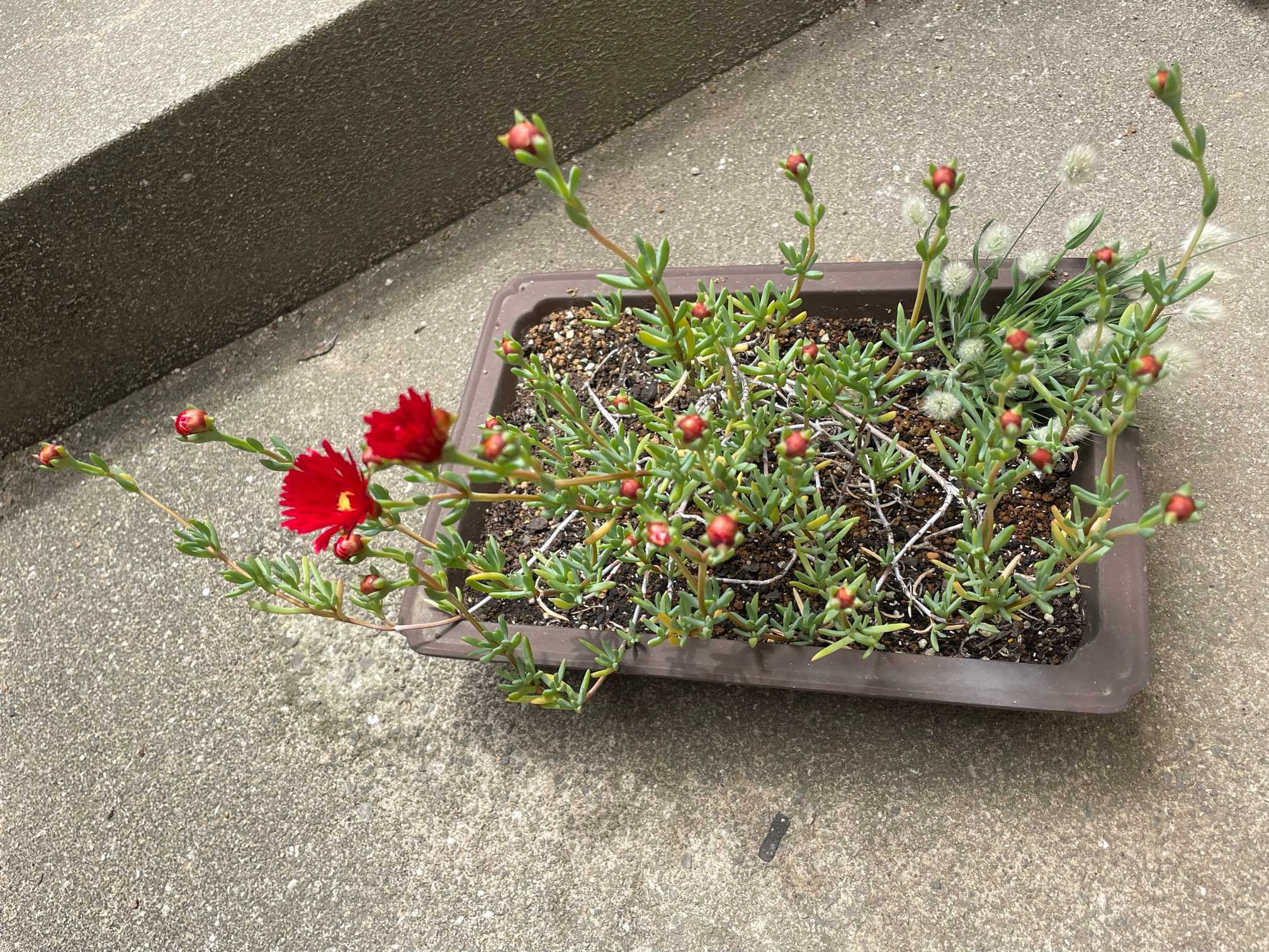 ラケちゃん鉢のコは、結局 日照り草ちゃん鉢に移植。ラケちゃん、そろそろ休眠だしね。