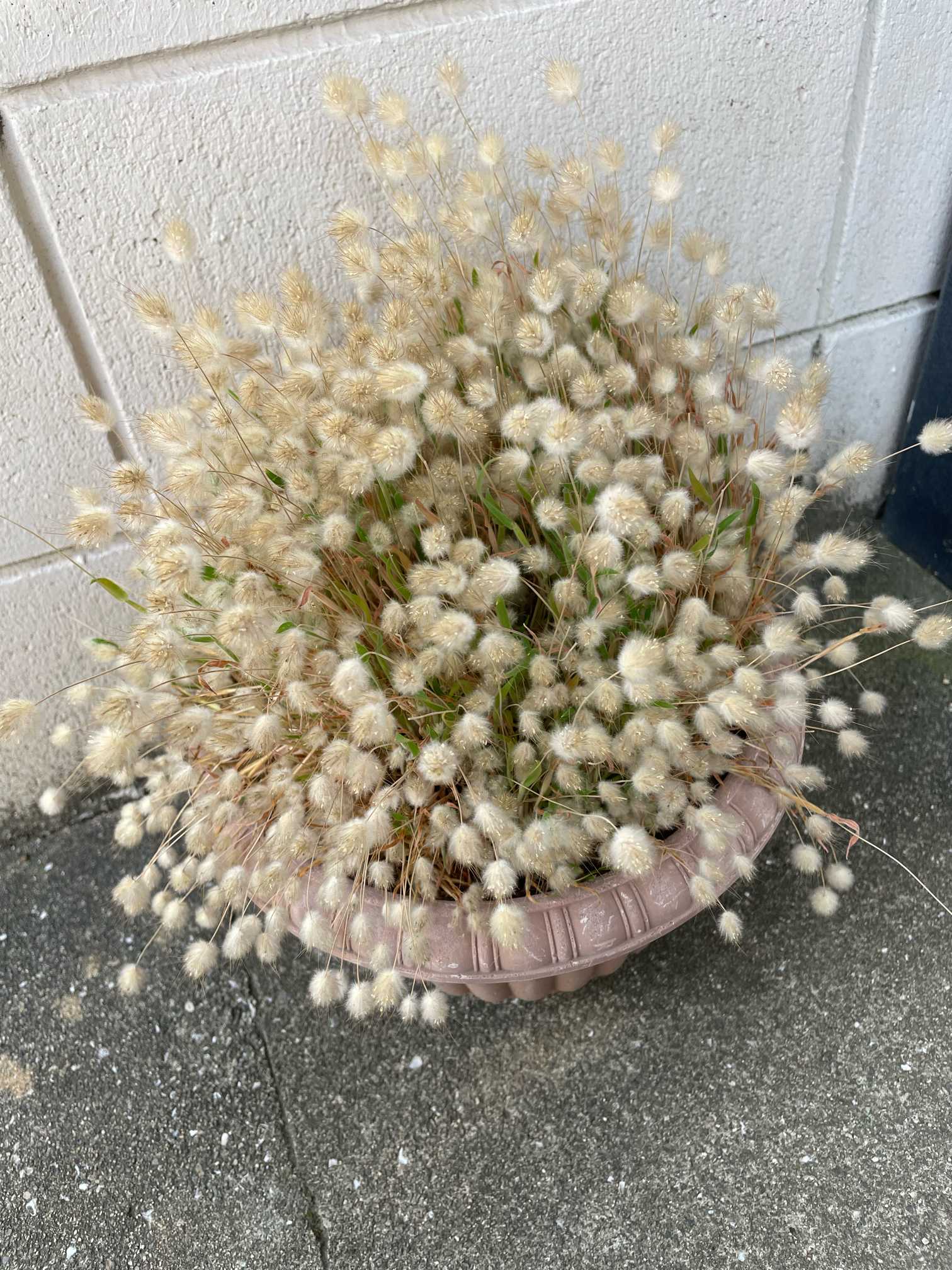 そういえば、近所の人に、「あの ウサギの尻尾みたいなのは、今 どこにある?」と聞かれ、「花が咲いてきたから裏庭に置いてます」と答えたら、「ドライにできるの 知ってる? かわいいよー」って。