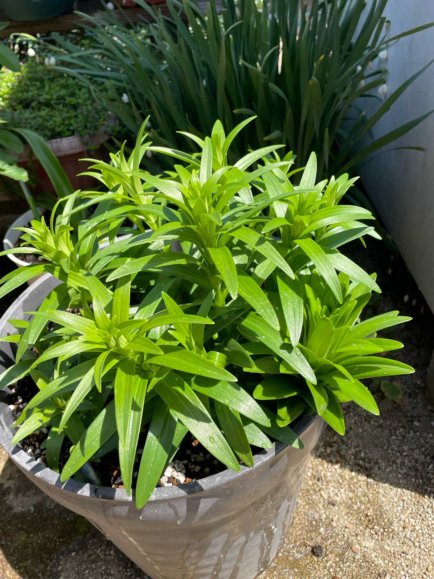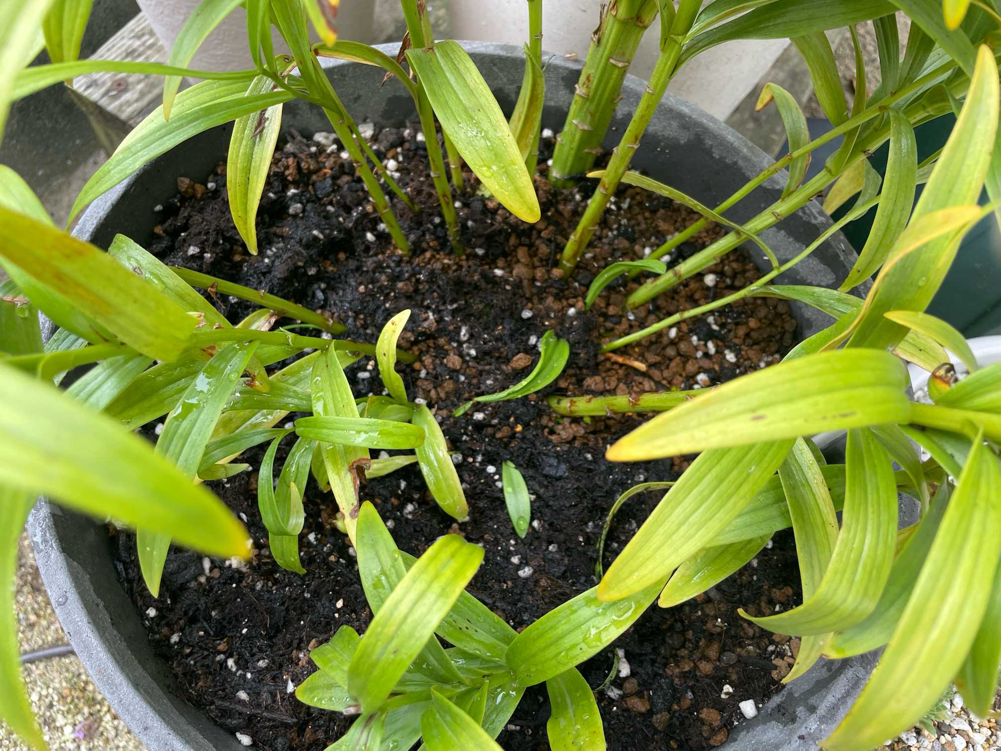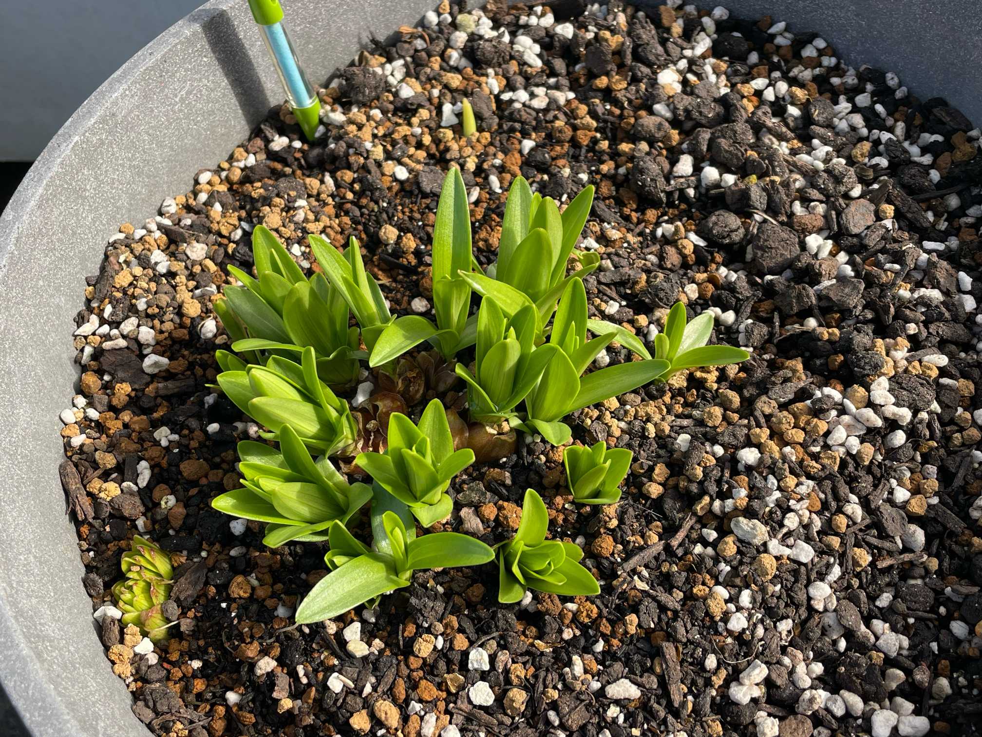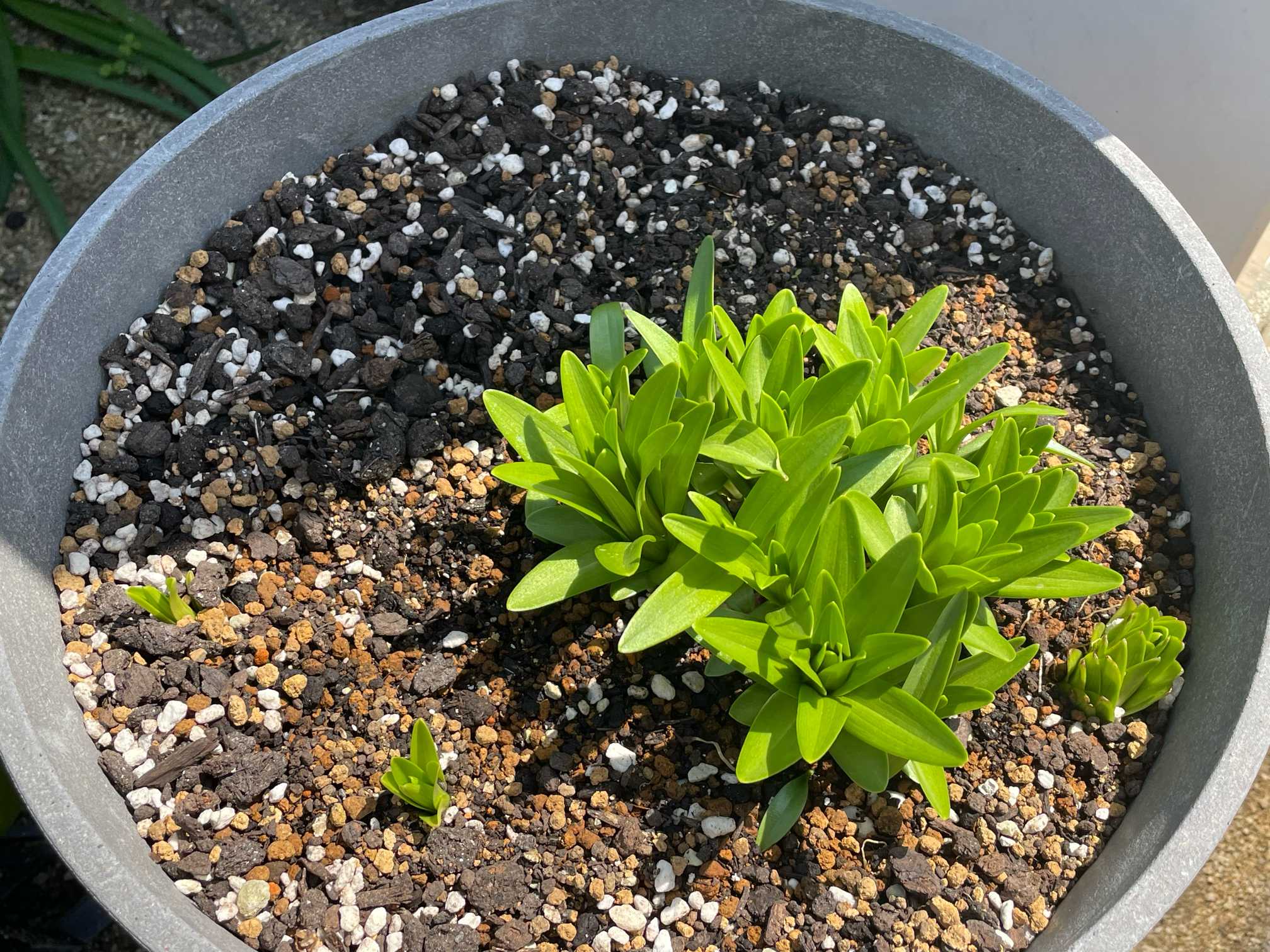 ネットにもいろいろ書かれてますが、今回は、「ユリの球根は上部から上根、下部からは下根が伸びてきます。両方の根っこをしっかり張ることで丈夫な株に育つため 深植えにして根を伸びるスペースを確保することが重要です」と書いてる この方法で☝️