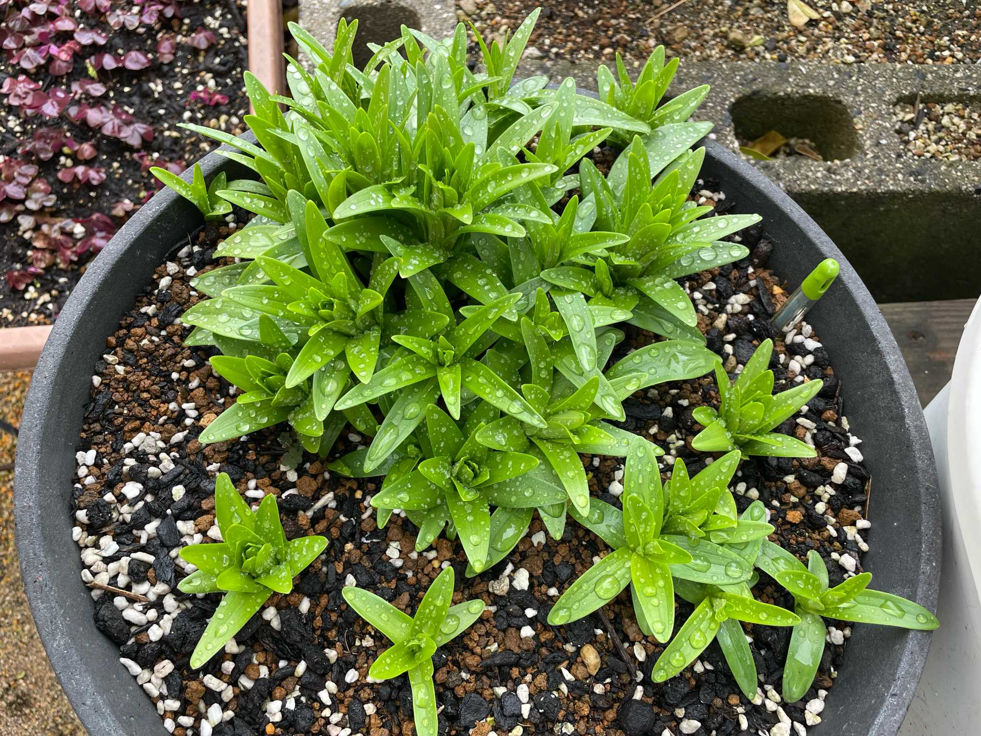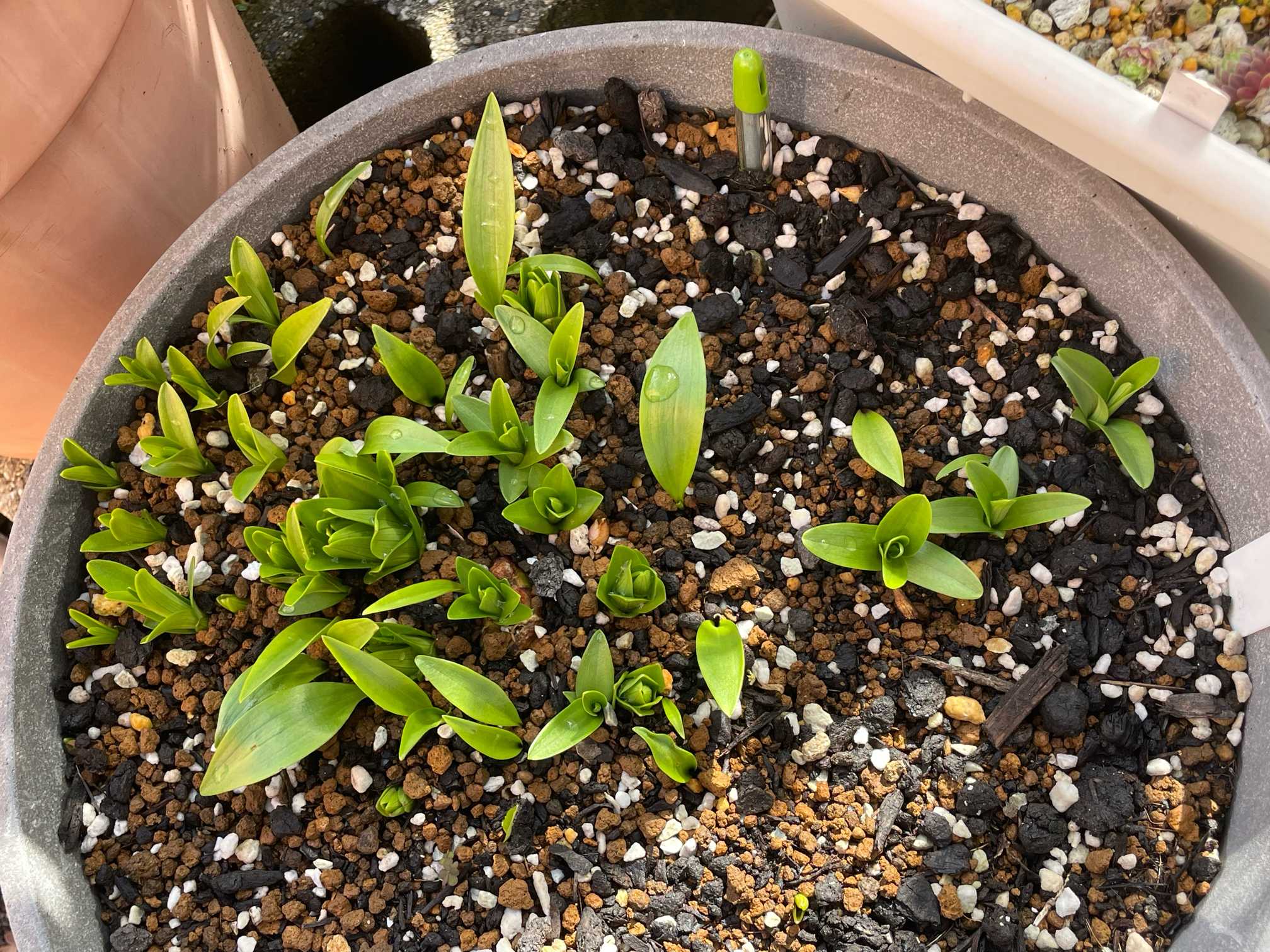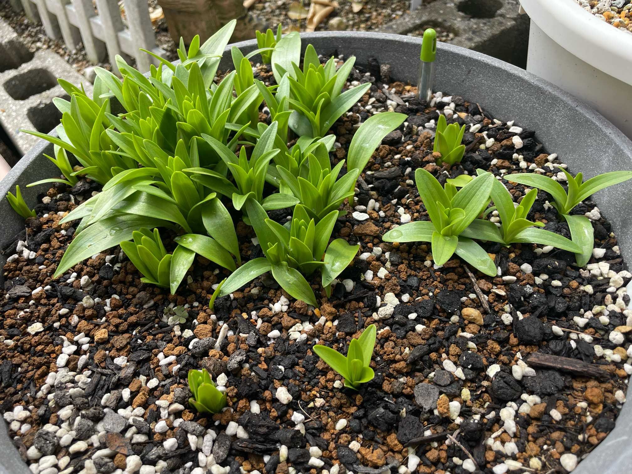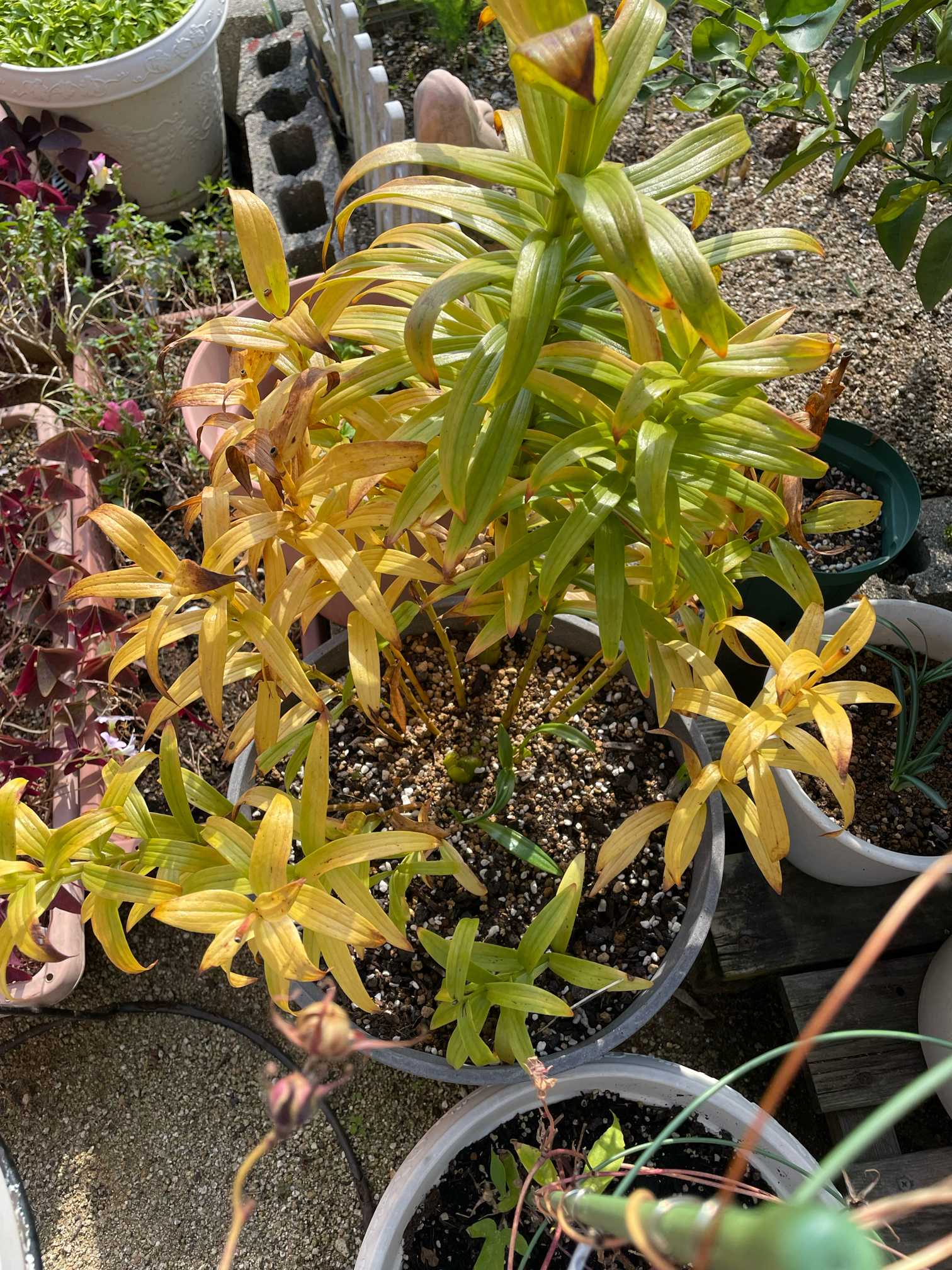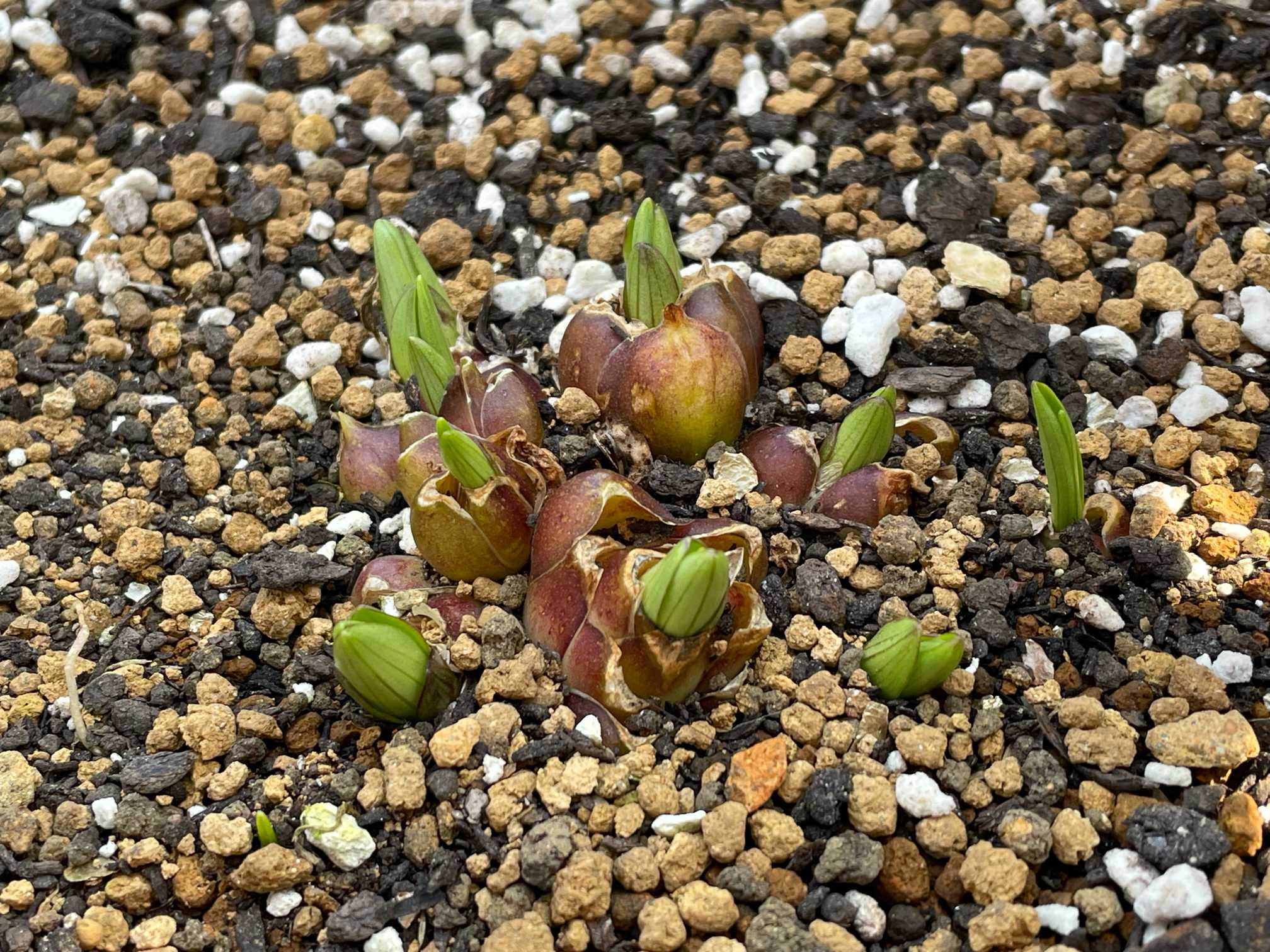 ネットにもいろいろ書かれてますが、今回は、「ユリの球根は上部から上根、下部からは下根が伸びてきます。両方の根っこをしっかり張ることで丈夫な株に育つため 深植えにして根を伸びるスペースを確保することが重要です」と書いてる この方法で☝️