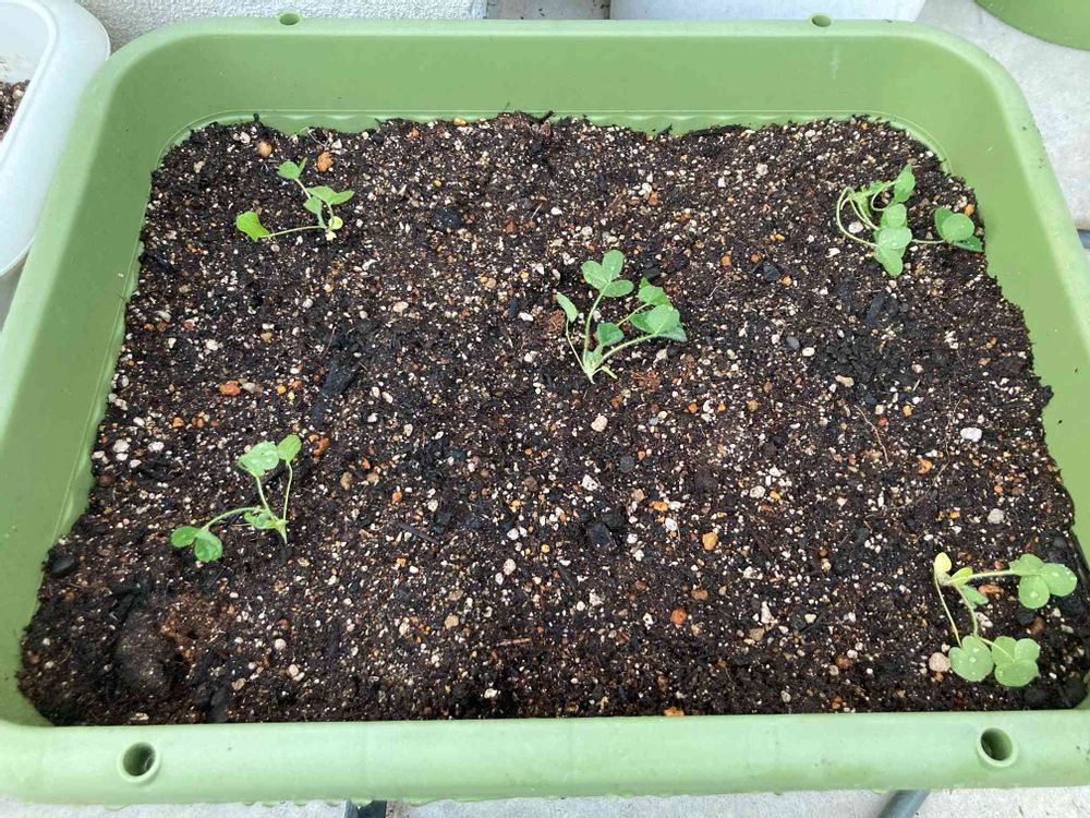 種の袋に、横に伸びると書いてあったので、少し広めのプランターをチョイス🌱