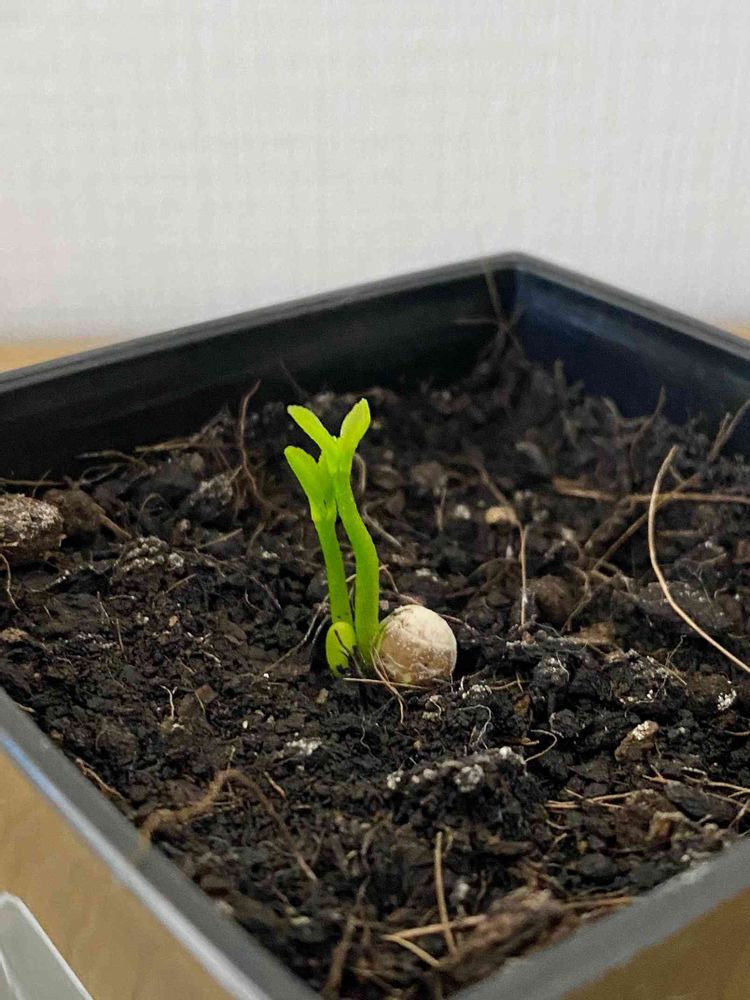 土の中に埋めた種が、発芽の前に地上に出てくるとは思っていなくて、びっくりしました🫢