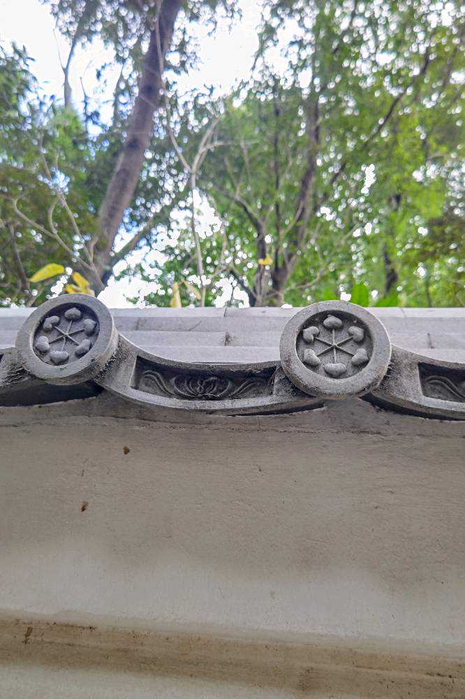 築地塀の六葉葵の紋。水戸家の裏家紋。