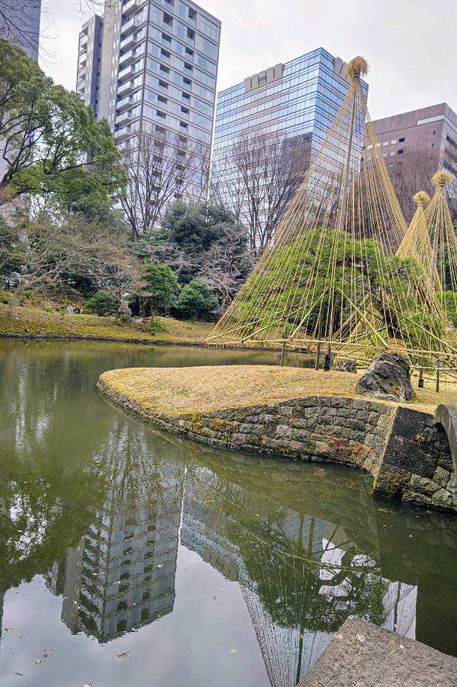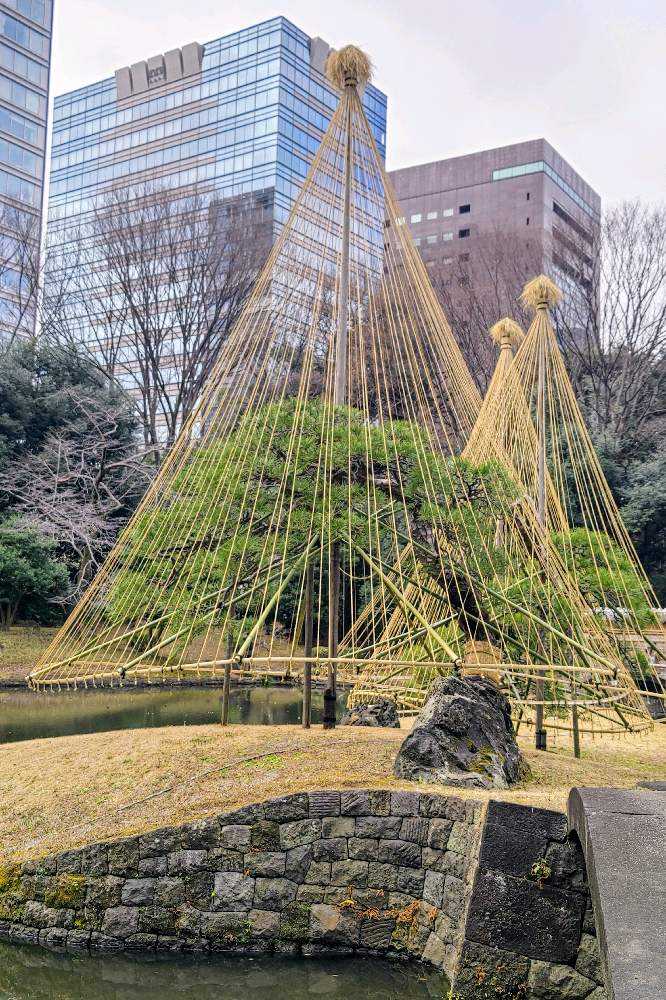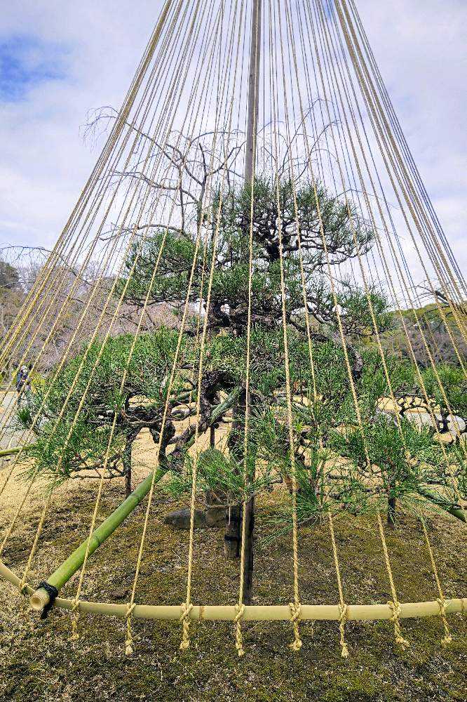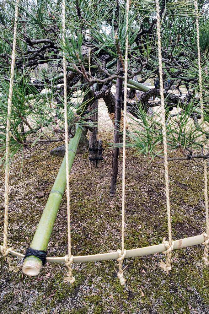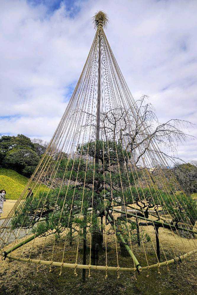 水戸黄門ゆかりの名園、小石川後楽園。この冬は技能員と呼ばれる庭師さんの仕事に魅せられて。初めて目にする雪吊りの美しいこと。冬の設えで景観アップ。