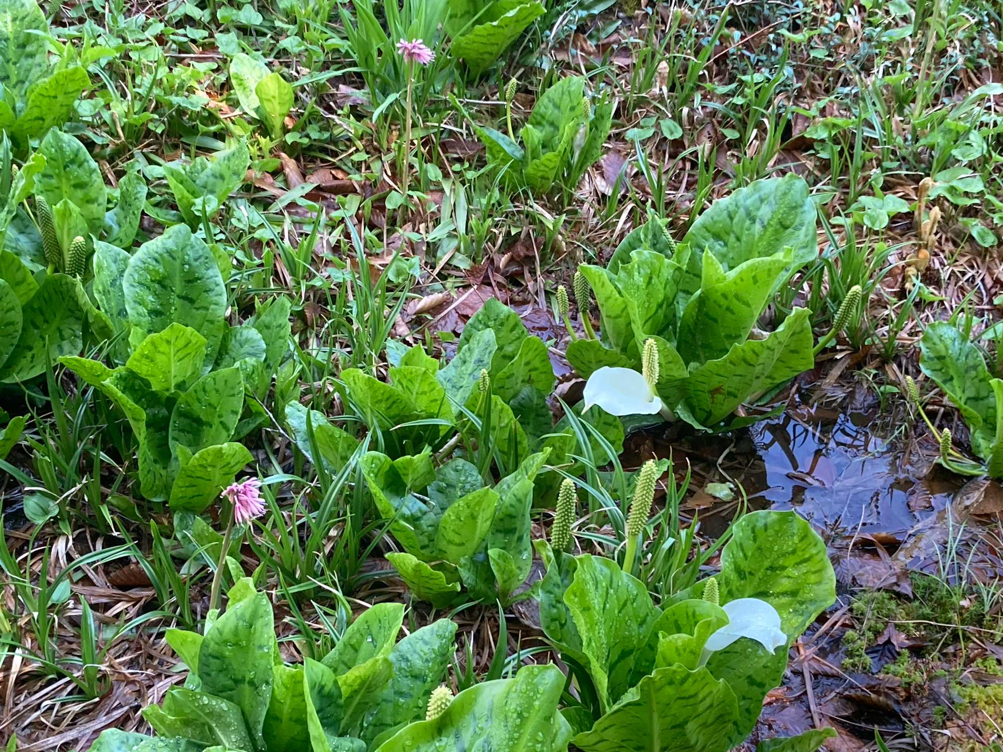 この時期にミズバショウと一緒に咲いてるショウジョウバカマに出会えました💕