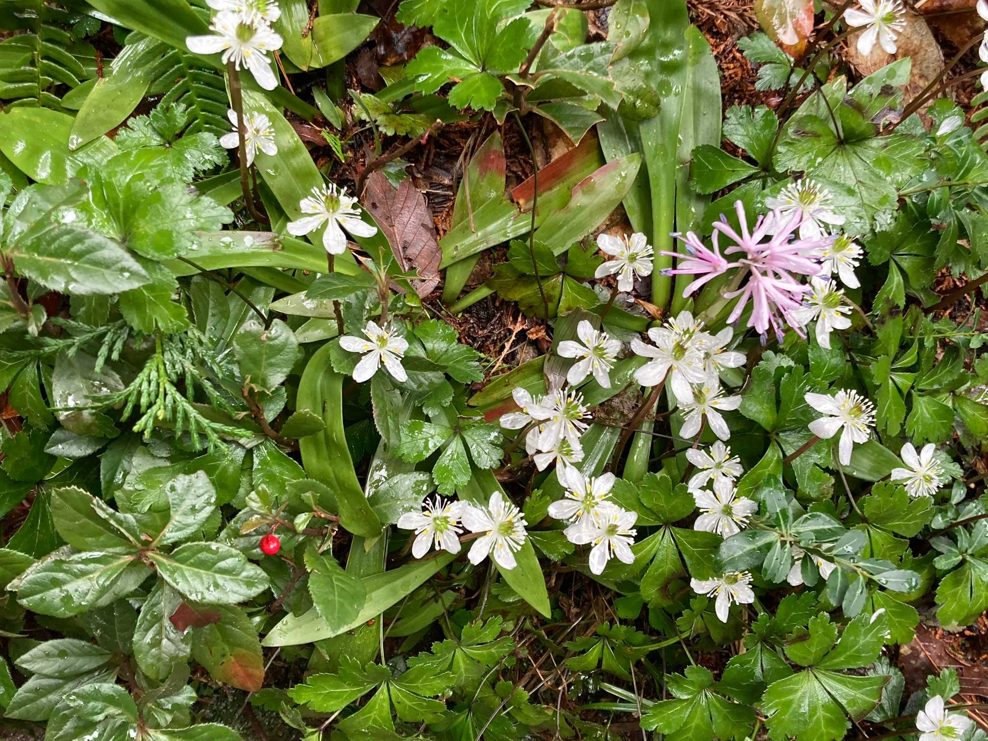 こちらの森の沢沿いには、固有種のキタヤマオウレンが沢山自生しています🤍🌿