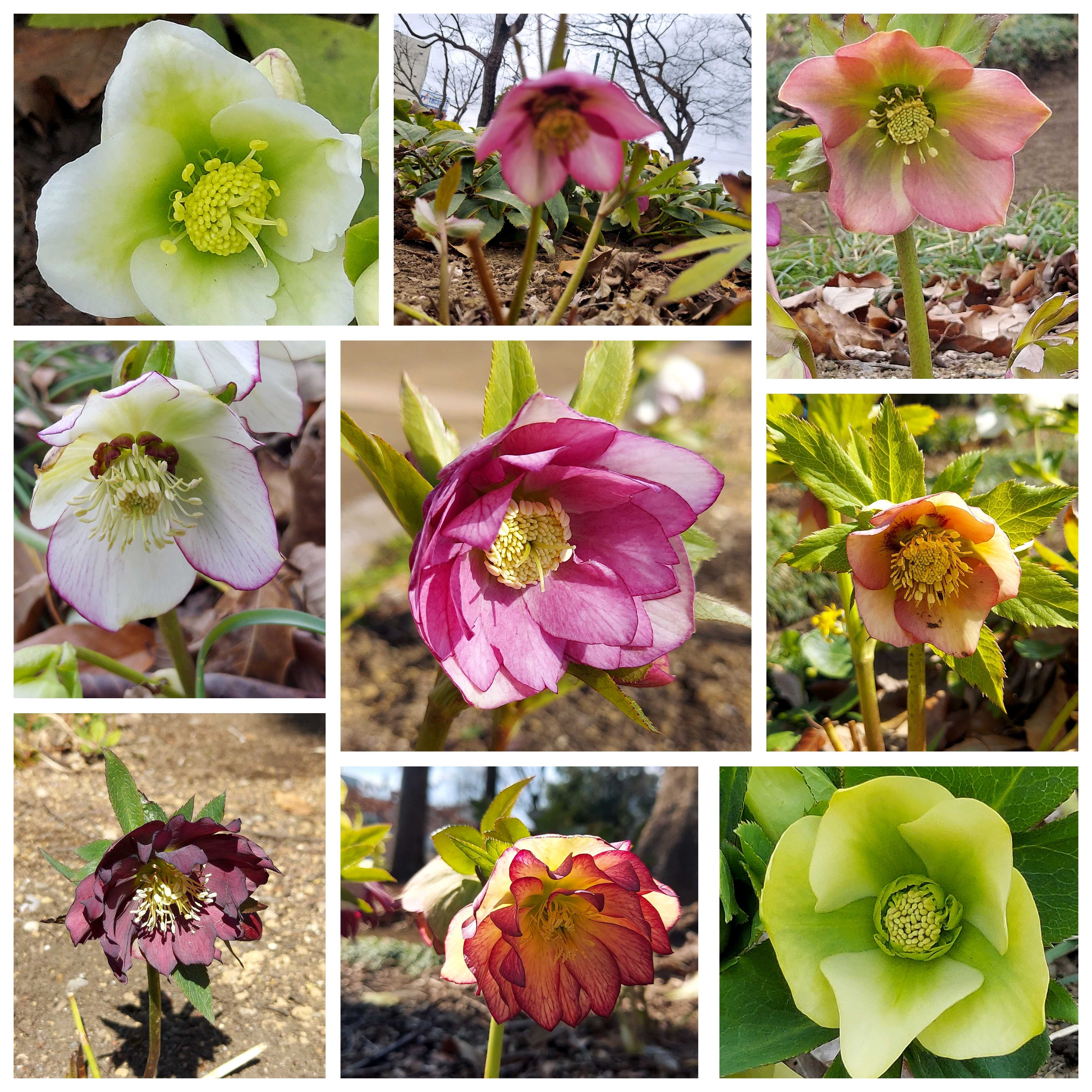 色々なクリスマスローズ咲いていて見応え有る花壇ですね✨
