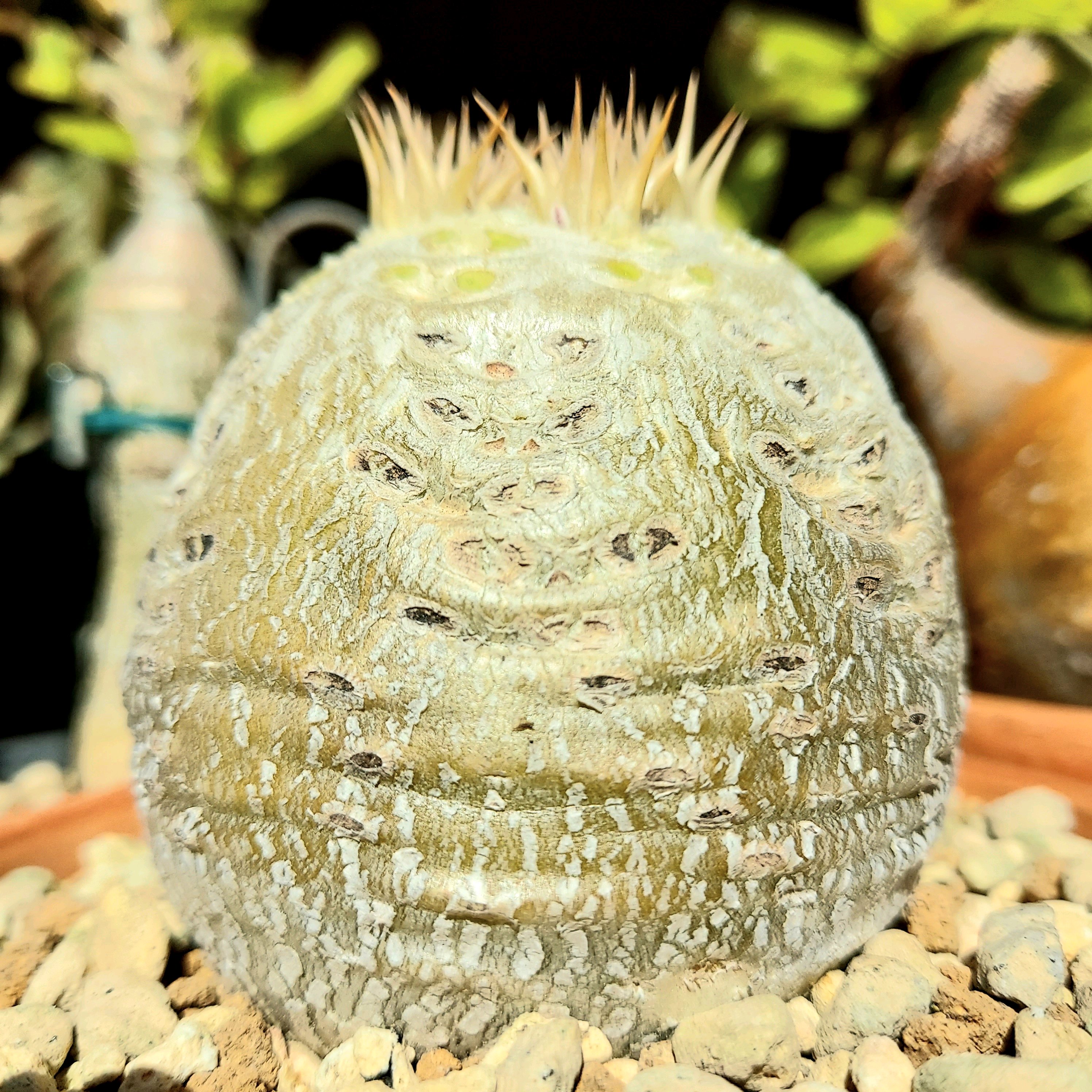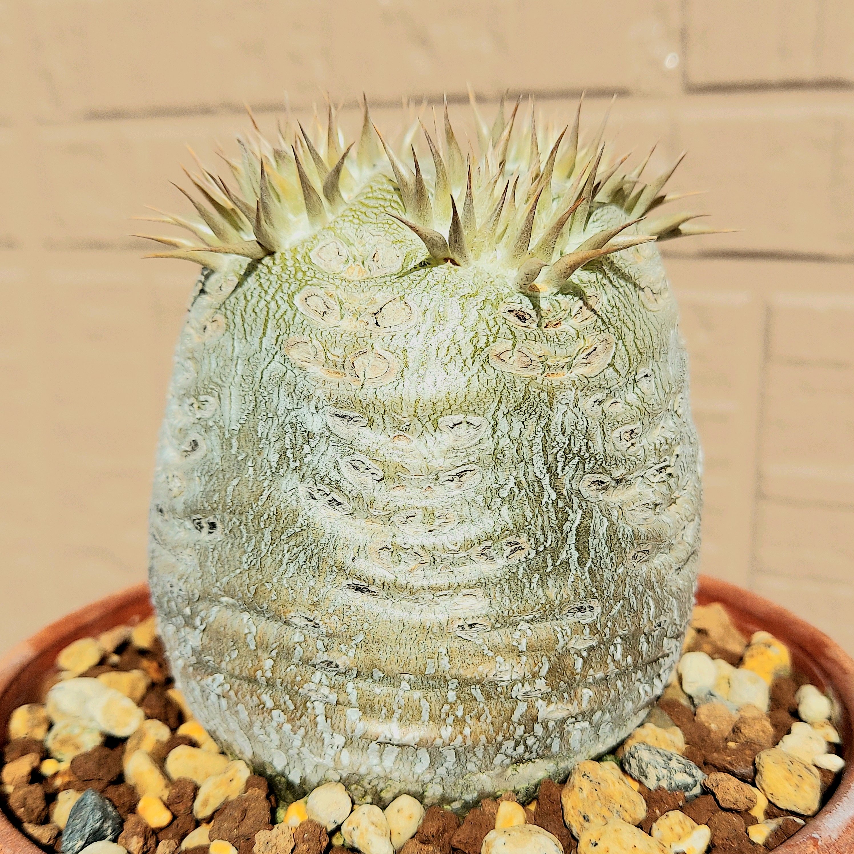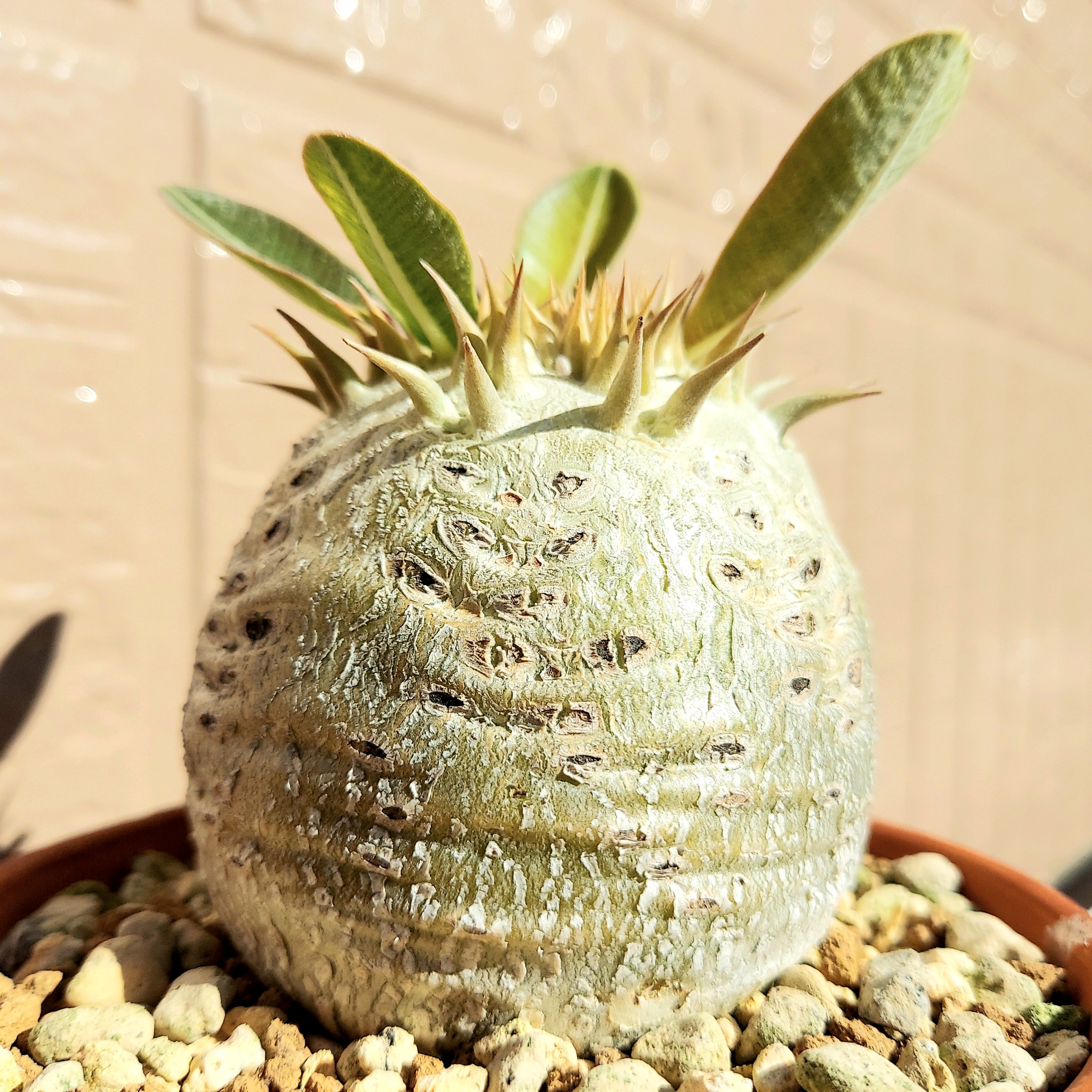 入手時点で刺の損傷が酷かったエブレネウムに協力してもらい、パキポのトゲを切り落とした傷痕がどう変化していくか記録したいと思います