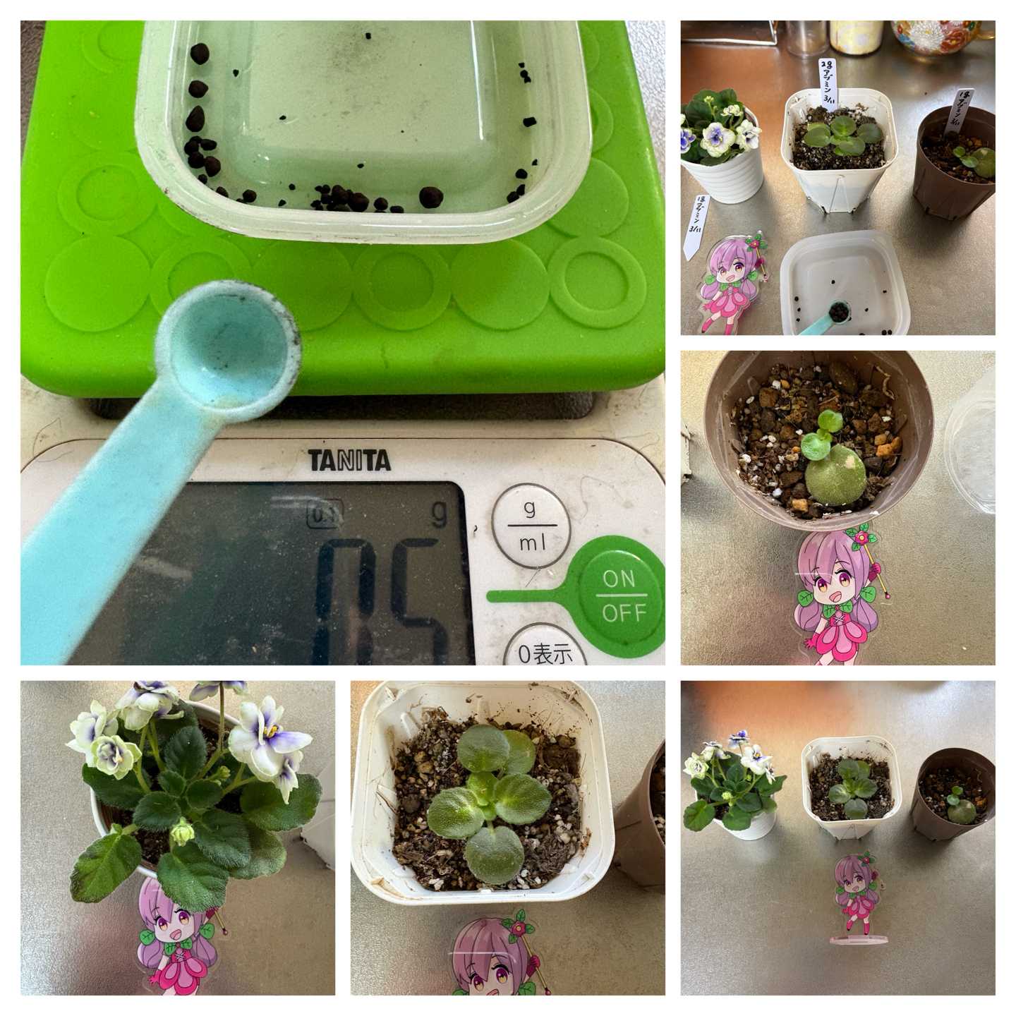 鉢が小さいので0.5gだけです.ミニセントポーリアはいっぱいお花咲かせるでしょうか 3/9