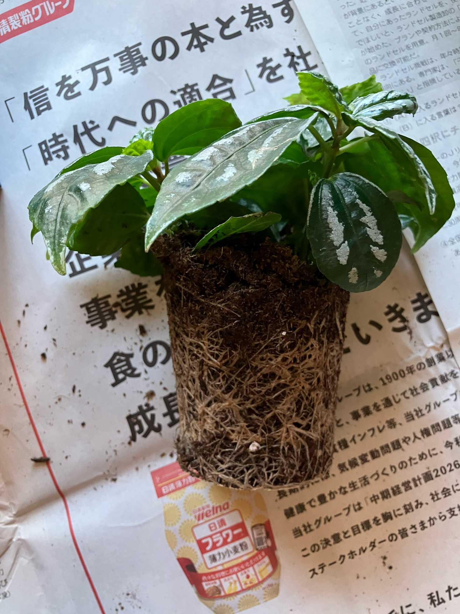 1ヶ月前に植え替えたけど、透明スリット鉢に藻が生えるから植え替え