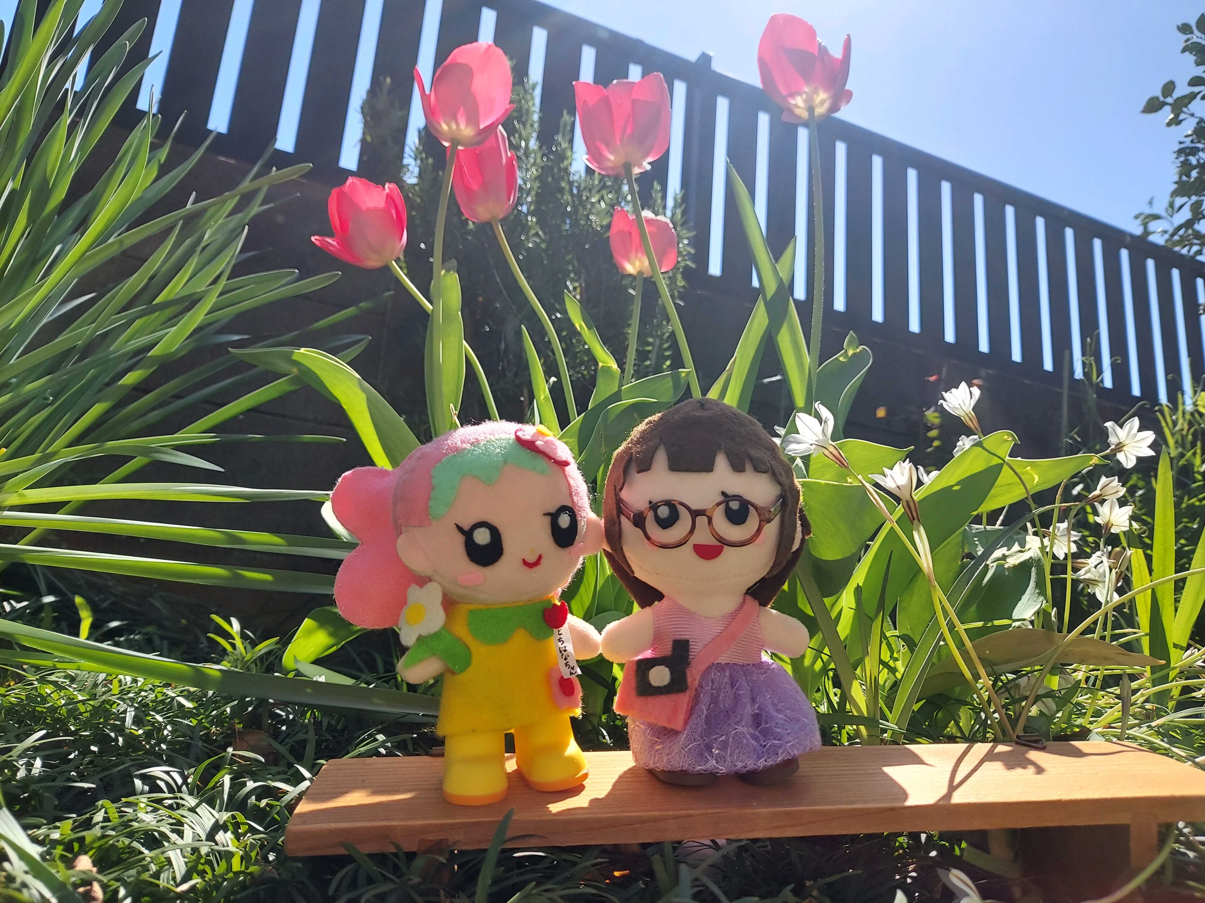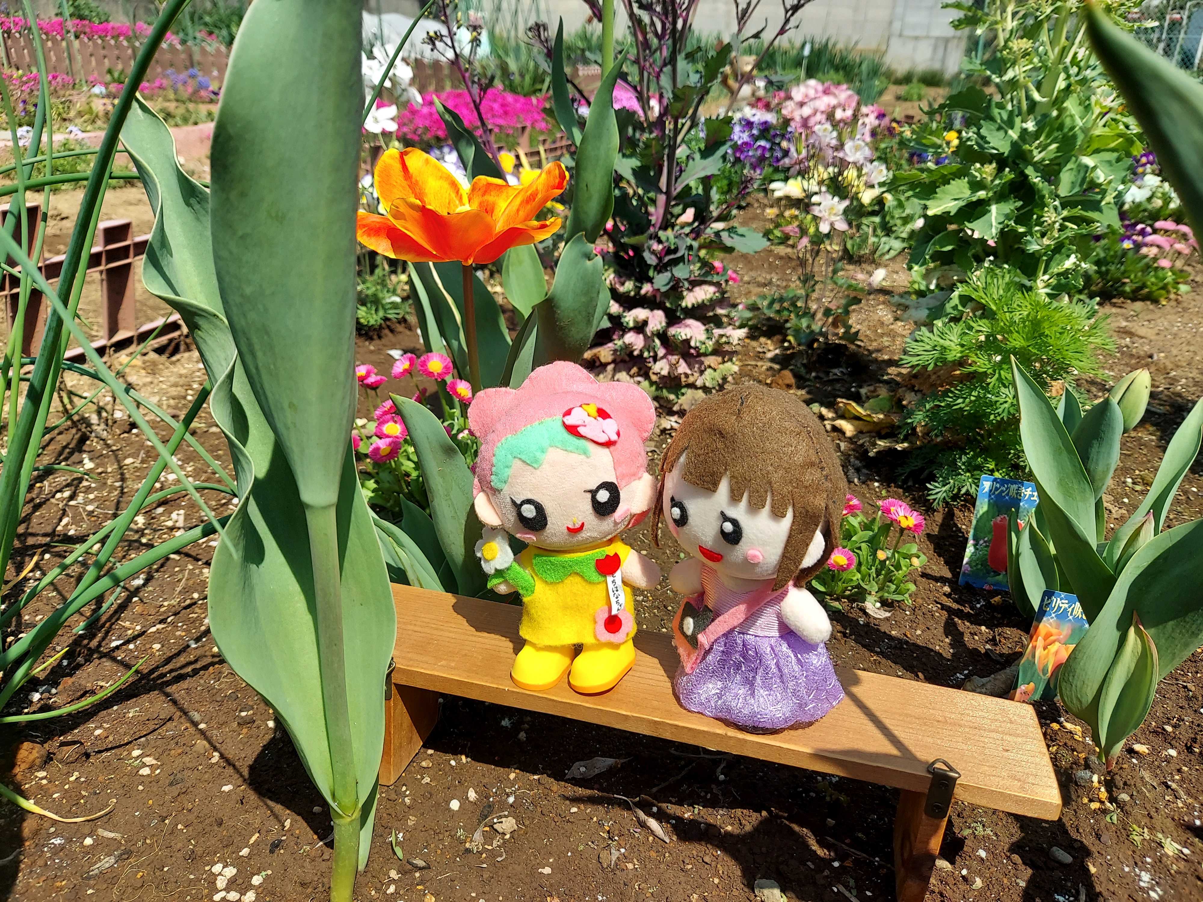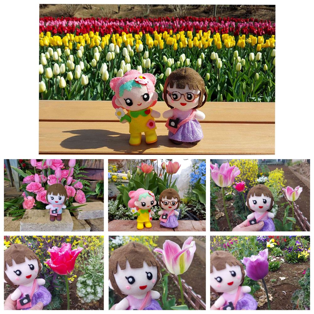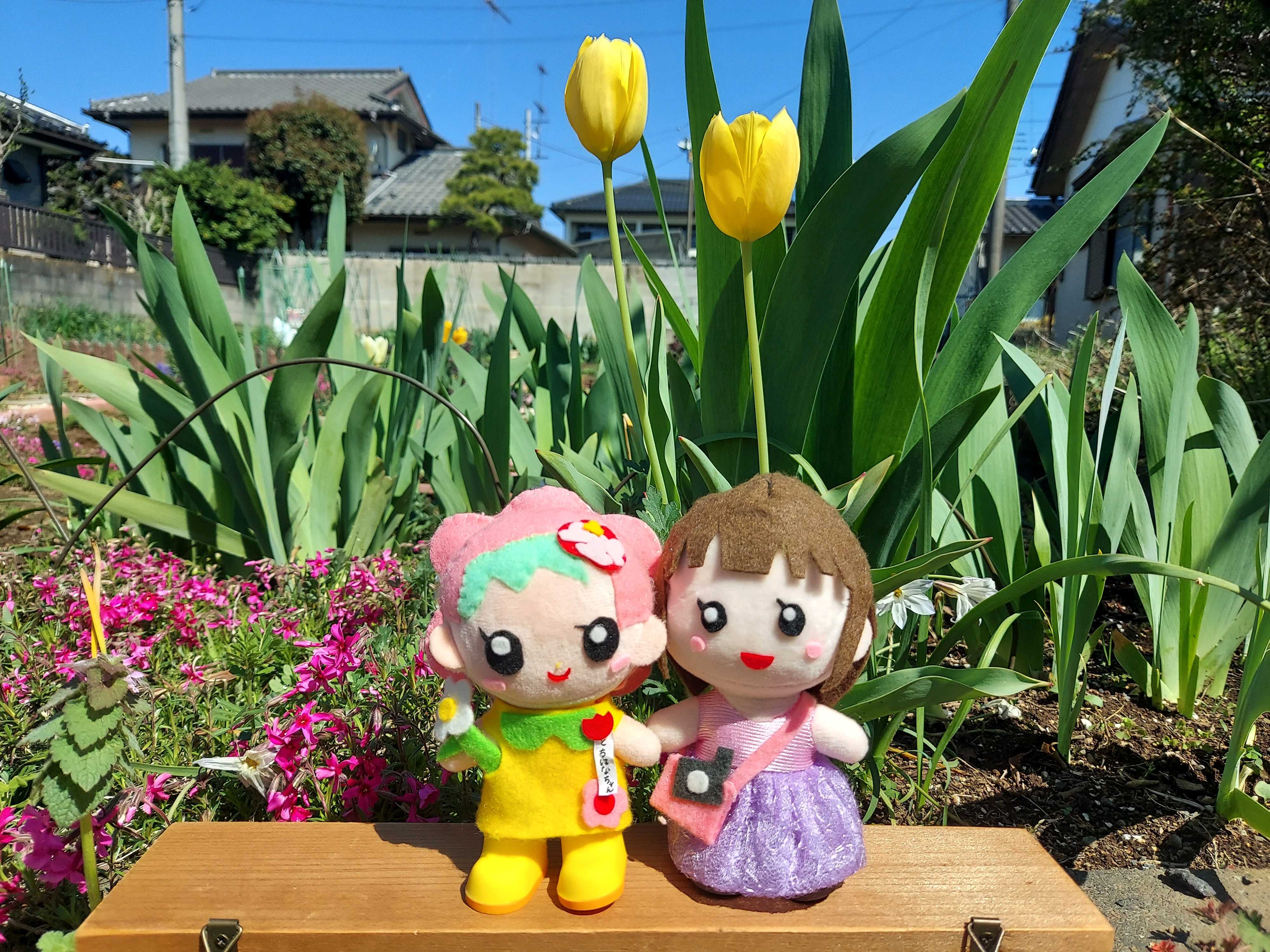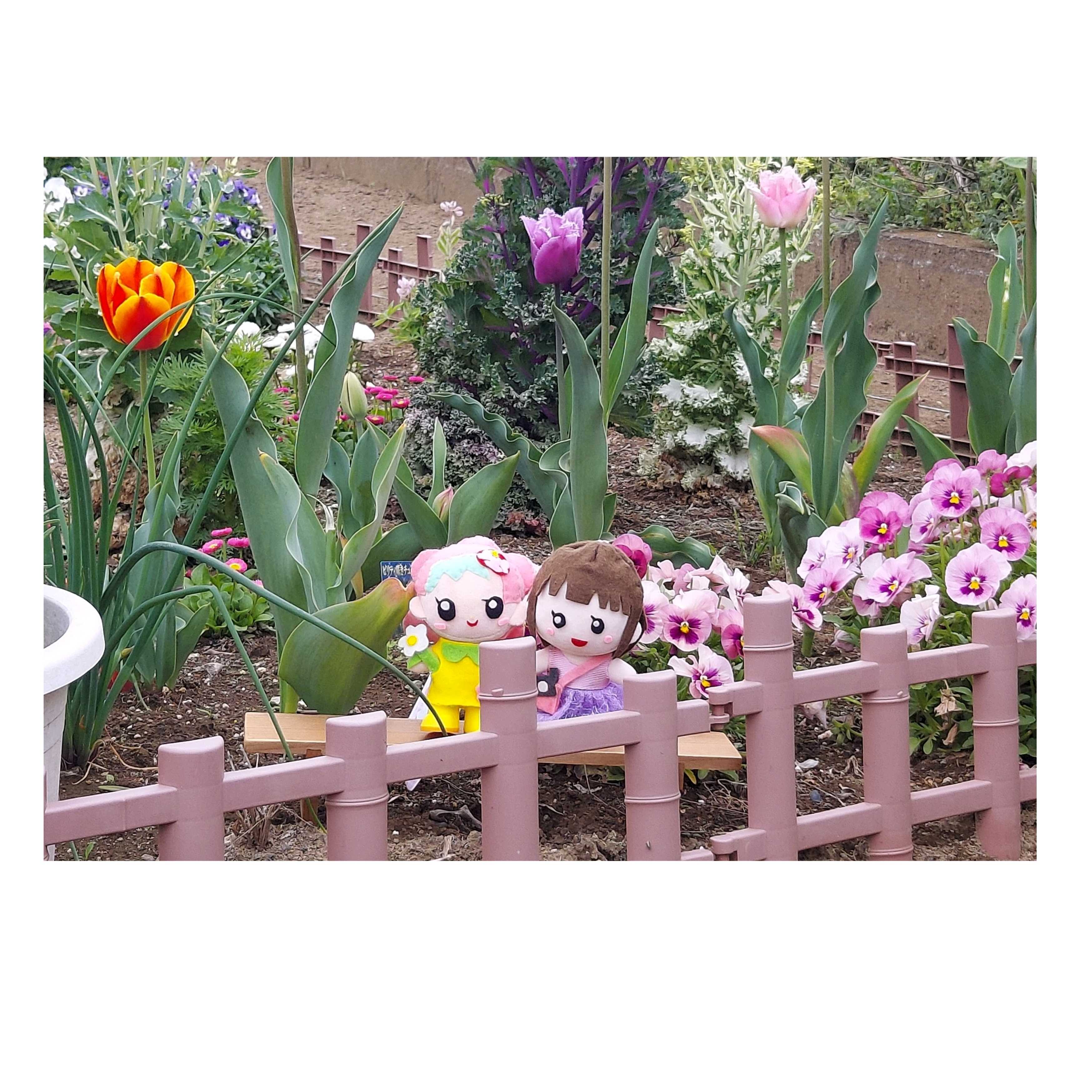 たくさんのチューリップ🌷とゆみゆみちゃん、とちはなちゃんの記念撮影、とっても素敵です。