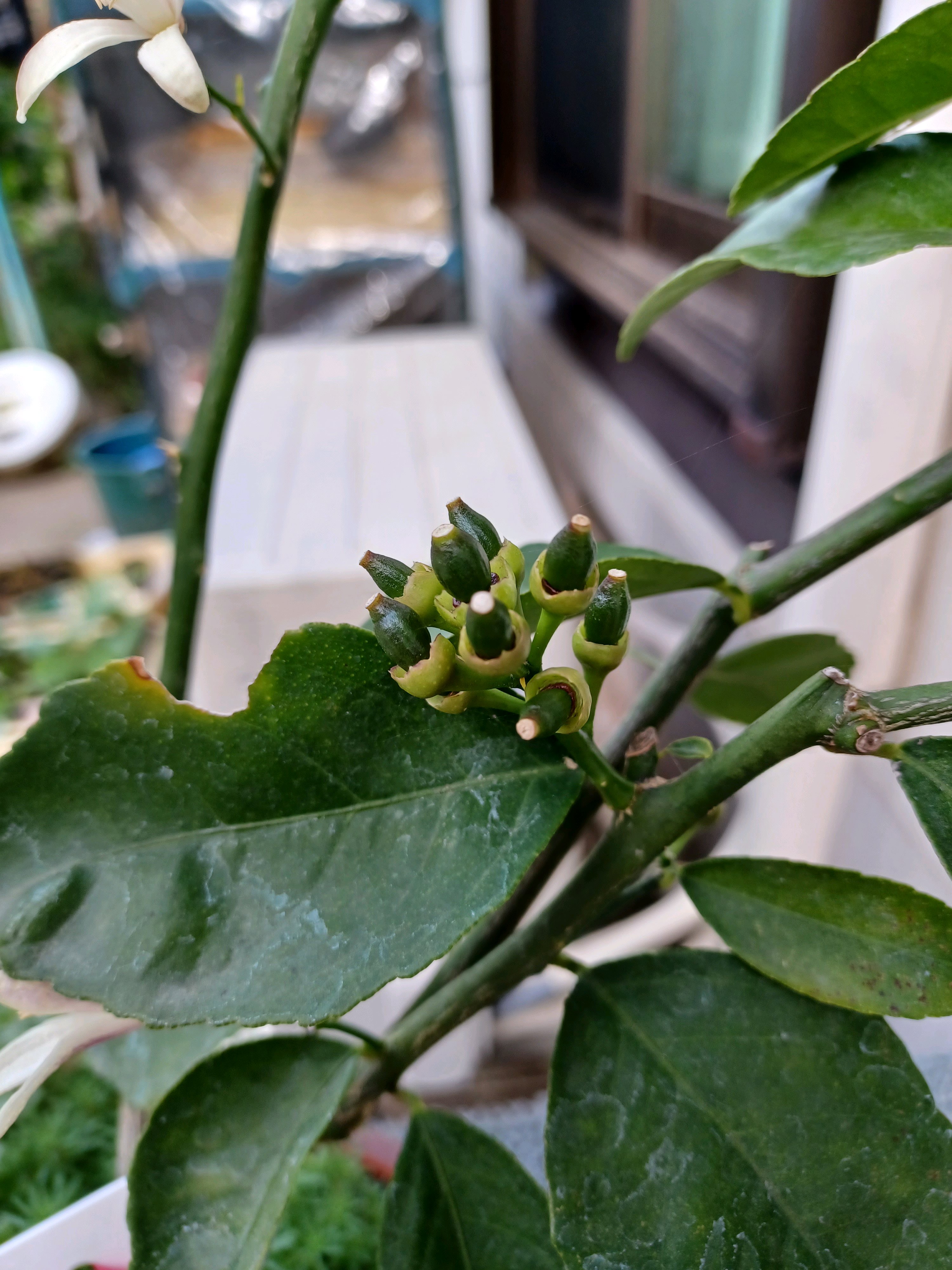 鉢植えの場合、3個くらいが限界だそうで、小さいうちに自然に落ちるものが多いです。