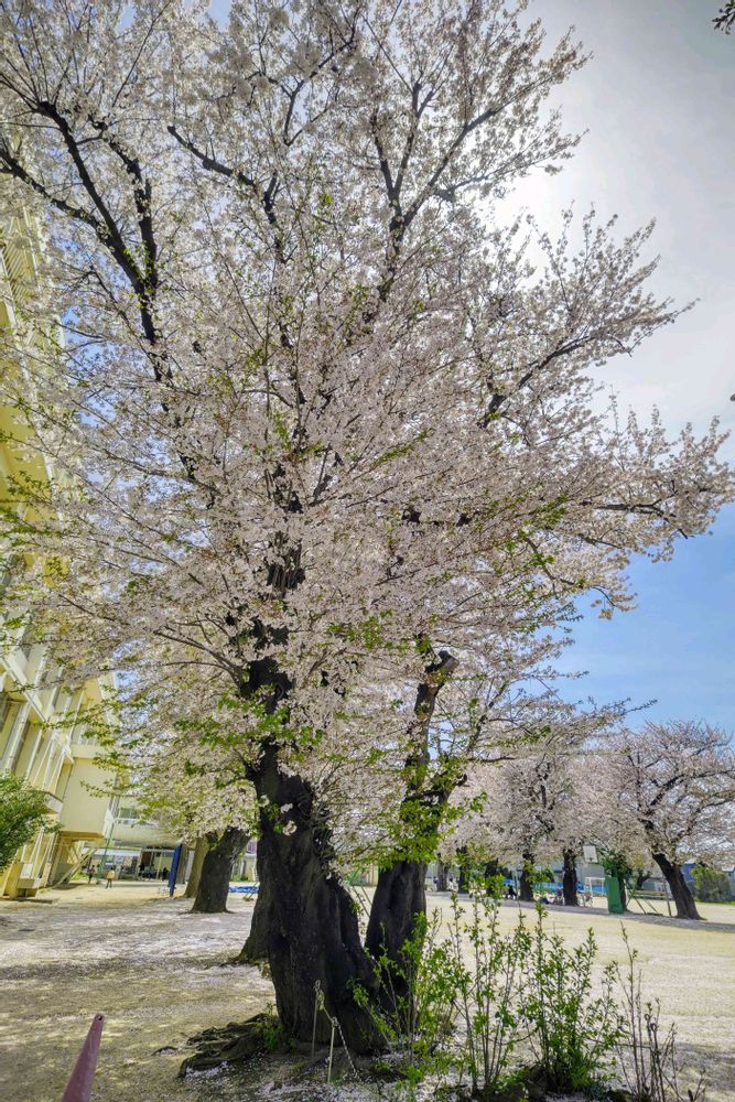 地域で1番美しいと思ってた高木2小の桜。1959(s34)当時の皇太子御成婚と国土緑化運動に合わせて、10本校庭脇の庭に植栽。その後少しずつ植栽。とあるから植樹され65年程かな。