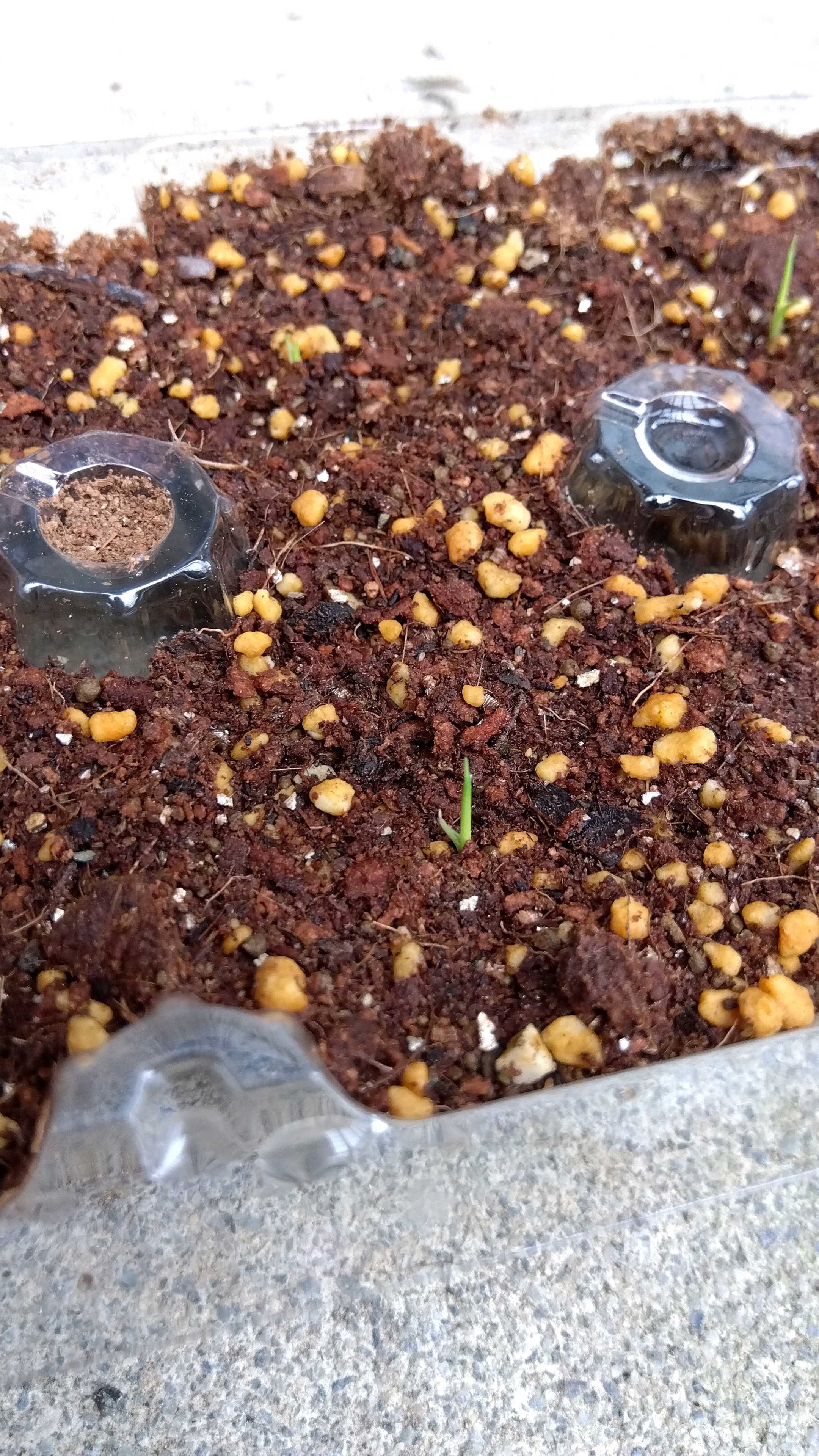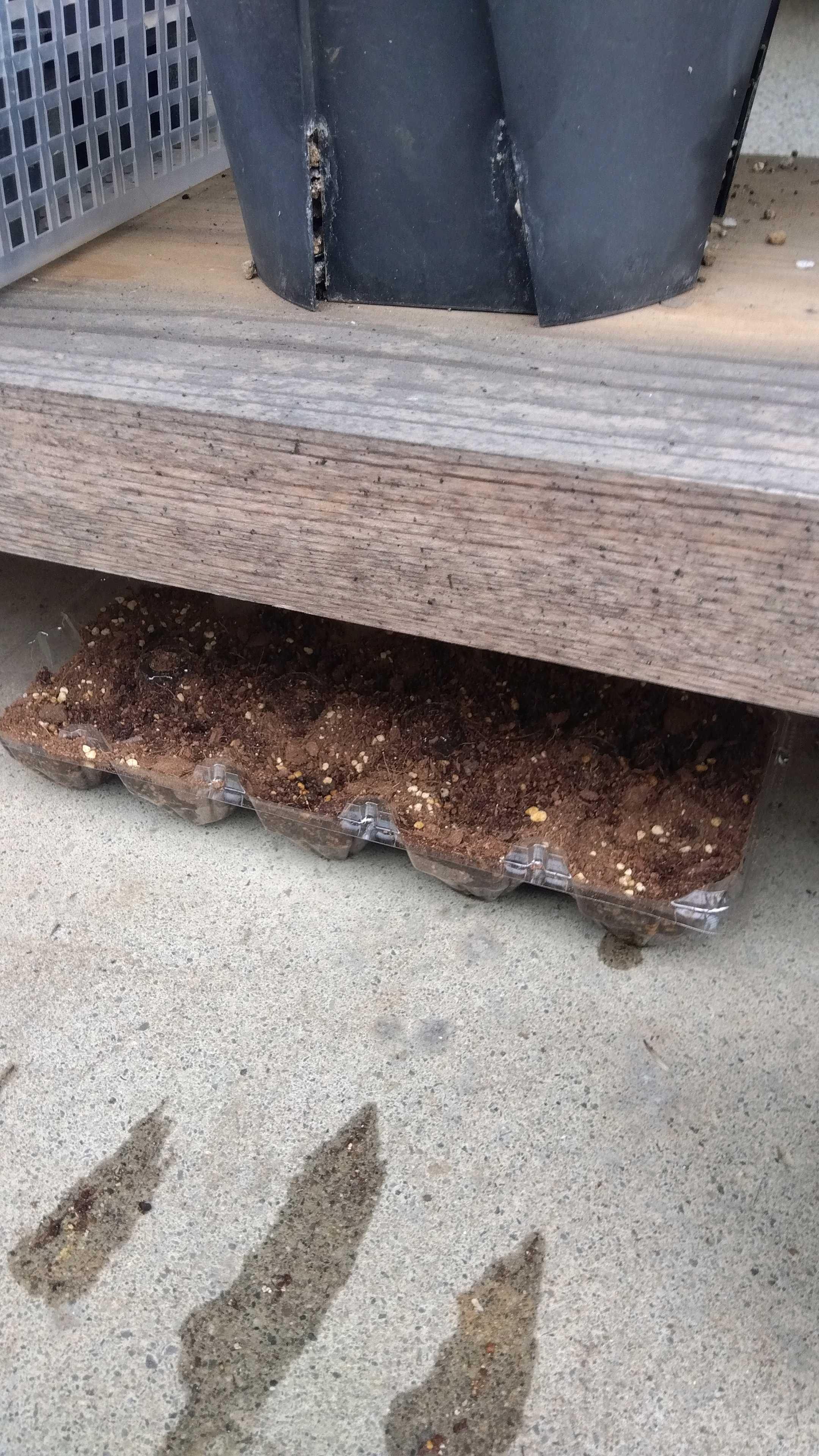 どれくらい土被せていいか分からなかったので、でも、発芽はしてるから、ちょっとだけ土〜出るくらいにしました。