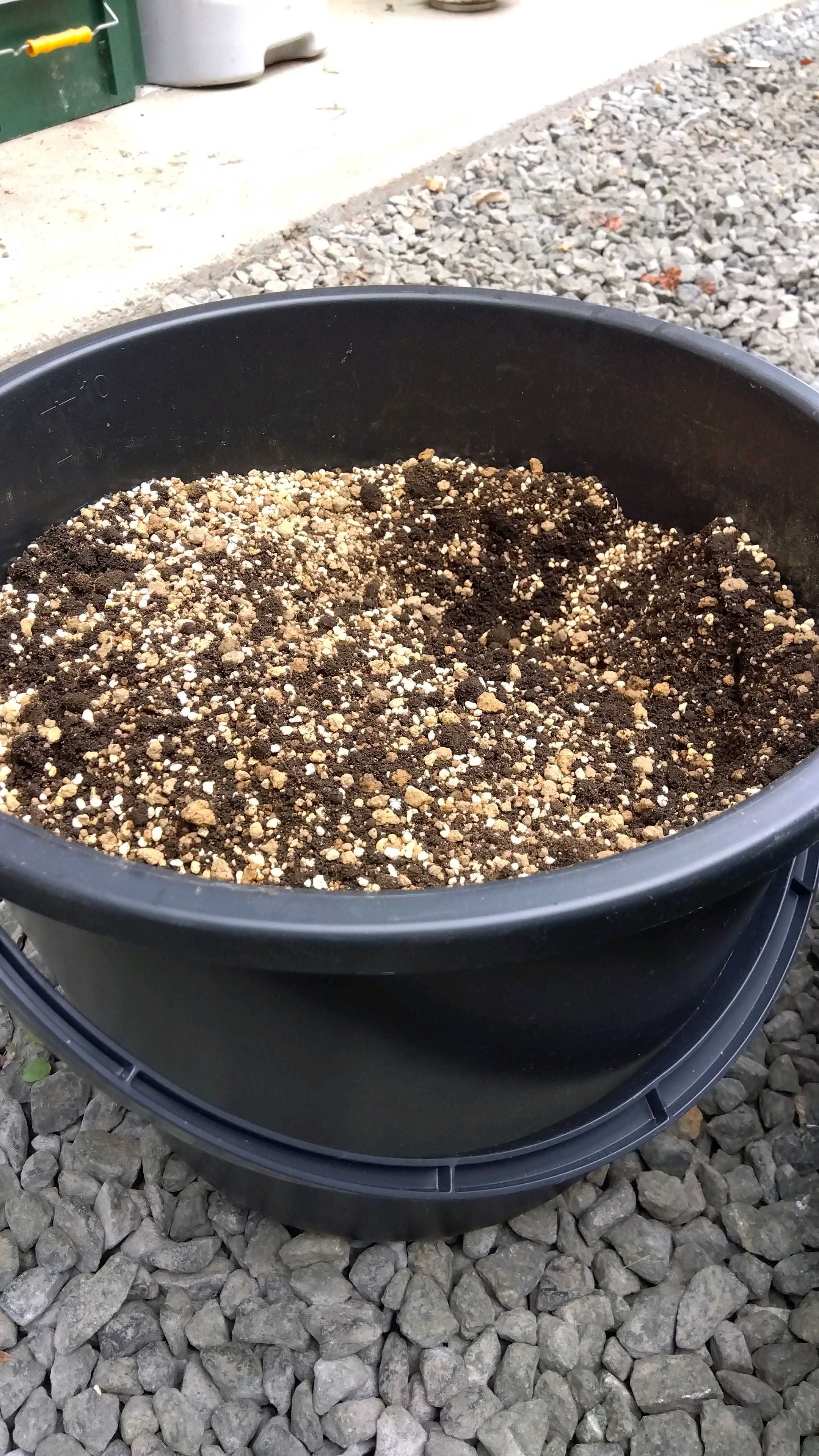 最初トロ舟のまま作ろうと思っていたのですが、根張りに深さがあったほうがいいのかしら?と思い、調べた通りにバケツにしました。