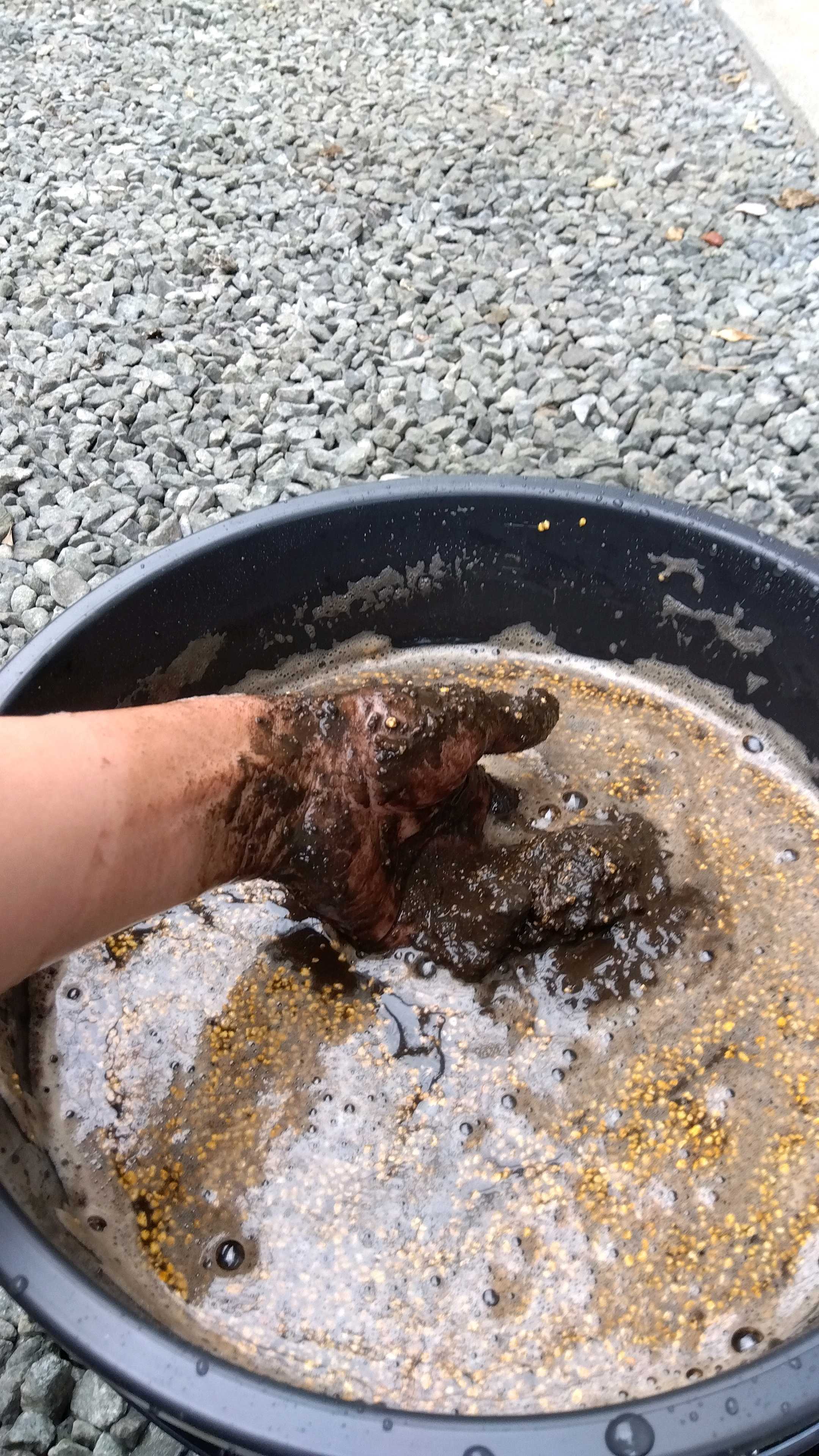トロ舟の中でよく混ぜ込み、バケツへ移しました。