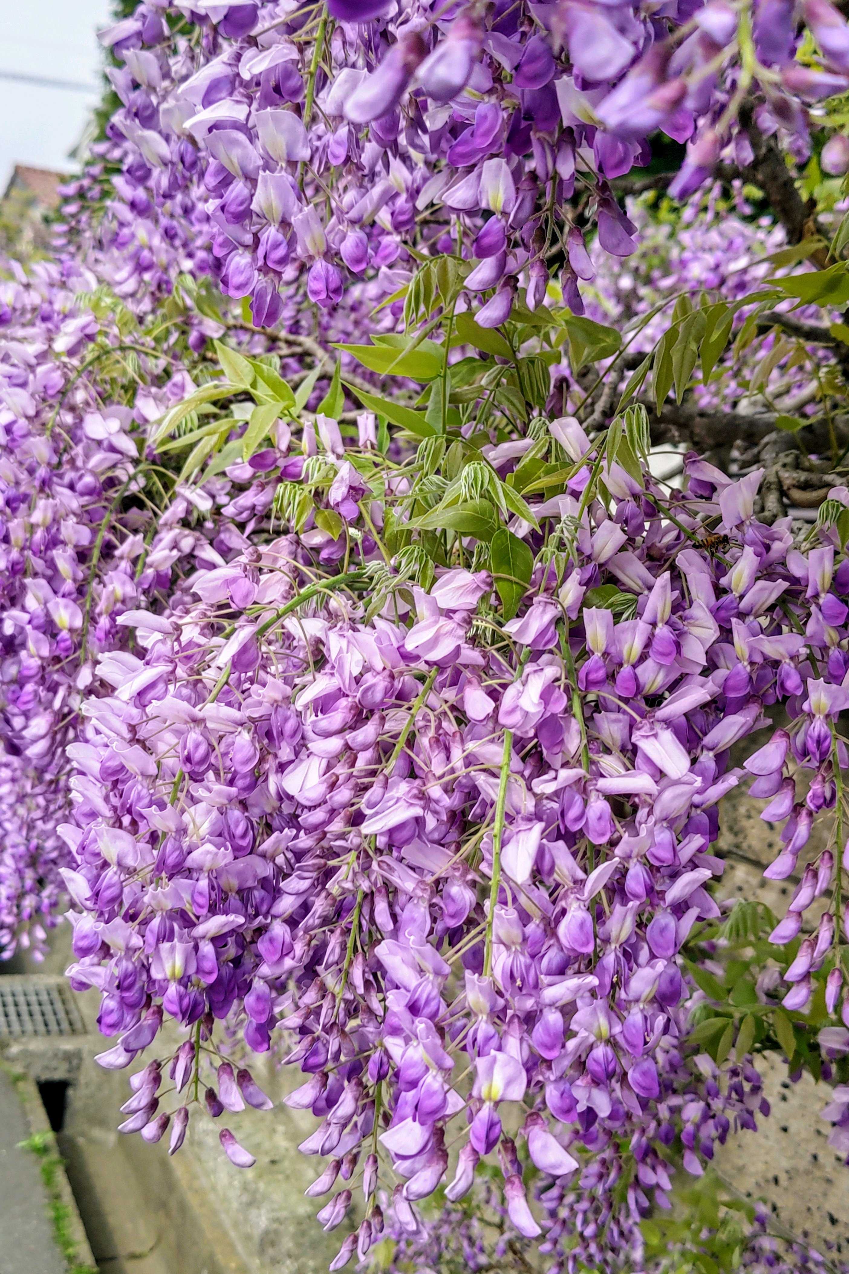 塀を覆う、藤の花。圧巻、見事としか言葉がない。