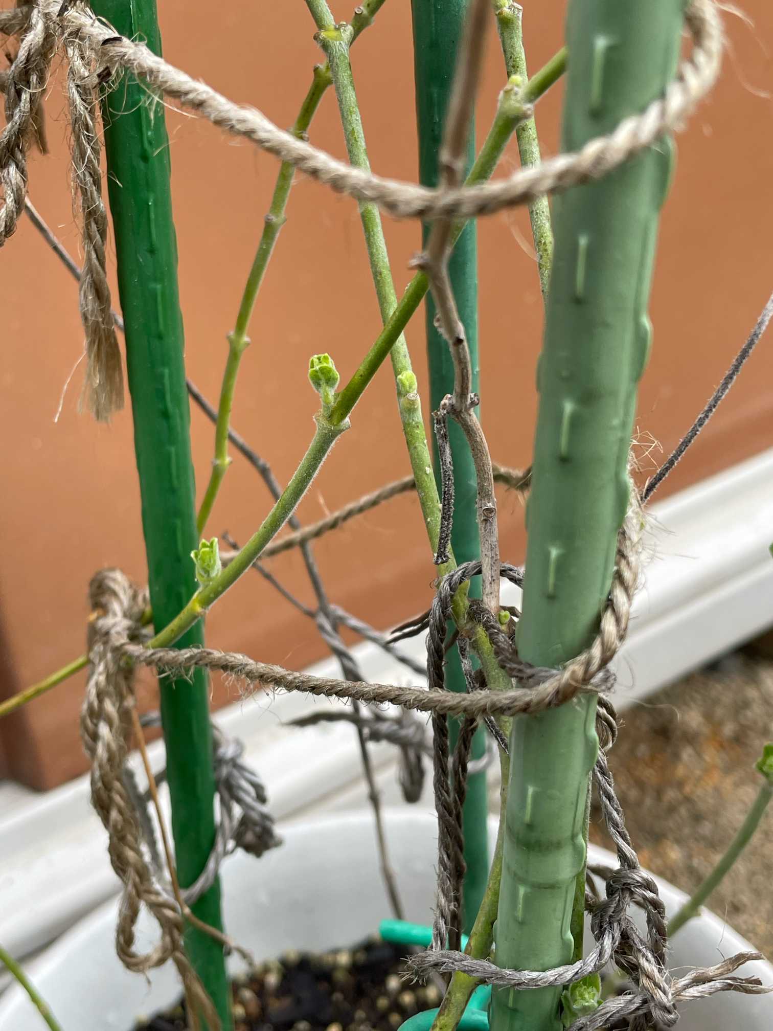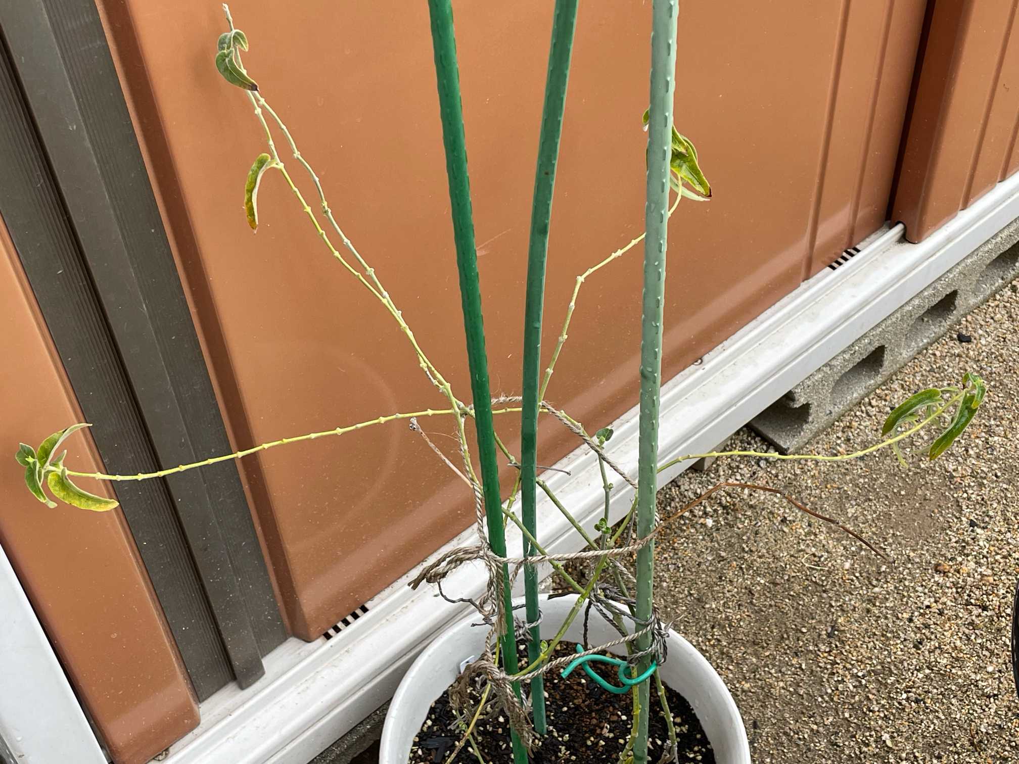 支柱を3本にして麻紐で結び直しました。