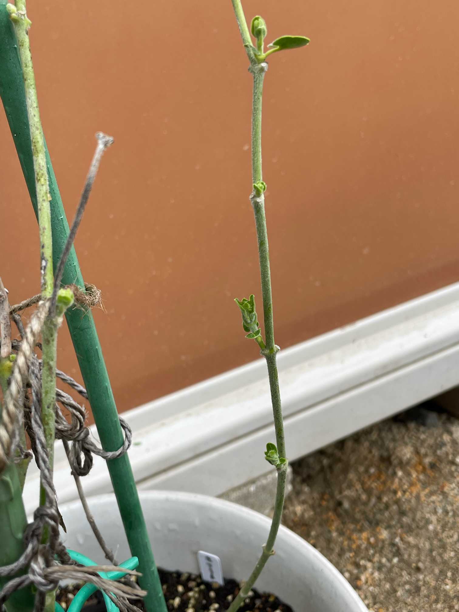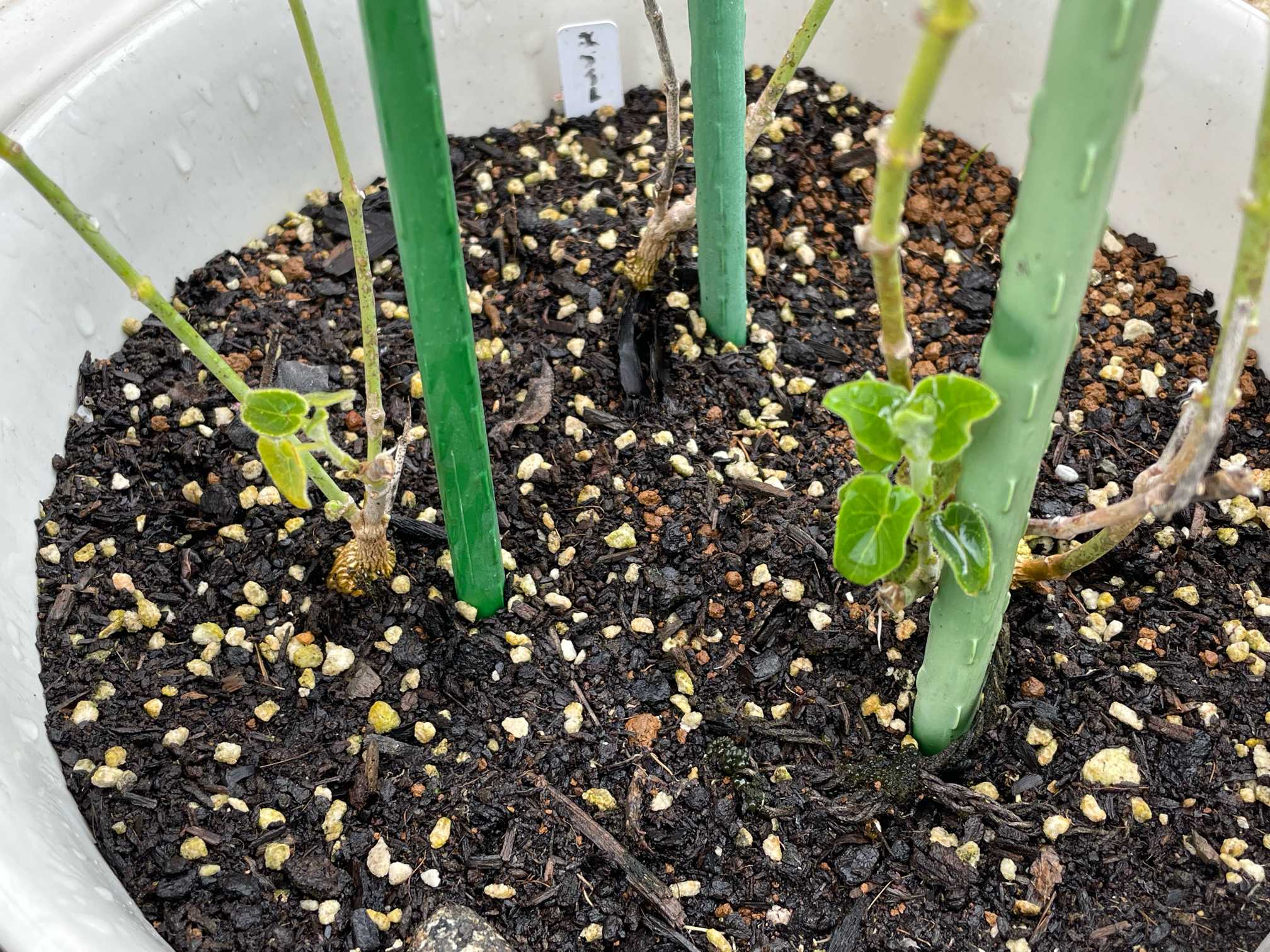 ホワイトスターちゃん🤍、葉っぱがない棒の分を切ったつもりが、まだ葉っぱが残ってて、挿し挿ししてたけど、やっぱりダメでした🥺