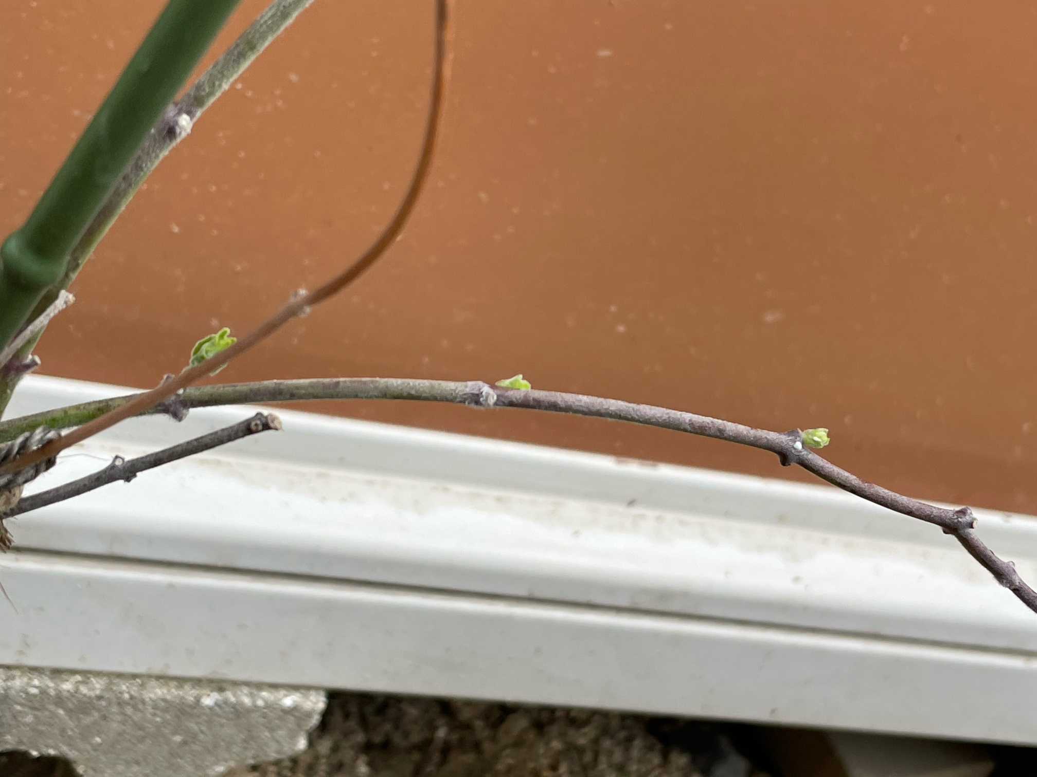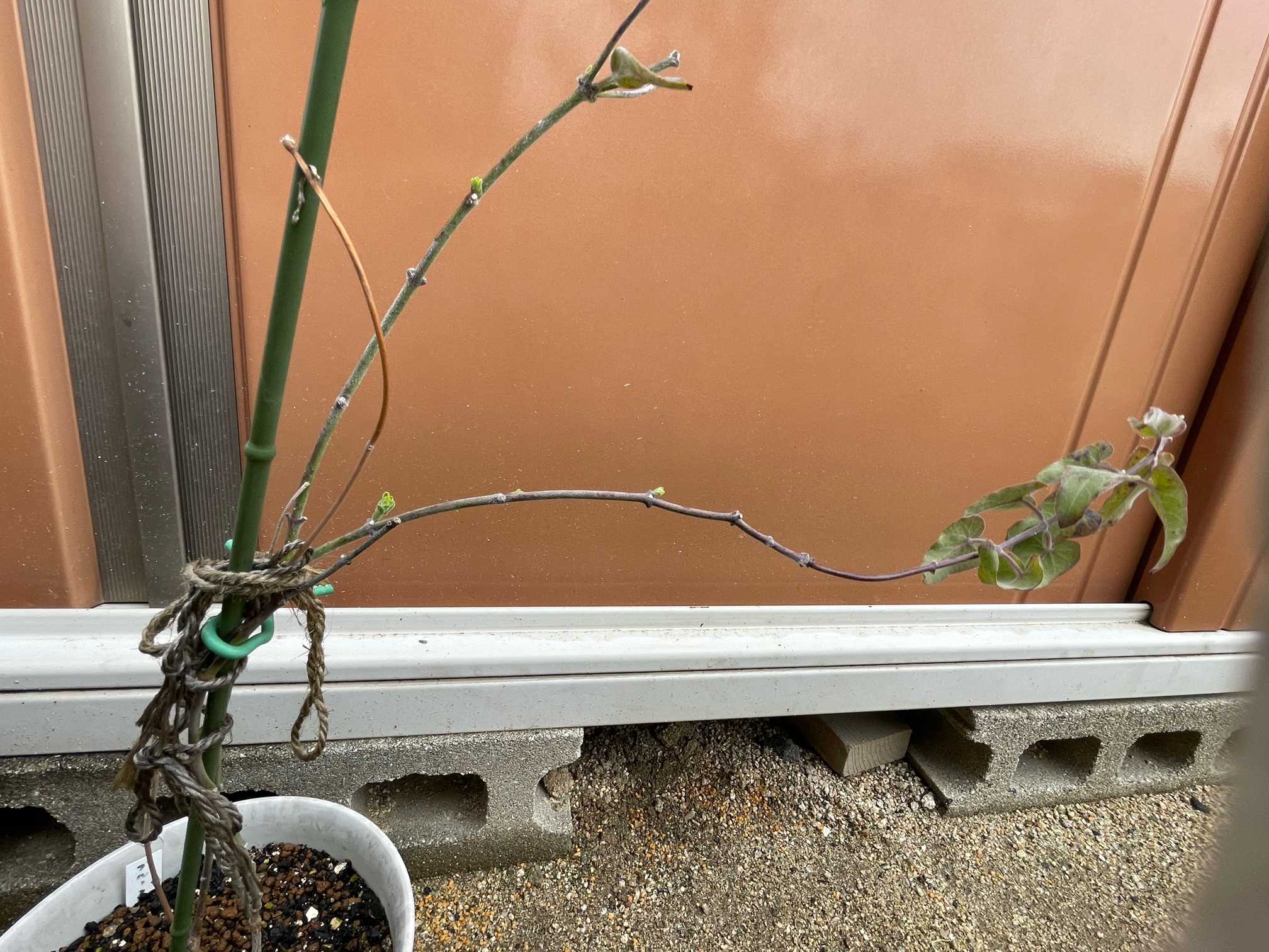 車庫の後ろで不織布なしで冬越し中です。頑張れ👍