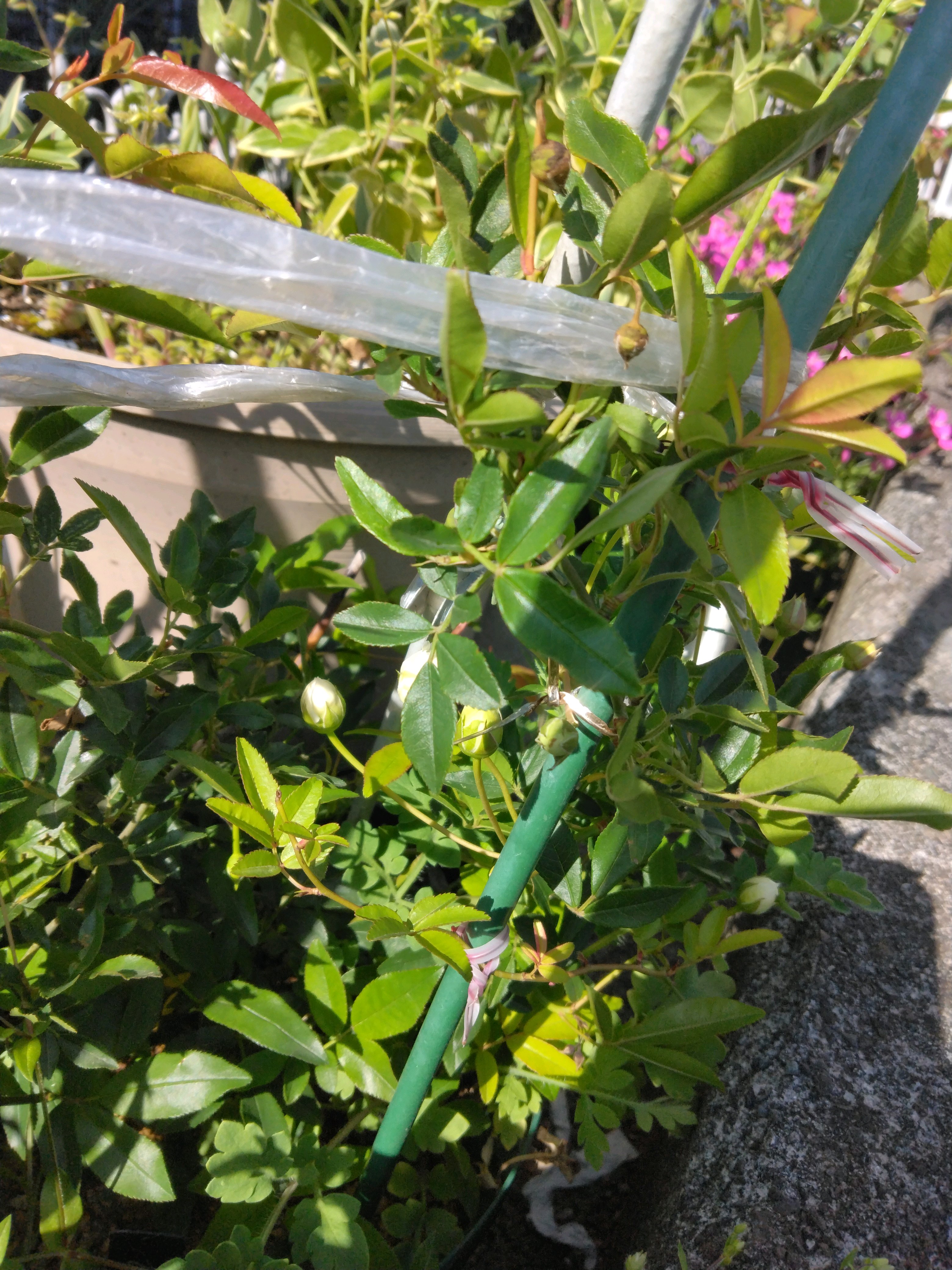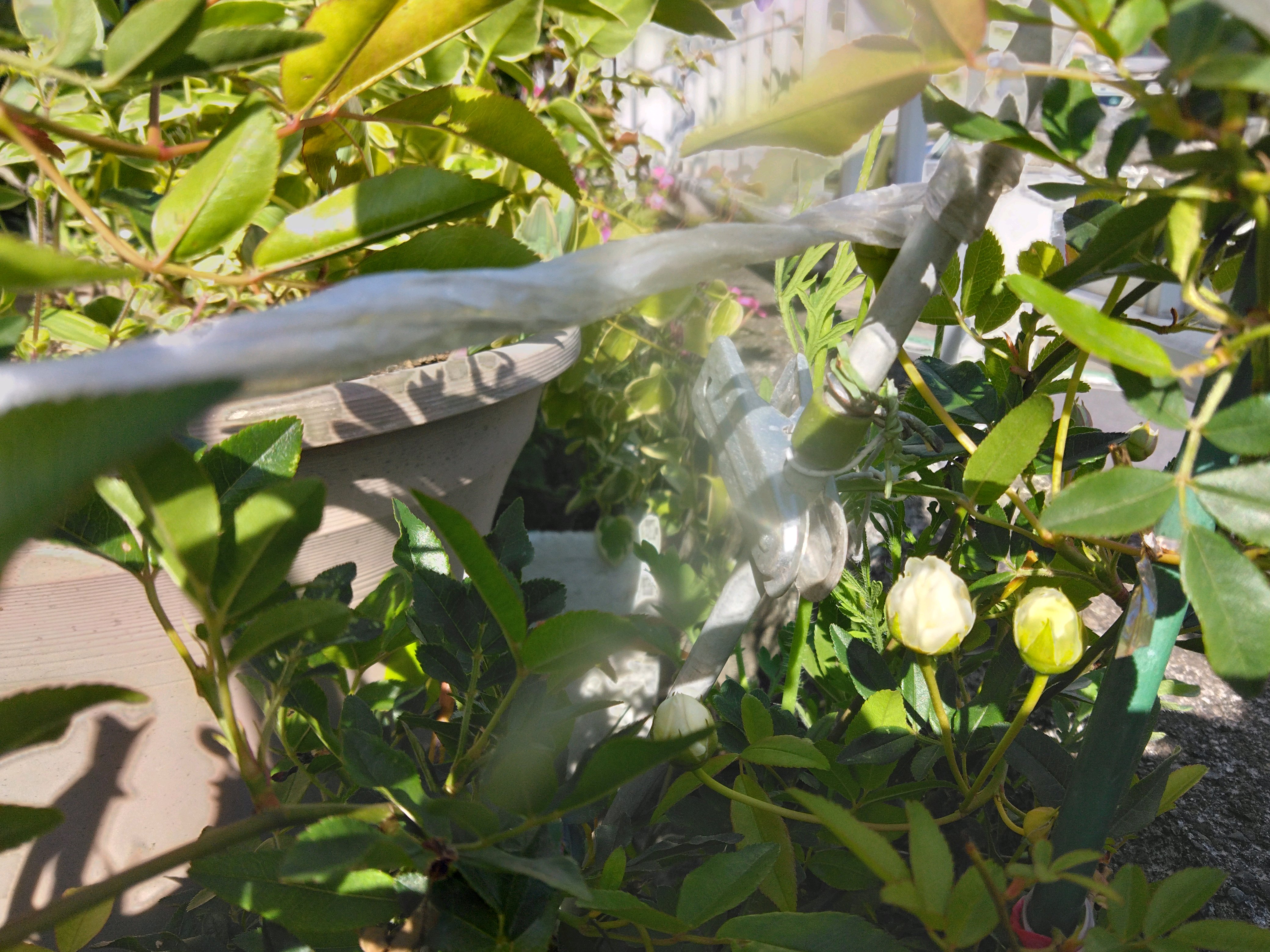 黄色モッコウバラ🌹を挿し木鉢で頂いた方とは違う元🐕飼い主さんから白花も黄色も育ててますと知り 咲いた後の剪定時期に3年連続で頂いた