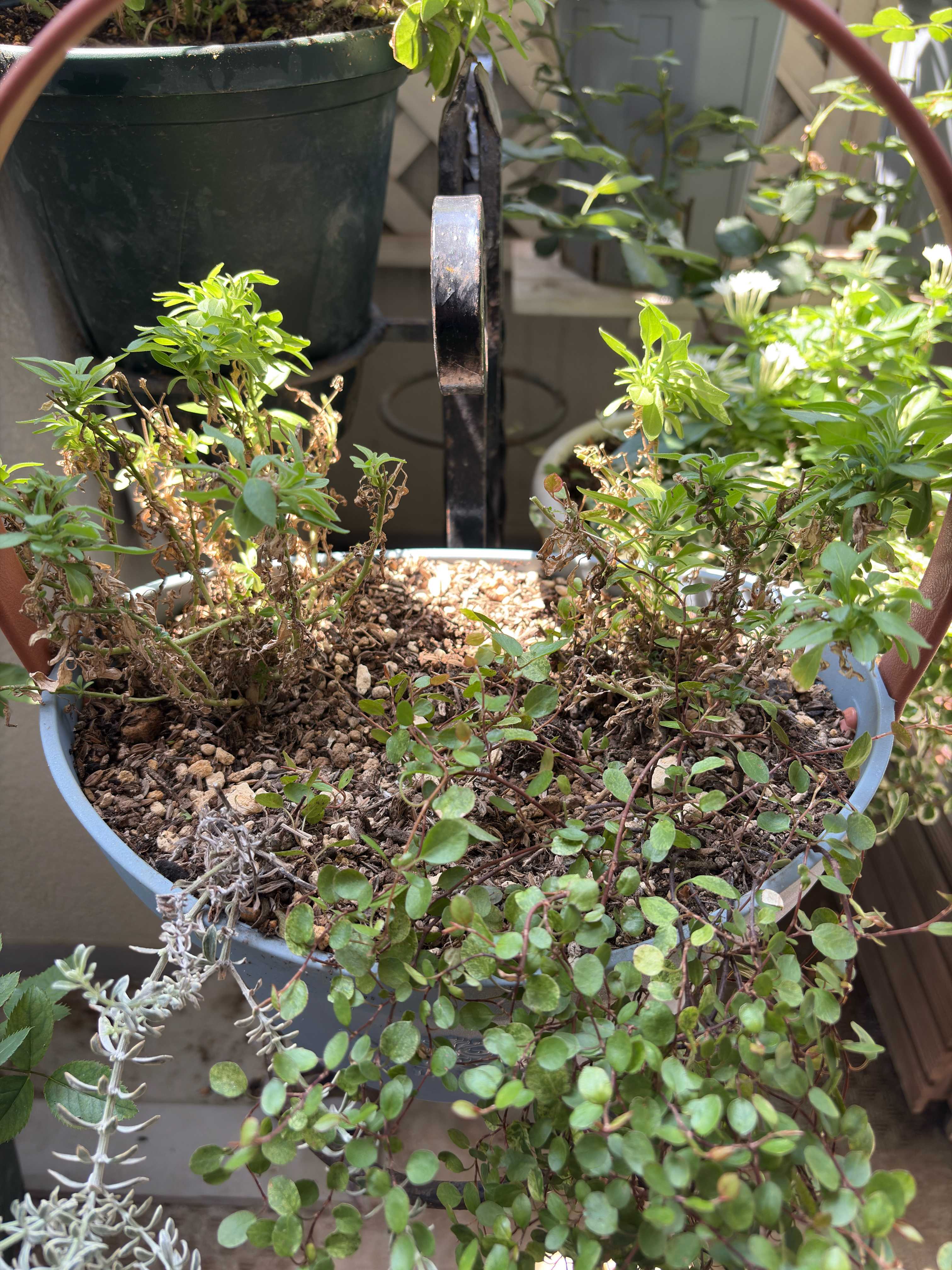 次々と同居の植物が枯れてしまいなんともさみしい寄せ植え。