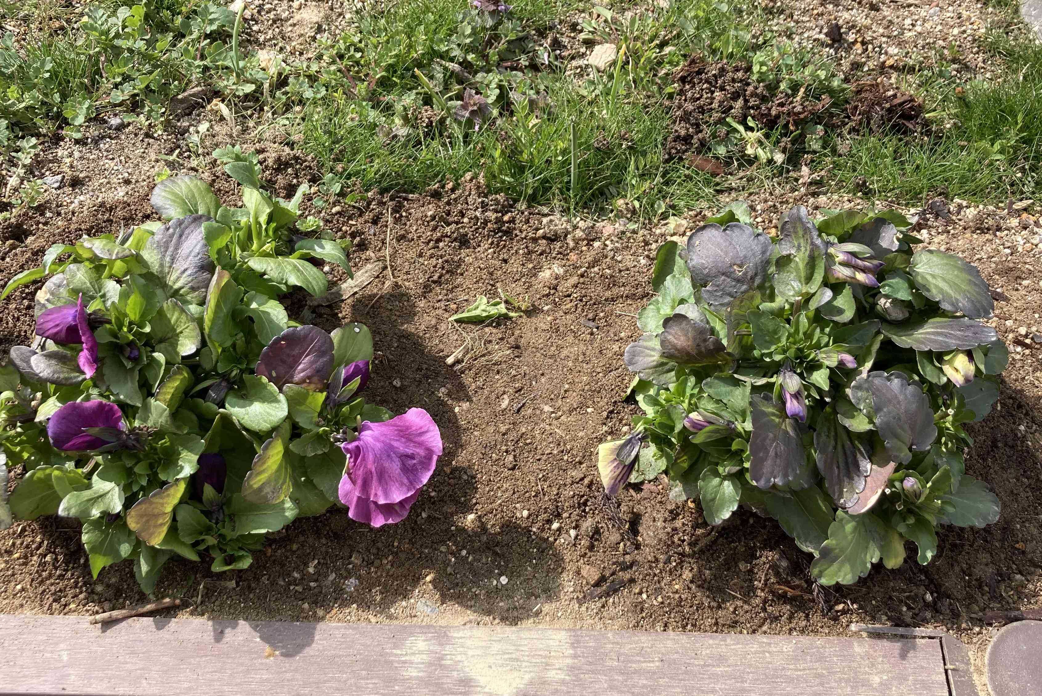 モニターのパンジーは地植えに変更。