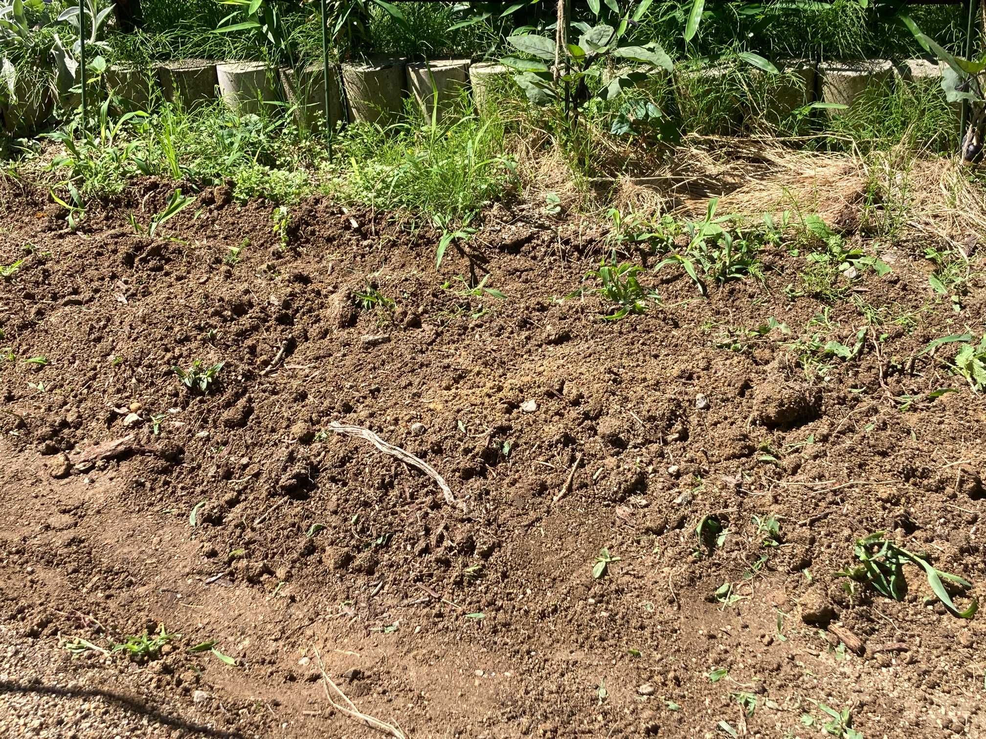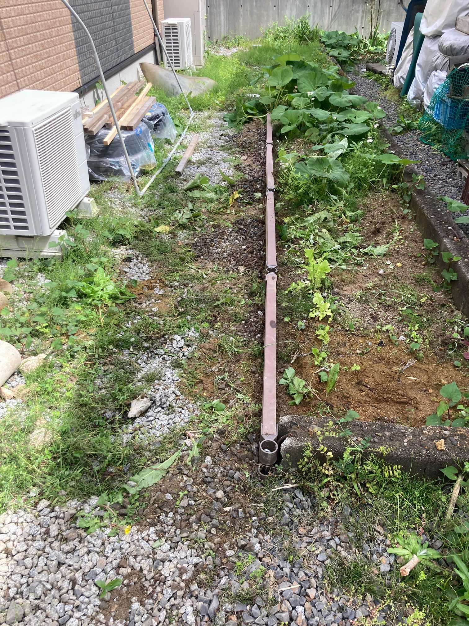 軒下近くにあった雑草の堆肥枠を崩して、新たにスペースを作りました。