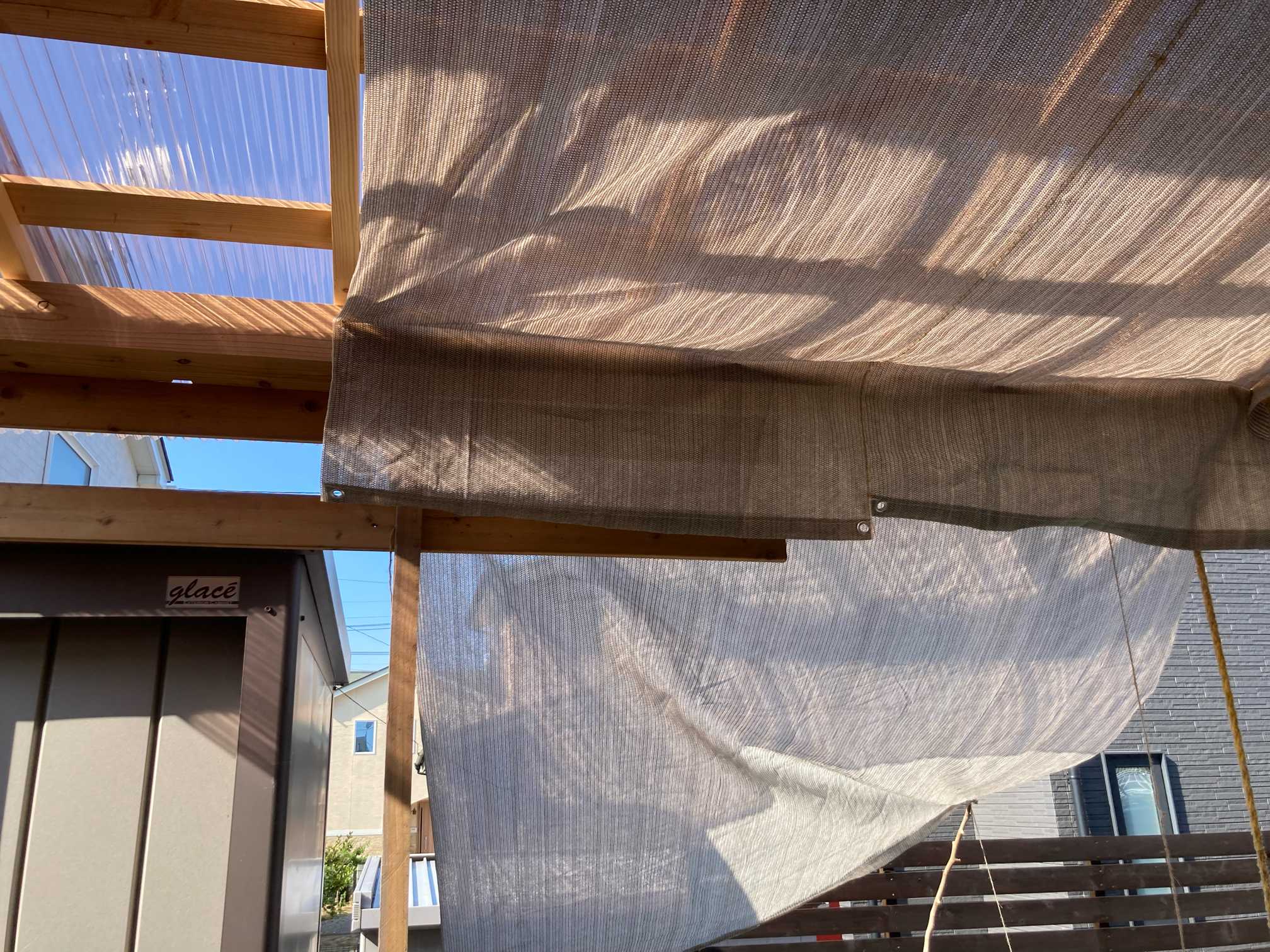 庭にいるとお隣さんの窓や玄関がちょうど見えてちょっと気まずい感じだったので、設置できて一安心。