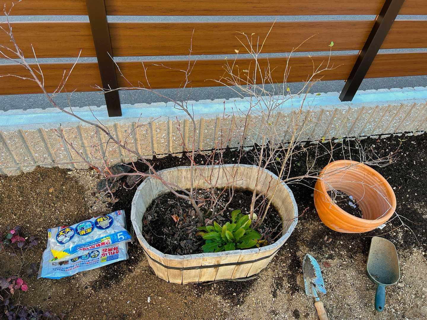 木製のプランターって、こんなに劣化するんですね(°o°:)