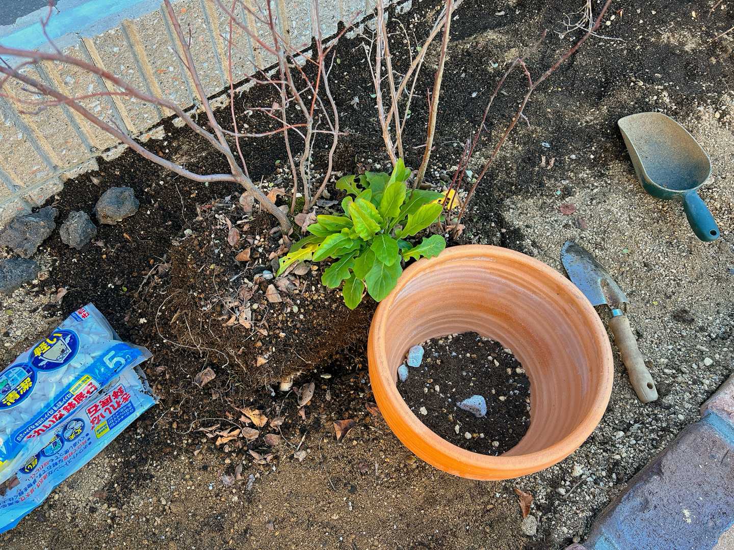 バカでかくなるので、この子は土には直接植えず、鉢を用意しました。