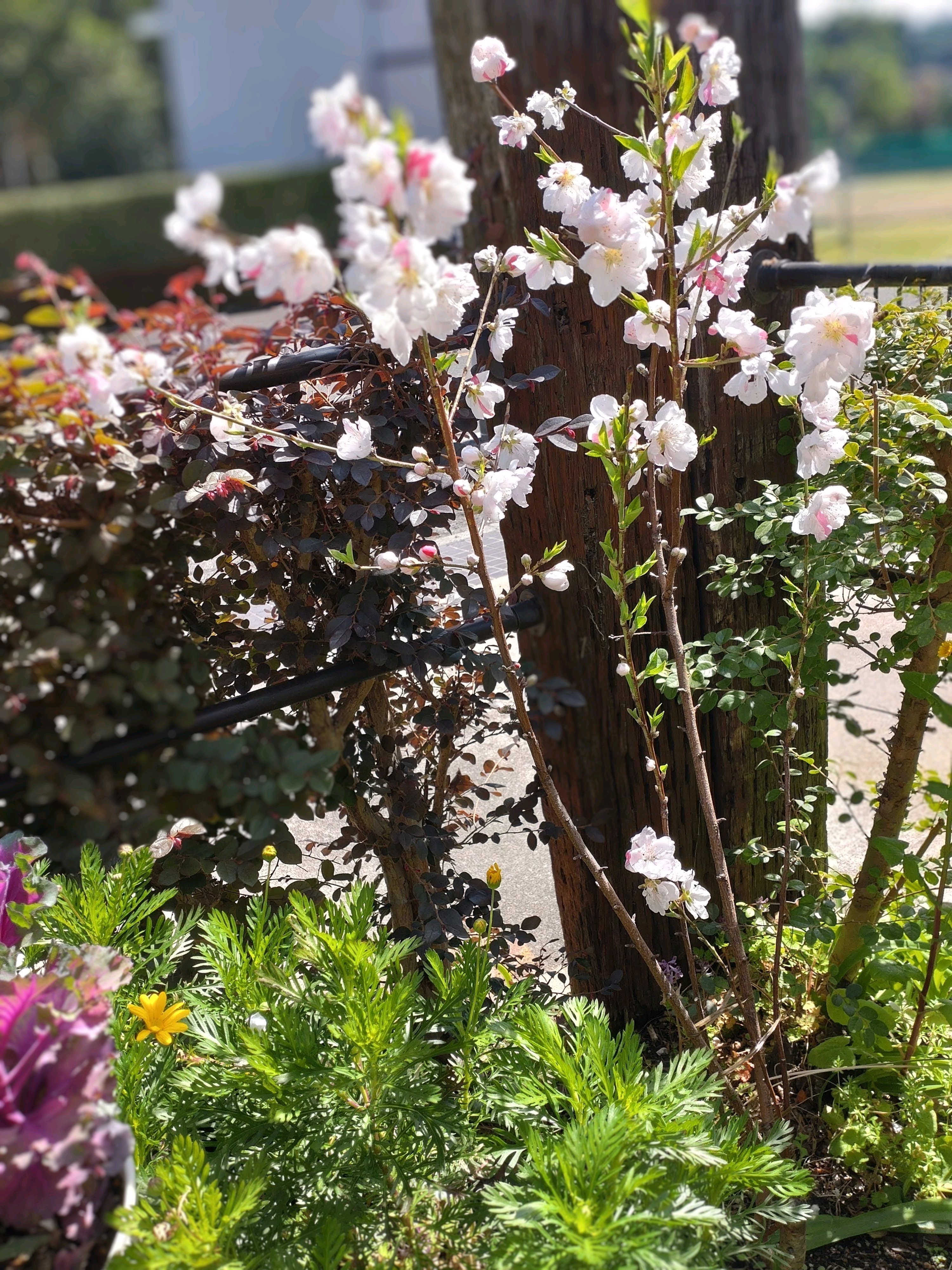 樹高も少し高くなって、ワサワサの生垣やユリオプスデージーに囲まれていても見えるようになりました。