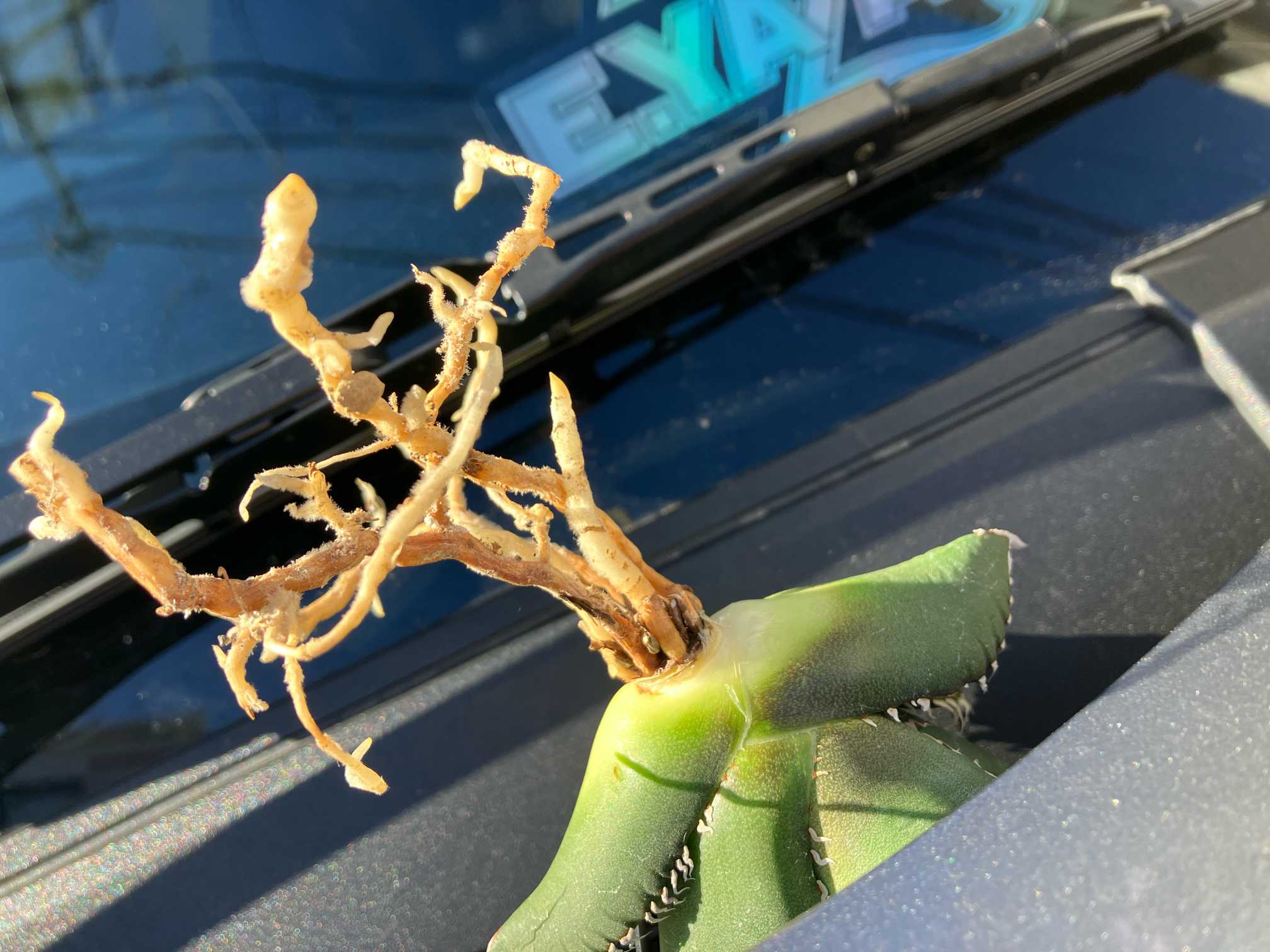 鉢を倒してしまいました。幸い根は無事でした。せっかくなので鉢に戻す前に写真を撮りました。