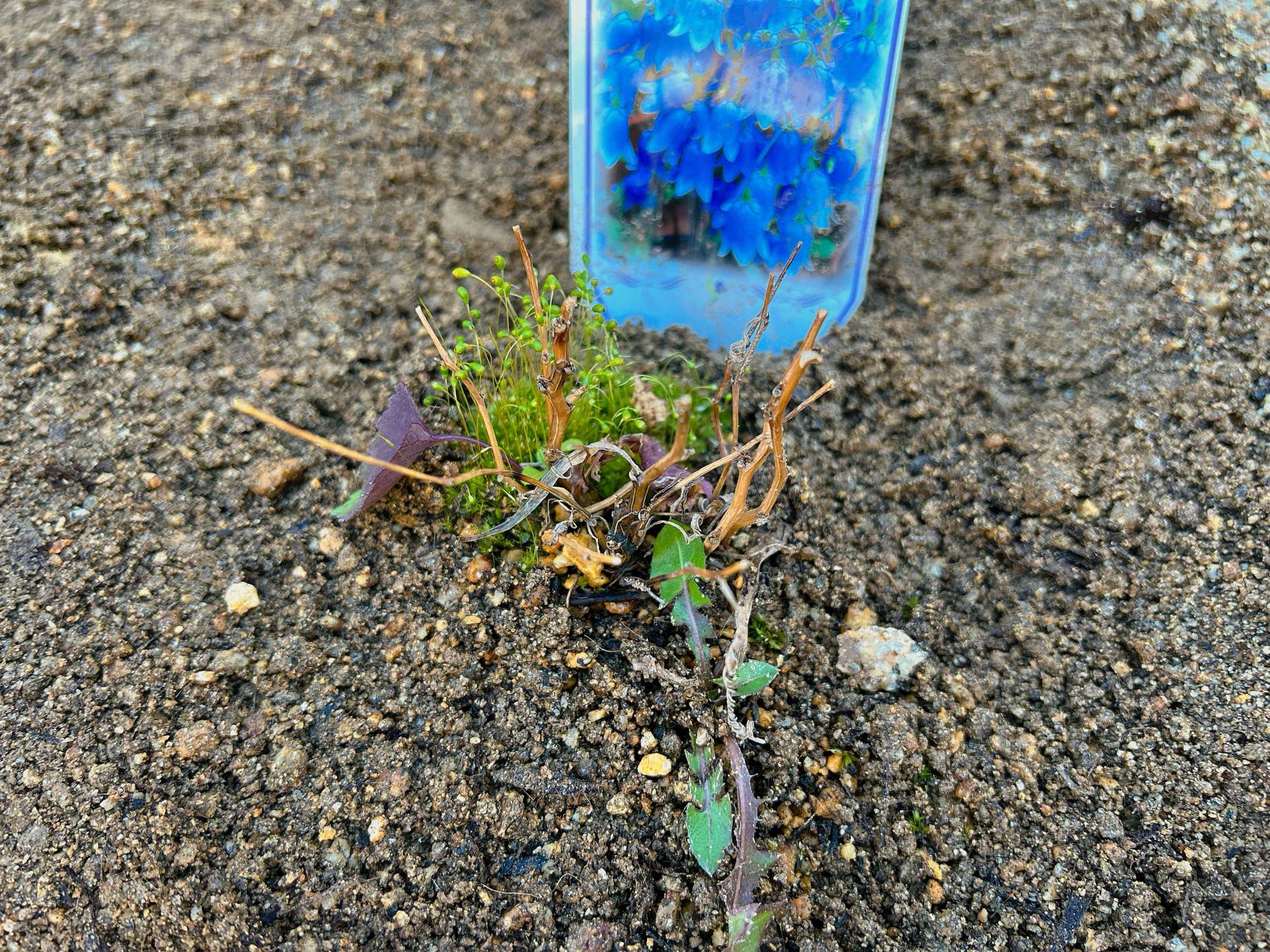 食べ終わった種の殻から中の種を取り出し、即席ペットボトルの容器に水を入れて種in。