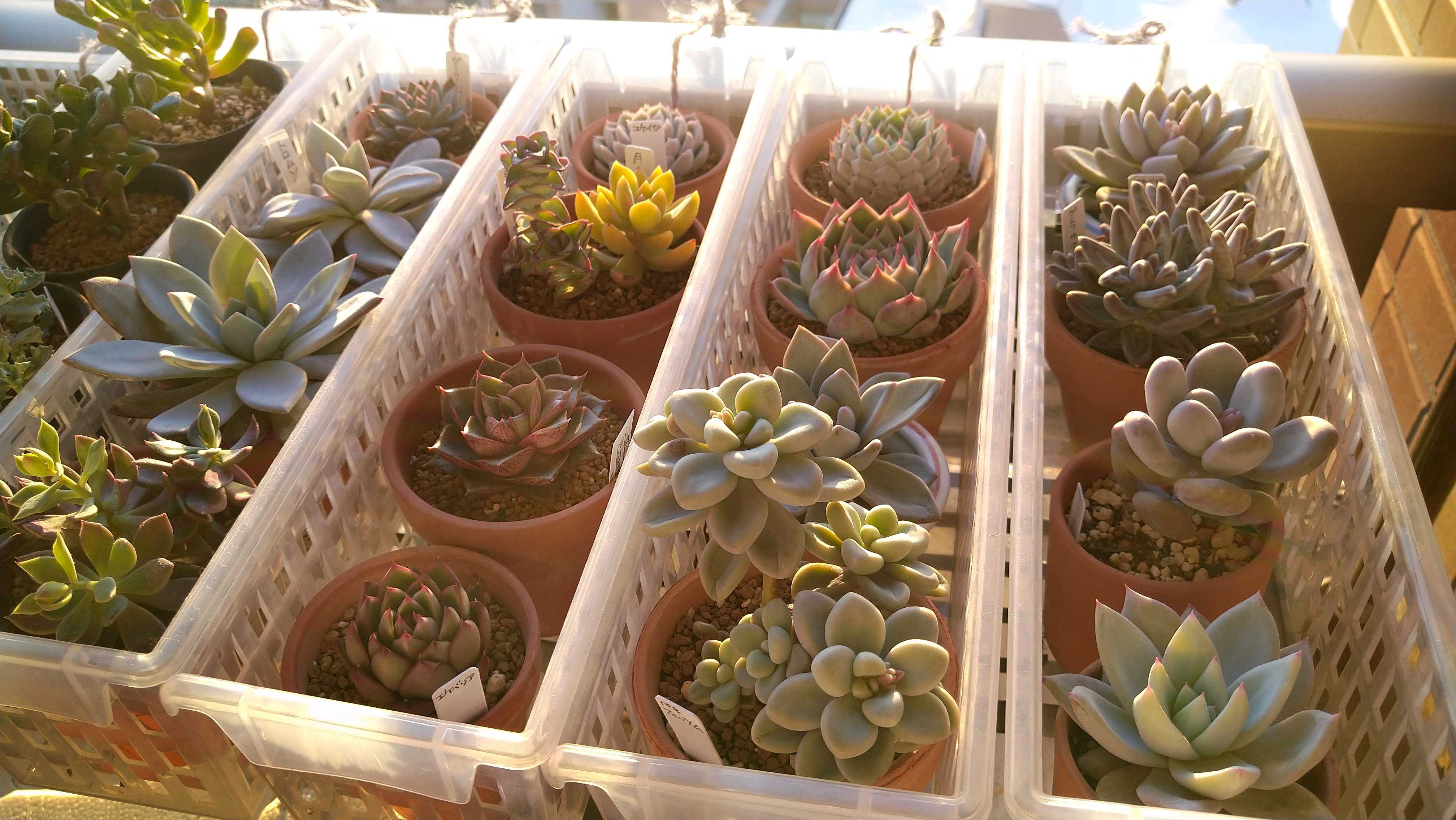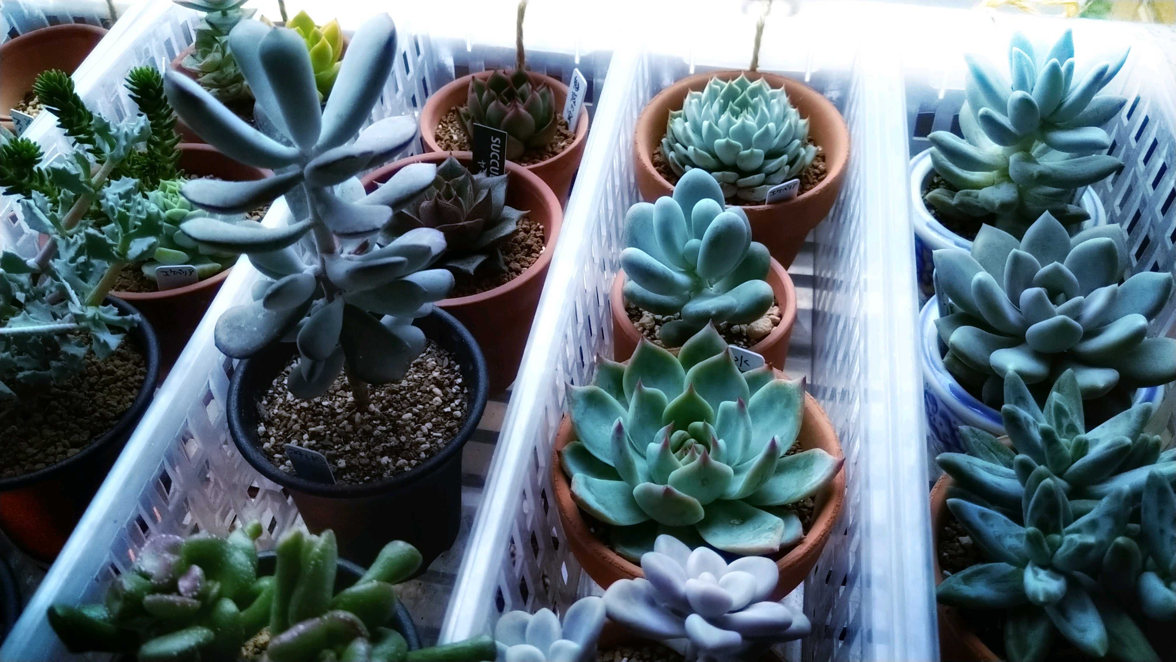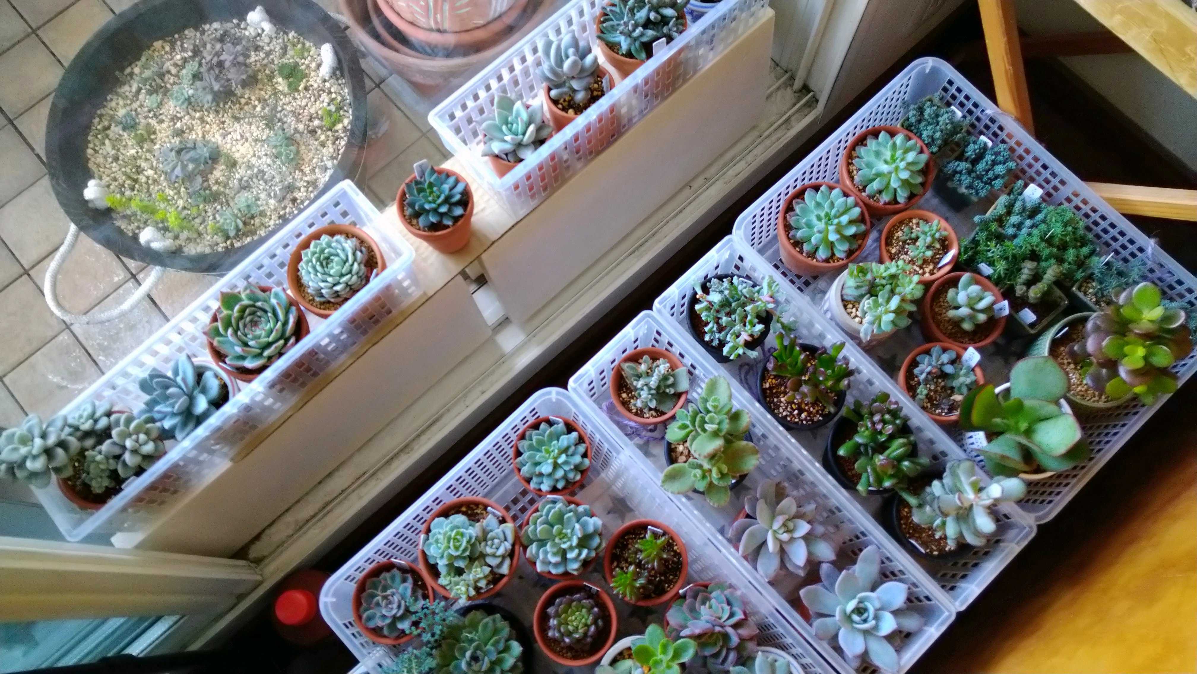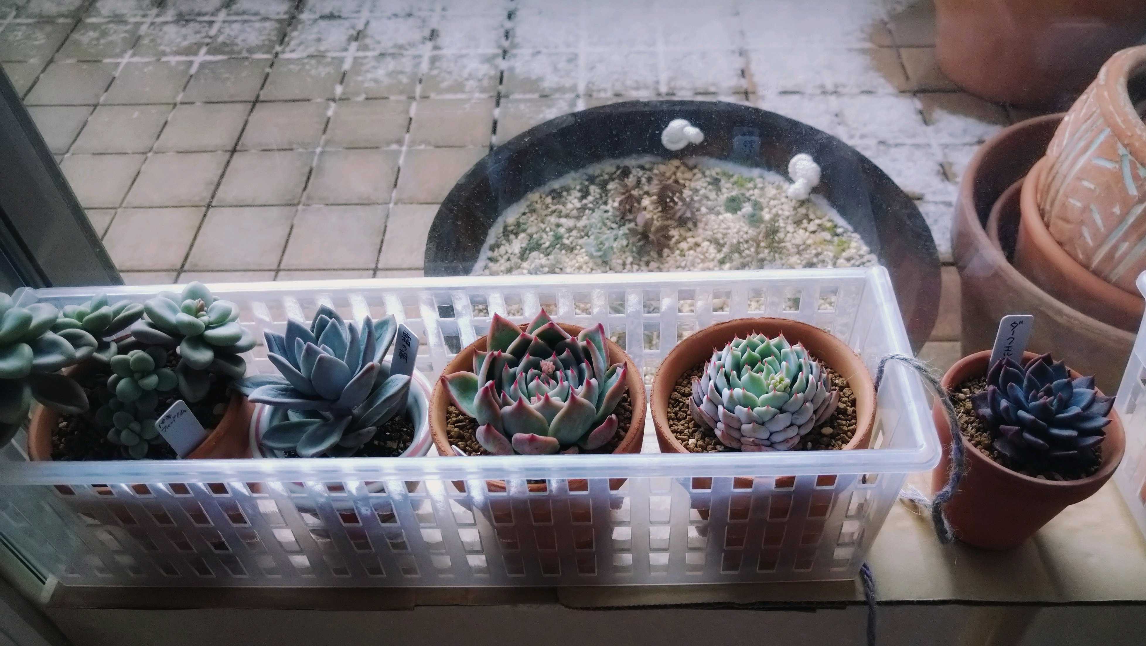 冬越しの様子。完全外置きのぽいぽい鉢と、窓の隙間、室内組となります。