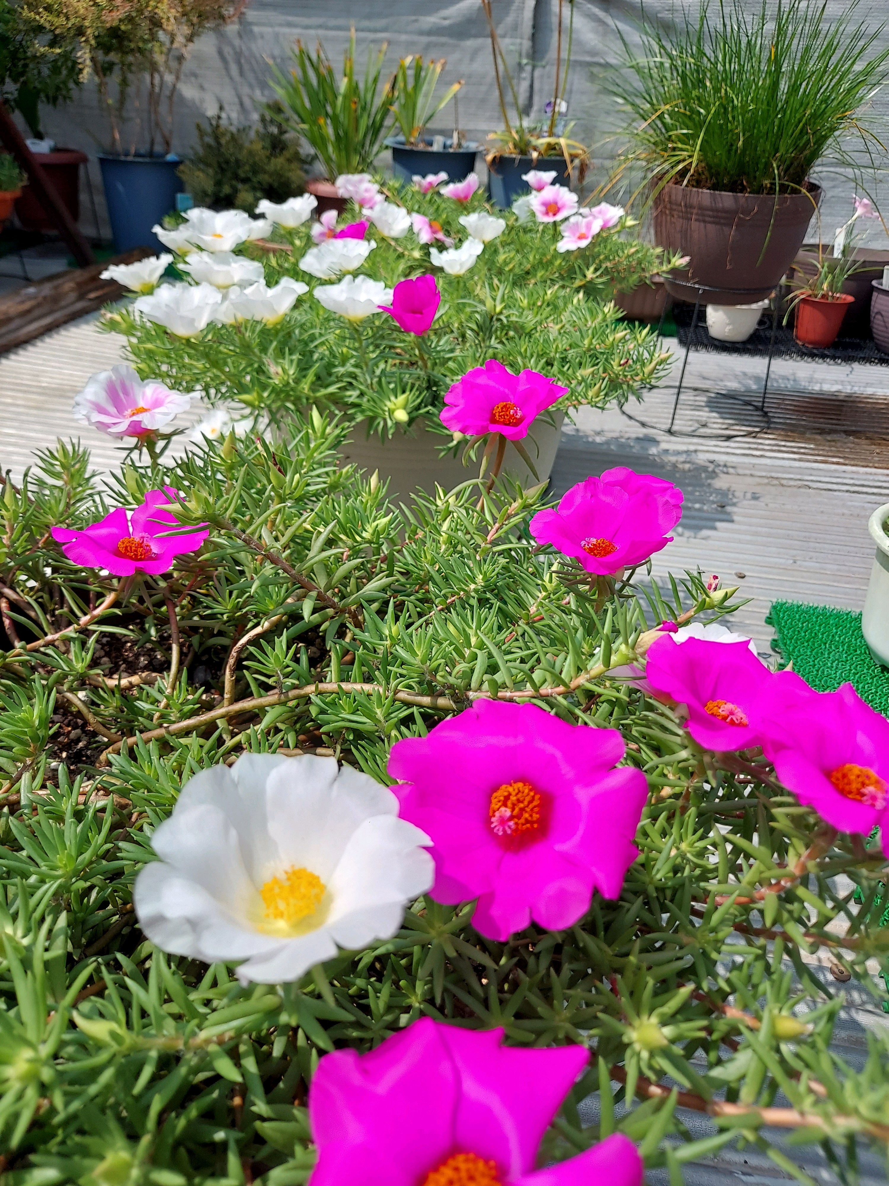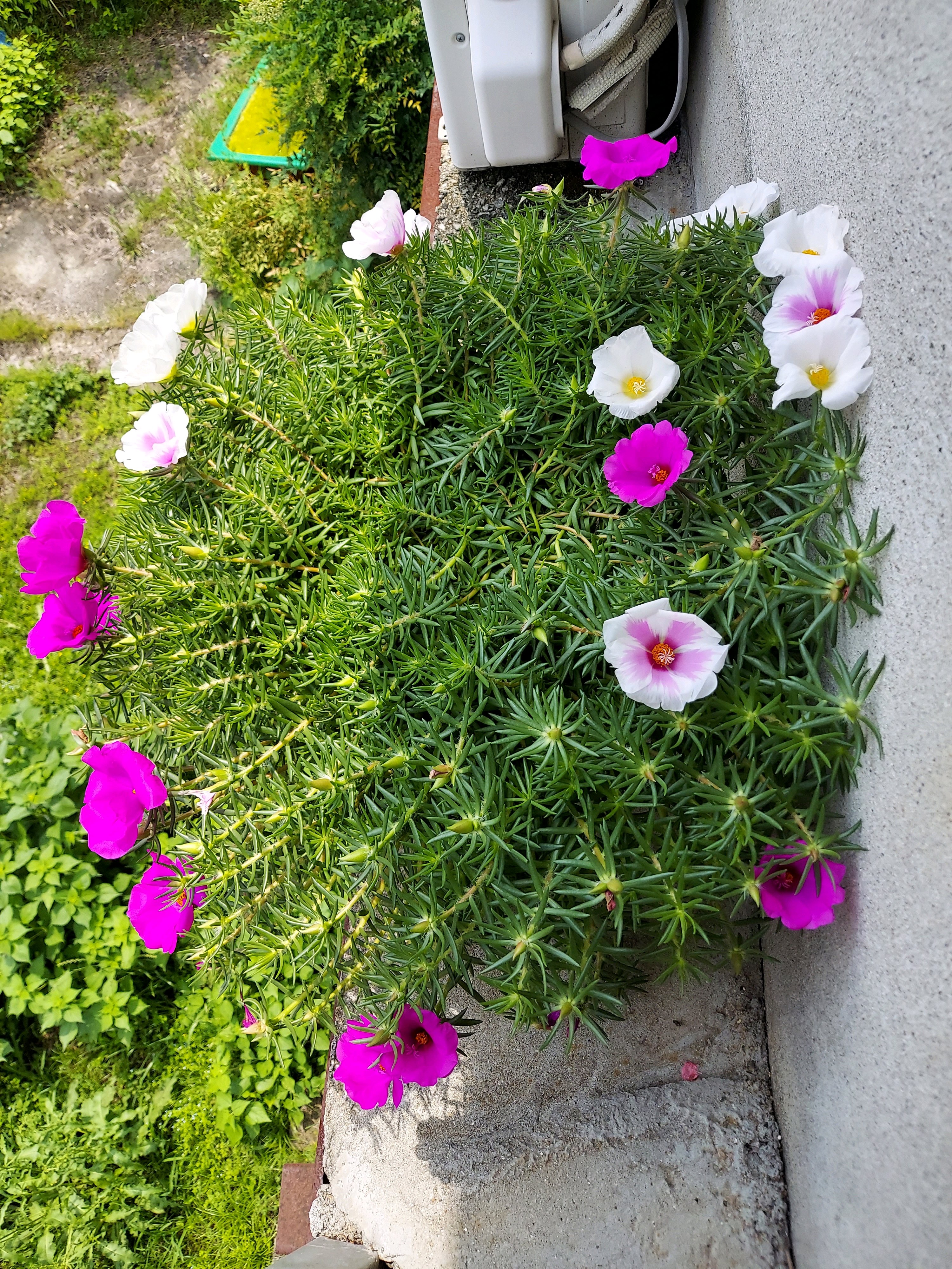 こちらは挿木したマツバボタンジュエルになります。カットしたものを処分しょうと思いましたがもったいないので鉢に挿木しました。花壇にも今は沢山の花が咲いてます。(投稿日8/20)